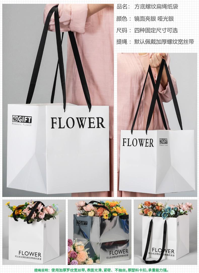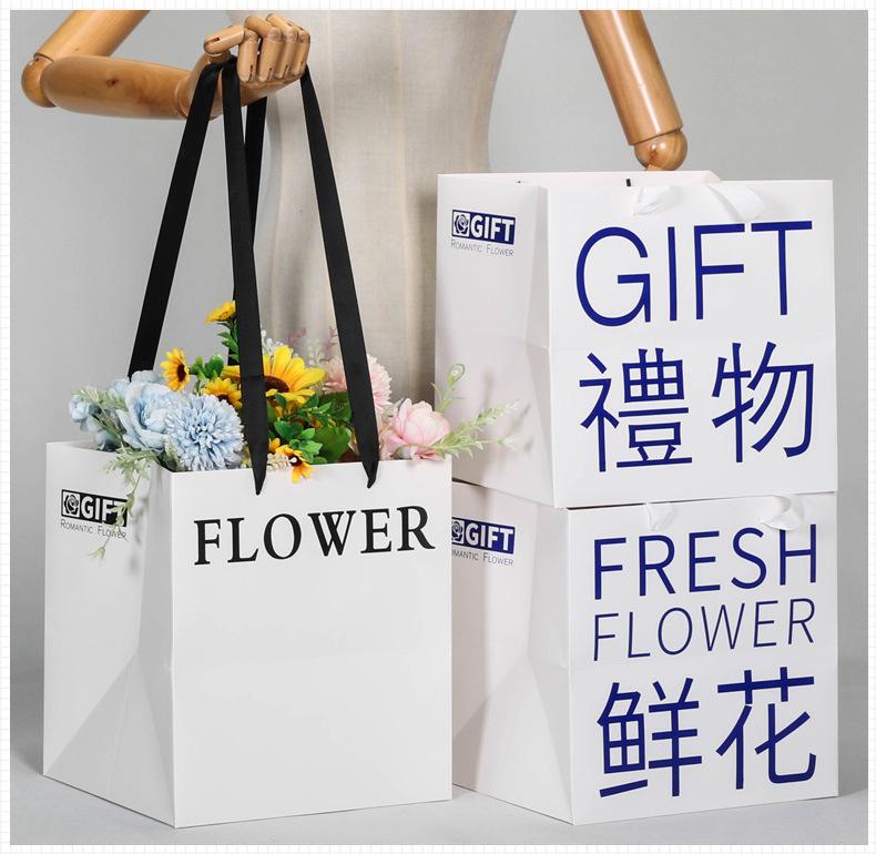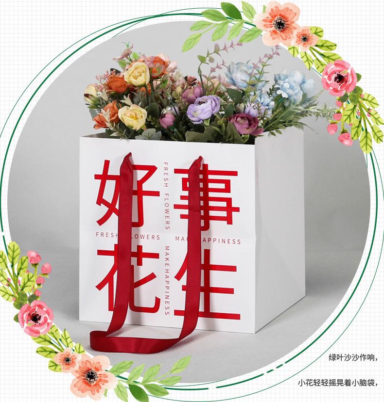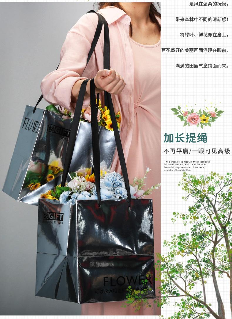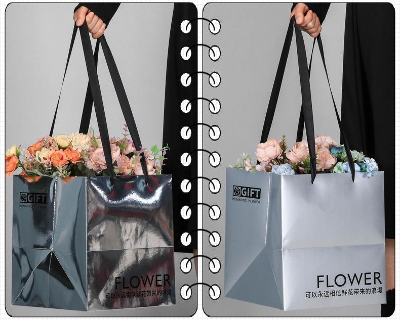 Bolsa de regalo de flores, bolsa portátil para arreglos florales, caja de embalaje para regalo de ramo, tienda de flores, bolsa de flores grande cuadrada de fondo ancho