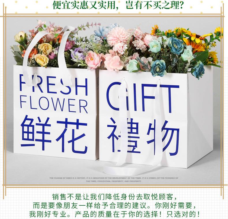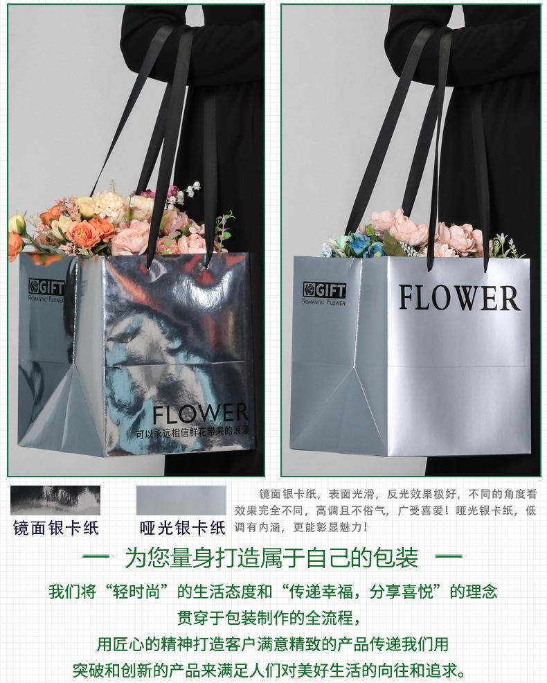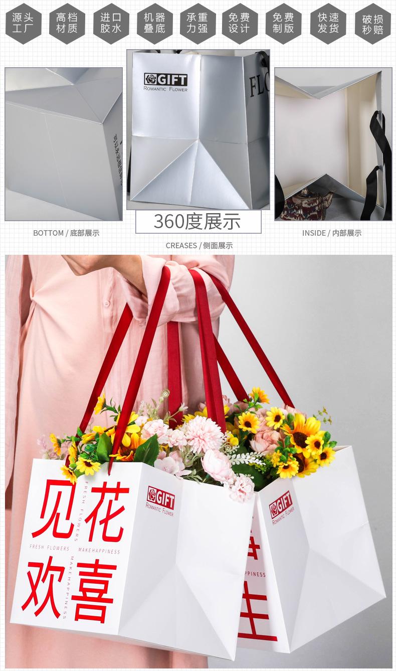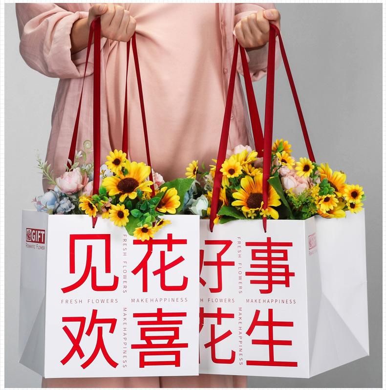 Bolsa de regalo de flores, bolsa portátil para arreglos florales, caja de embalaje para regalo de ramo, tienda de flores, bolsa de flores grande cuadrada de fondo ancho