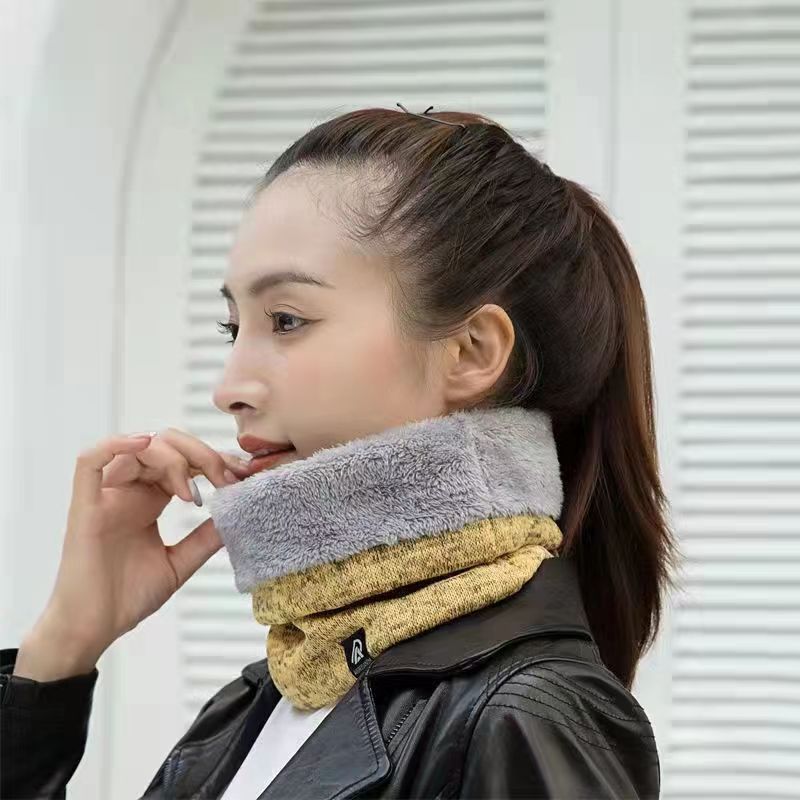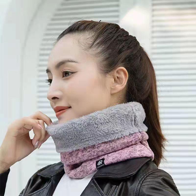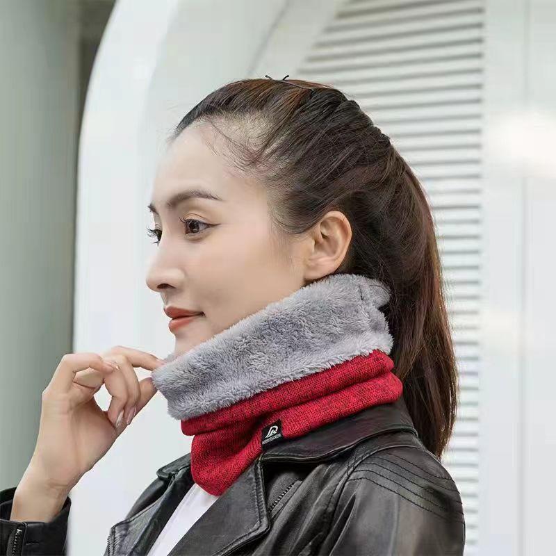 Bufanda de Otoño e Invierno para Hombre y Mujer Estilo Coreano Moda con Forro Polar Engrosada Doble Capa Cálida de Cachemira Tejida Set para el Cuello Bufanda Exterior a Prueba de Frío