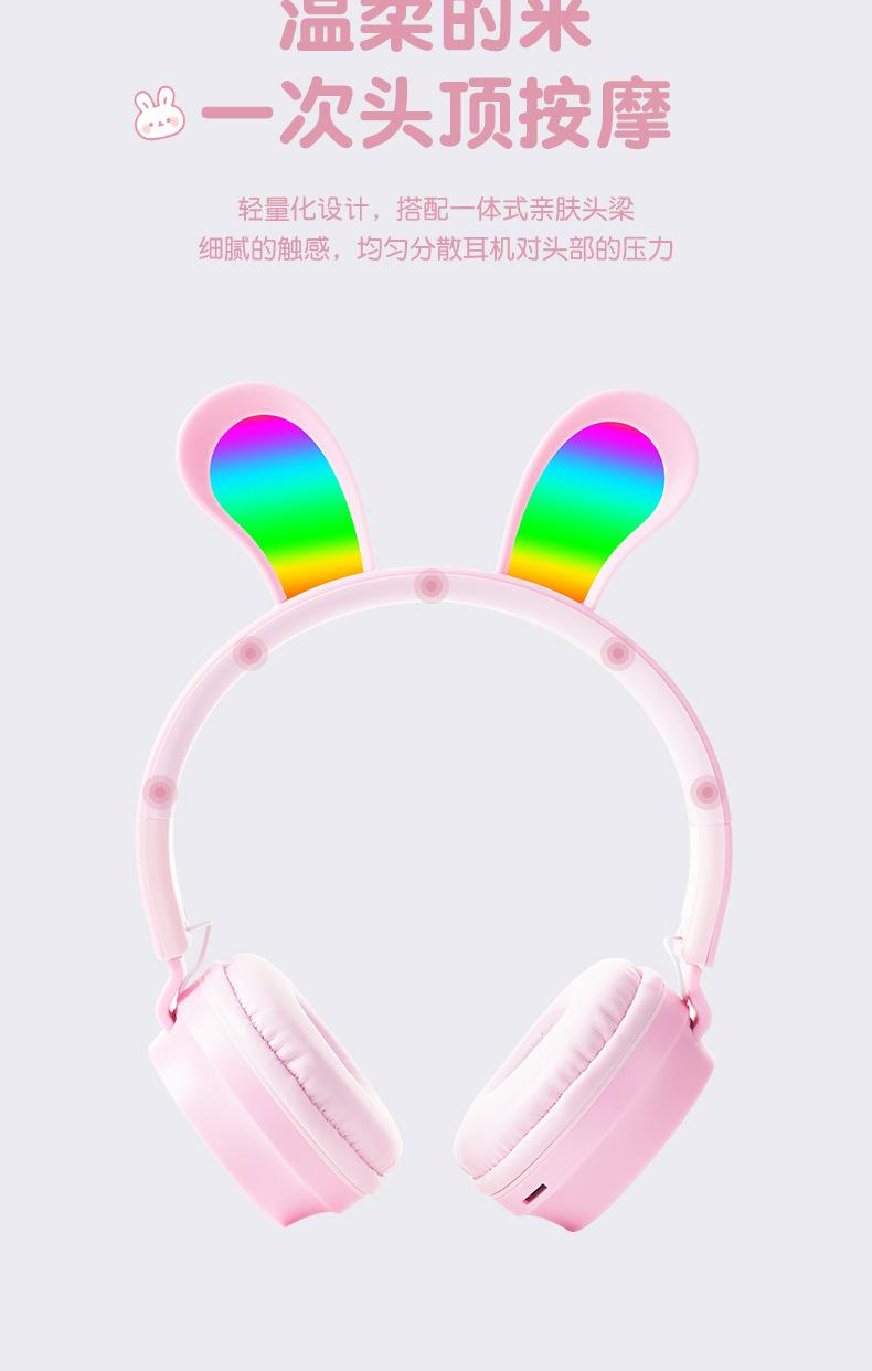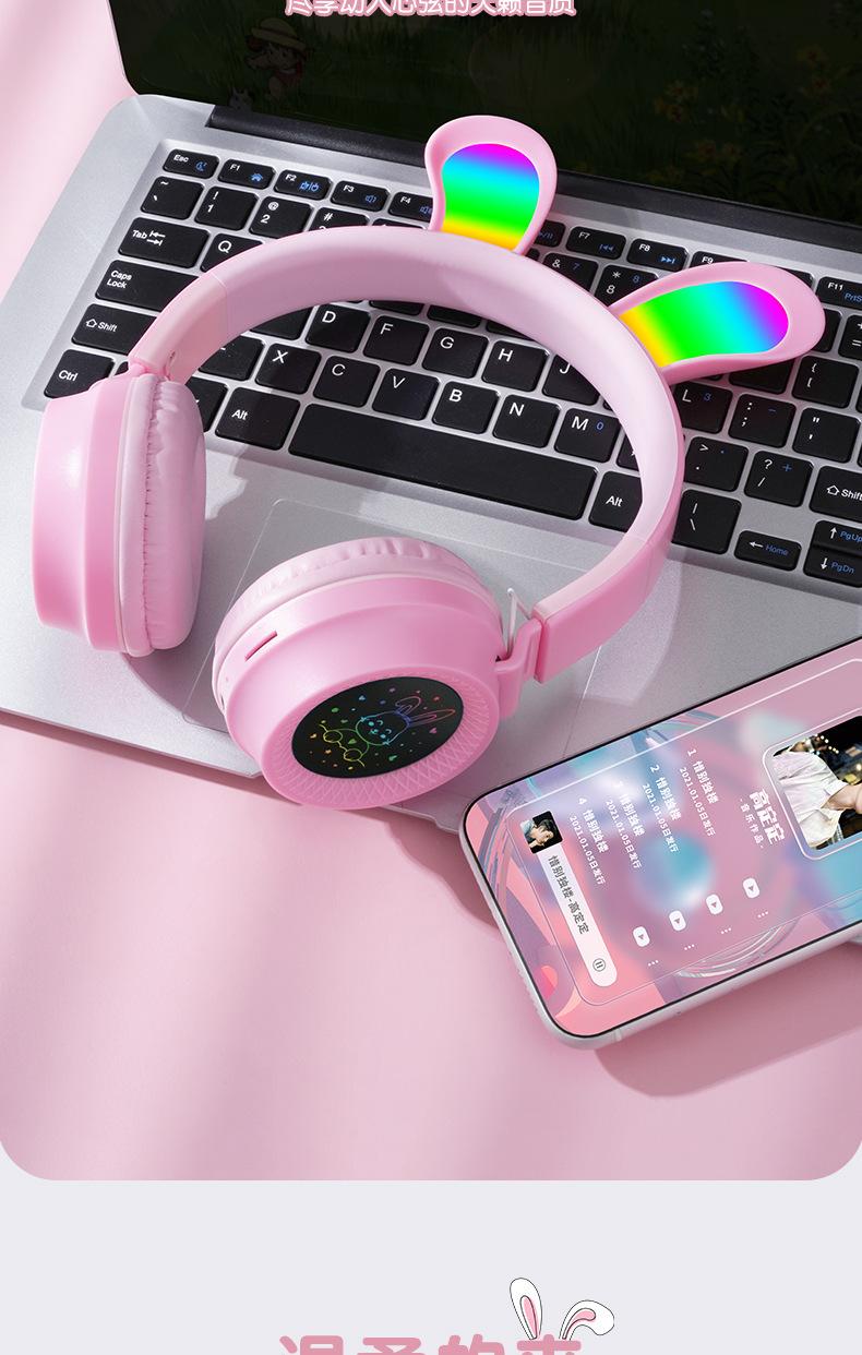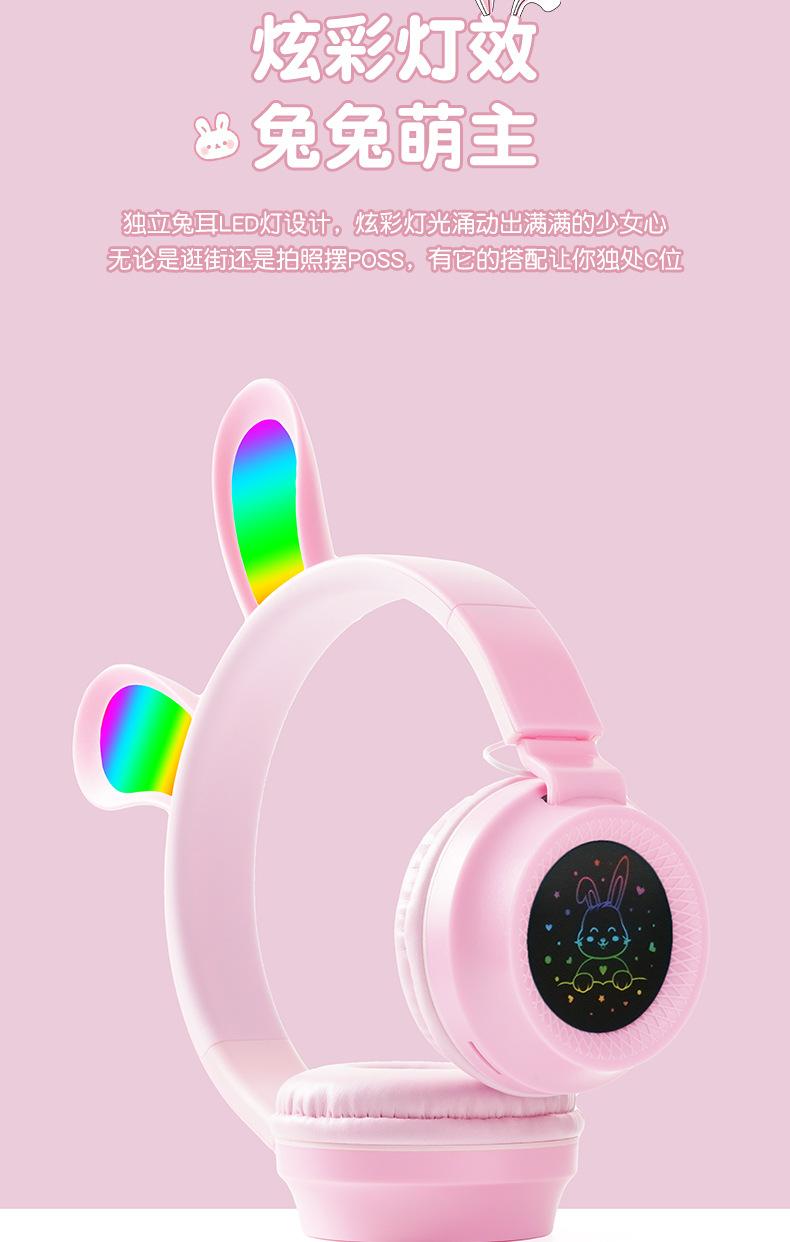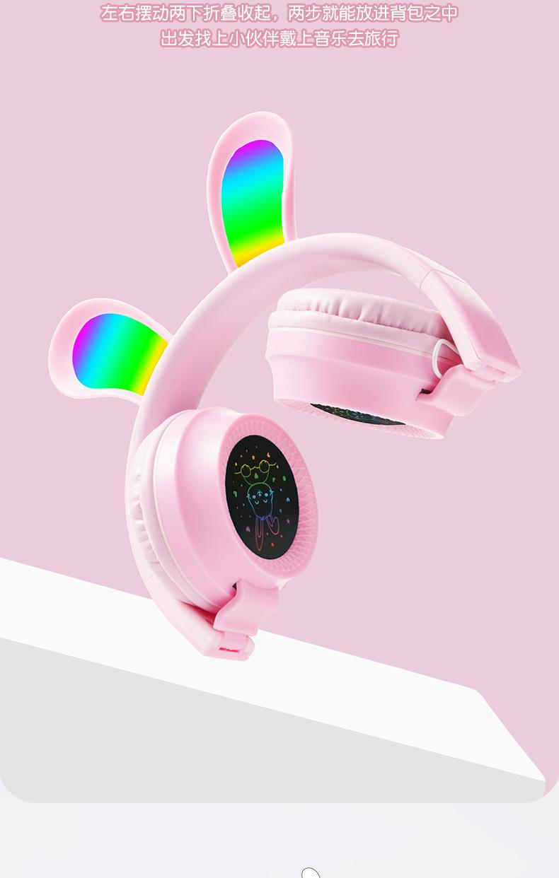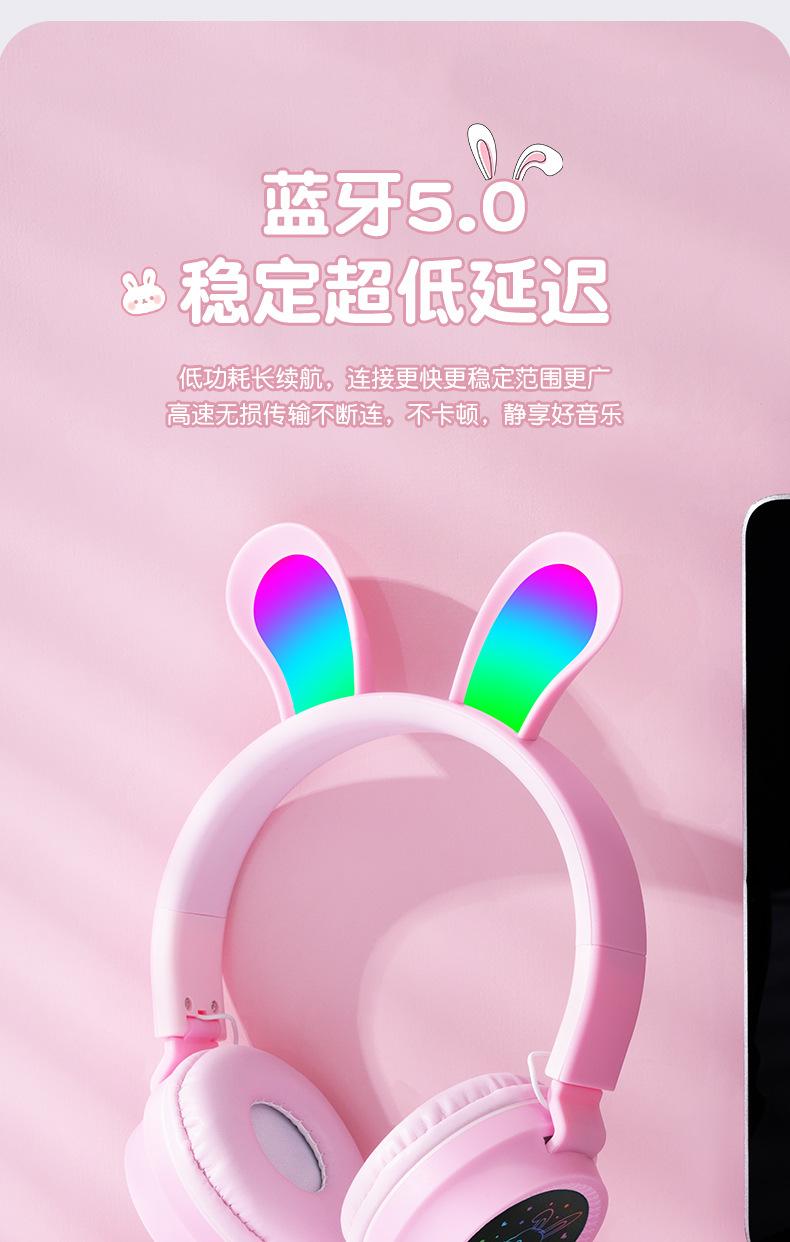Audífonos de Dibujos Animados Rgb Luz Colorida Orejas de Conejo Niños y Estudiantes Montados en la Cabeza Reducción de Ruido Inalámbricos Bluetooth Duración de la Batería Regalo