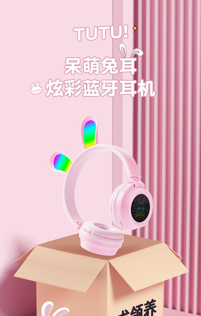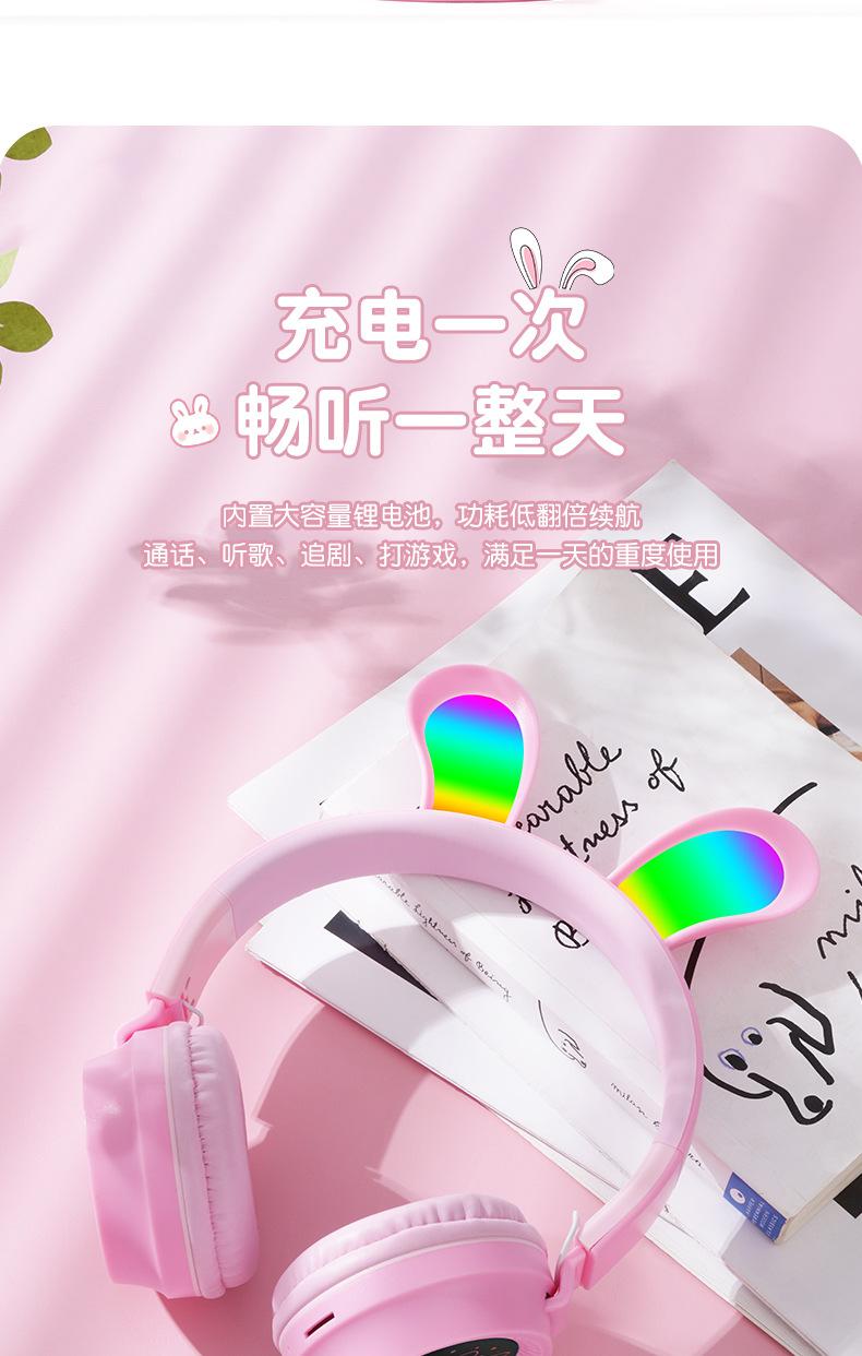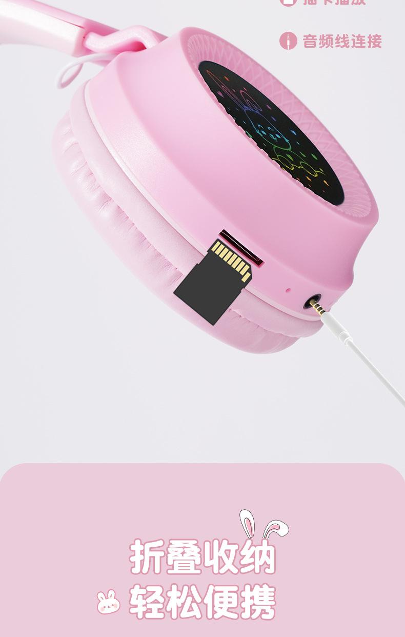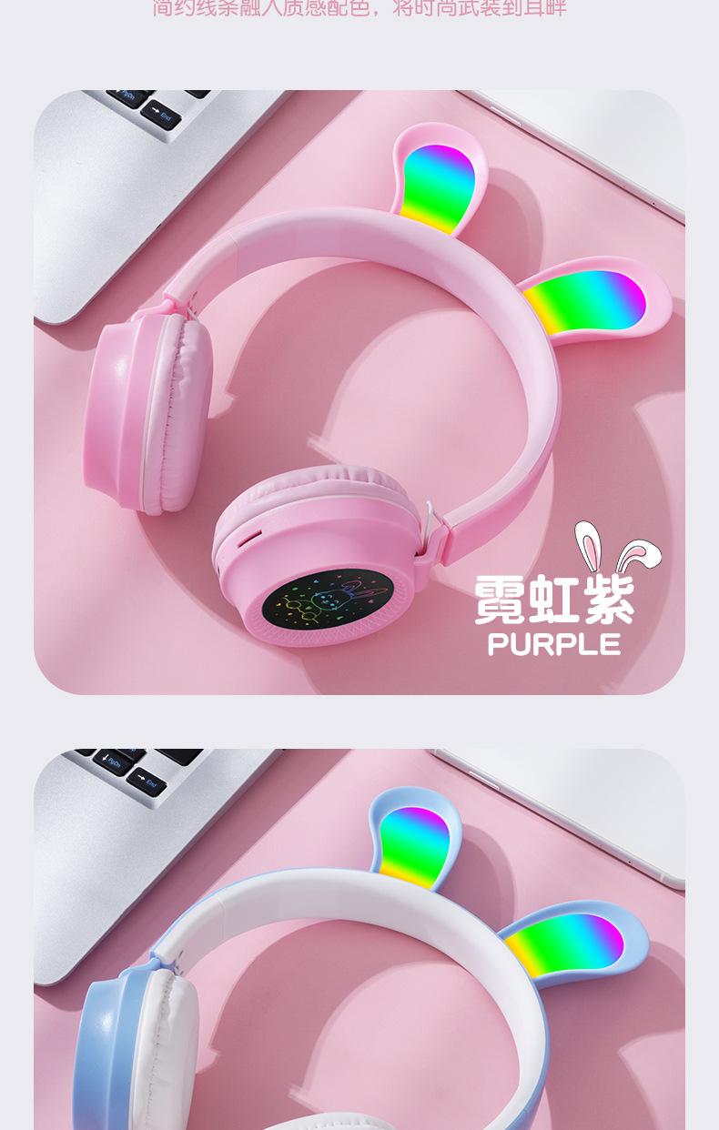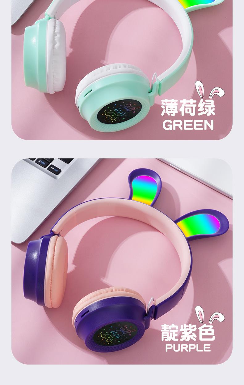 Audífonos de Dibujos Animados Rgb Luz Colorida Orejas de Conejo Niños y Estudiantes Montados en la Cabeza Reducción de Ruido Inalámbricos Bluetooth Duración de la Batería Regalo