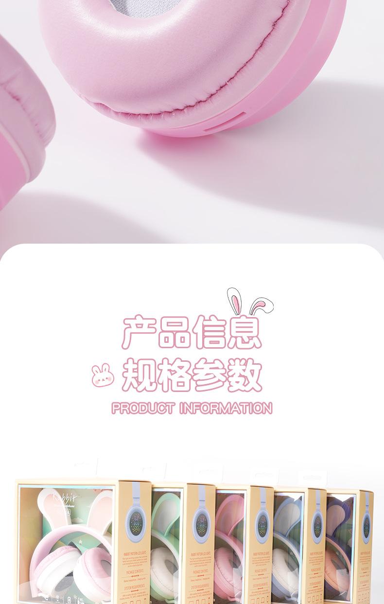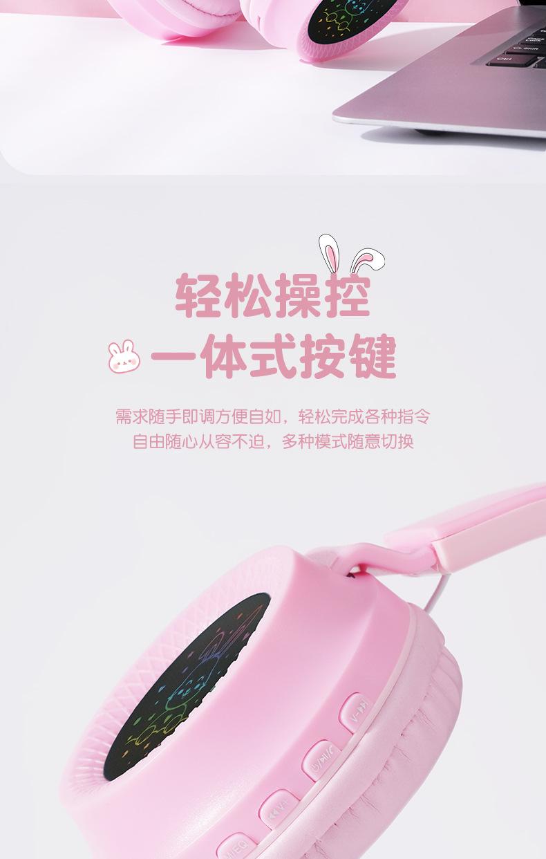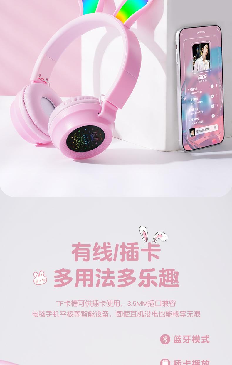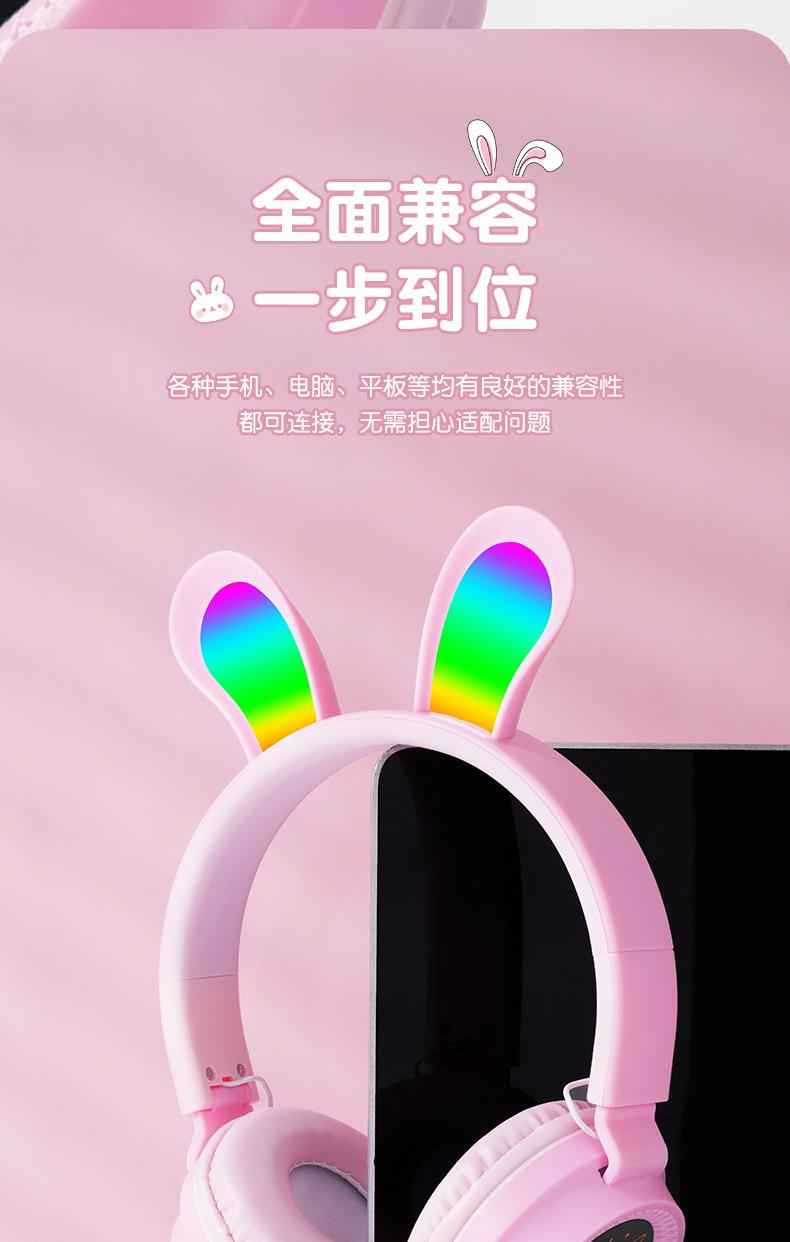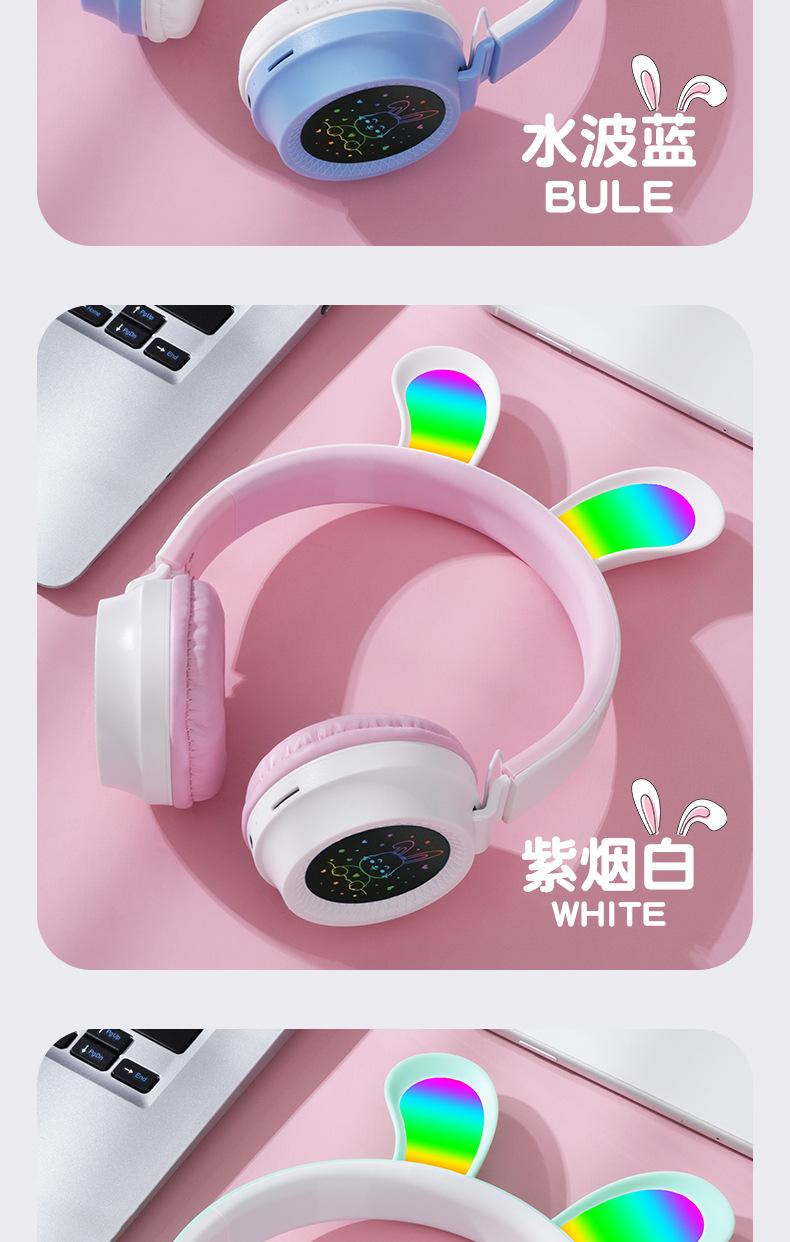 Audífonos de Dibujos Animados Rgb Luz Colorida Orejas de Conejo Niños y Estudiantes Montados en la Cabeza Reducción de Ruido Inalámbricos Bluetooth Duración de la Batería Regalo