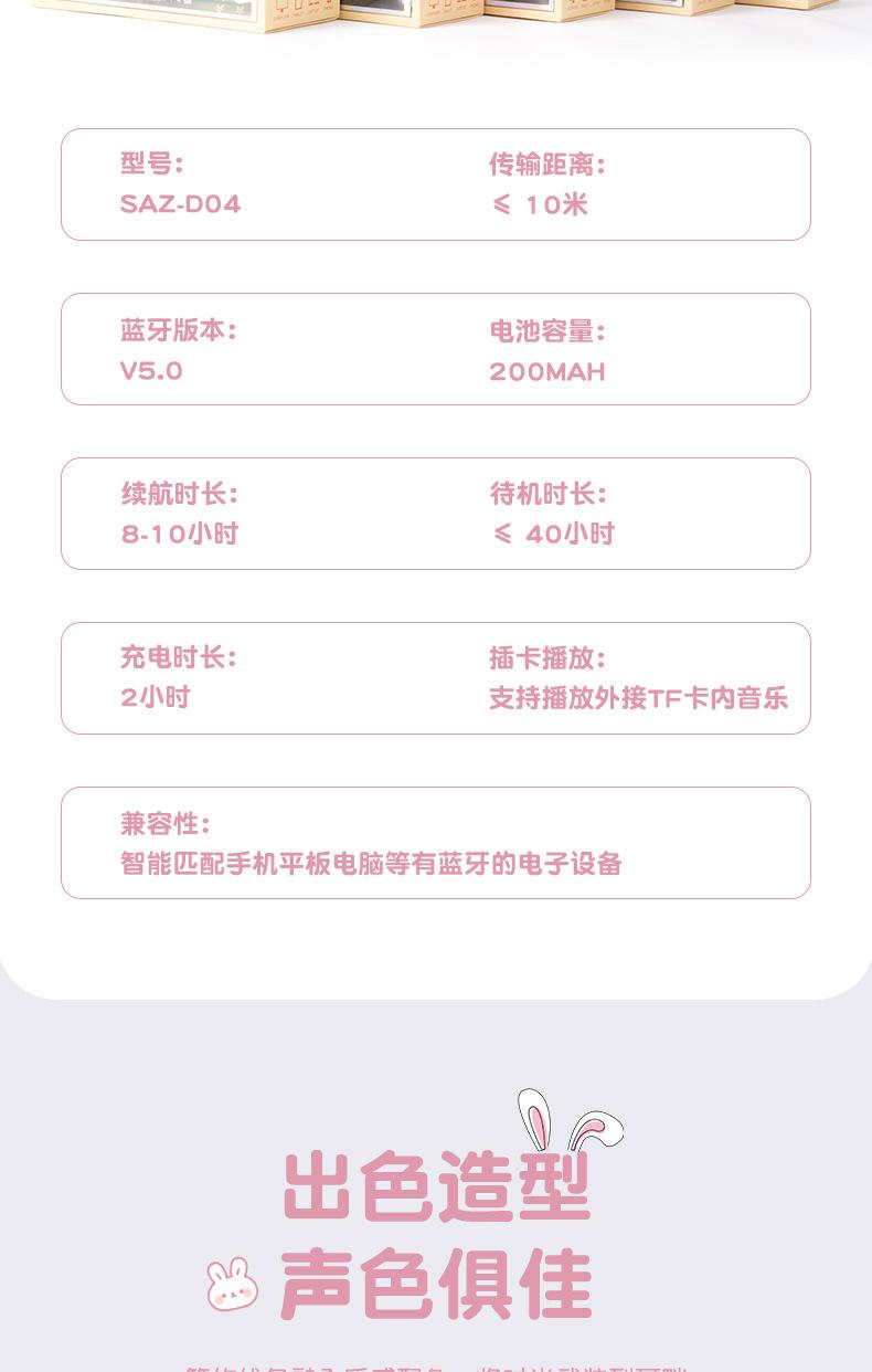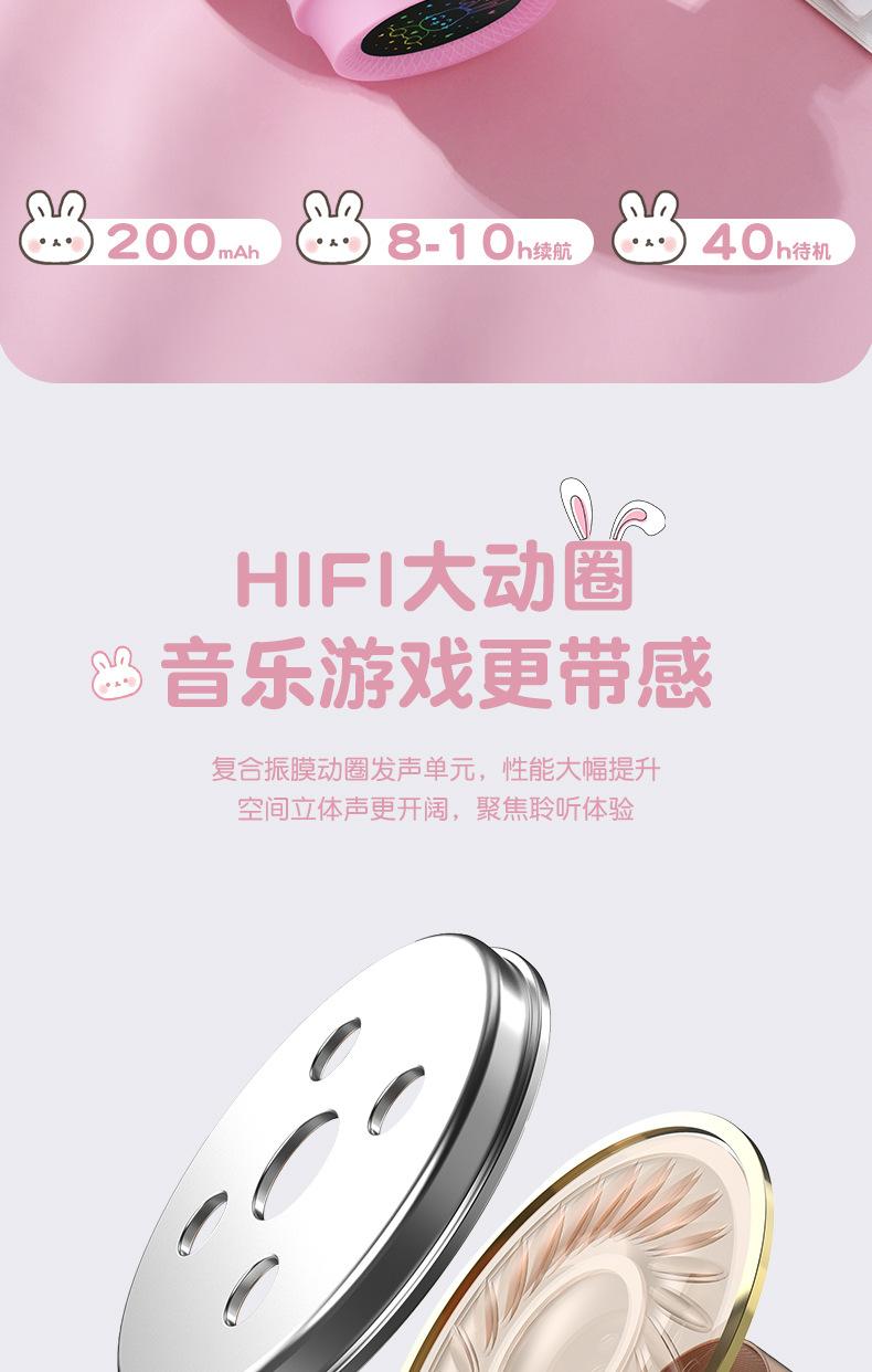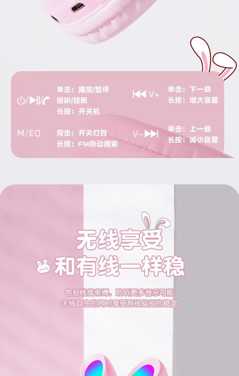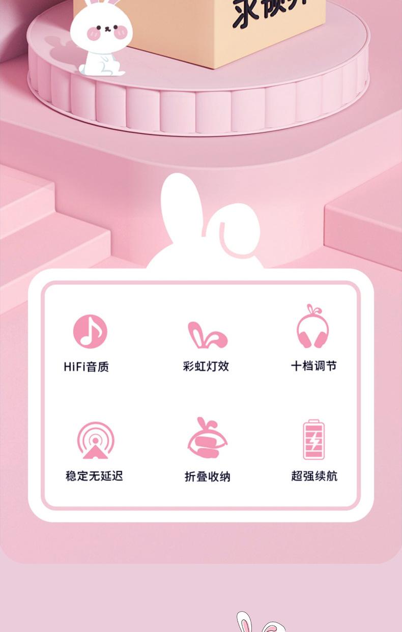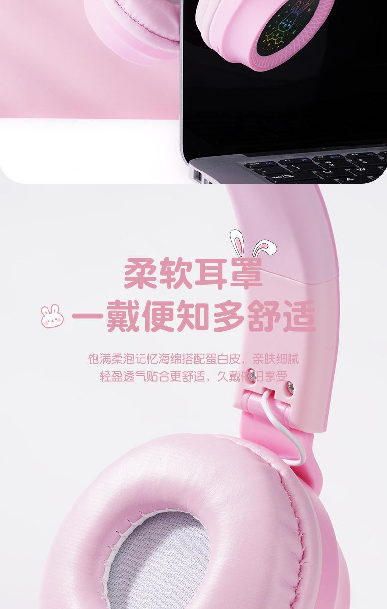 Audífonos de Dibujos Animados Rgb Luz Colorida Orejas de Conejo Niños y Estudiantes Montados en la Cabeza Reducción de Ruido Inalámbricos Bluetooth Duración de la Batería Regalo
