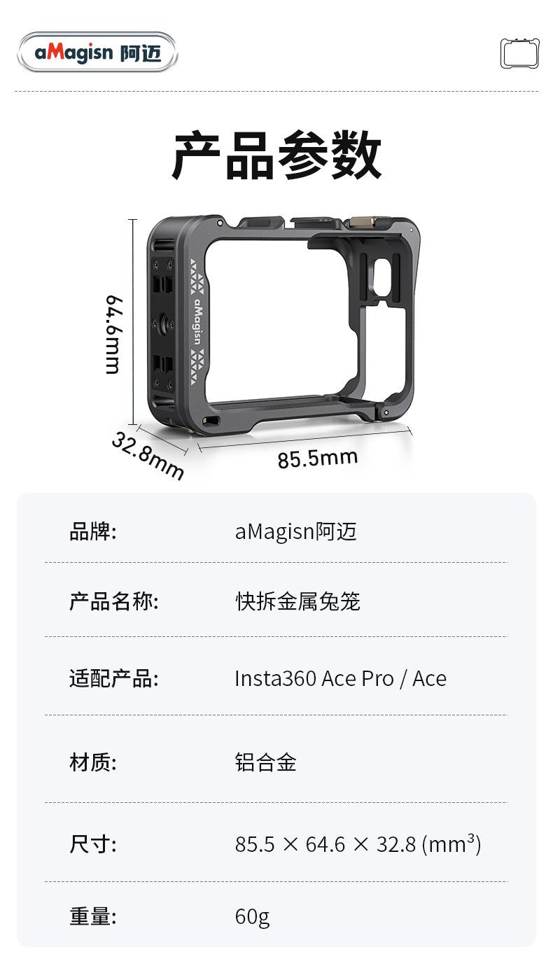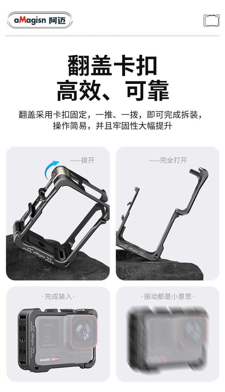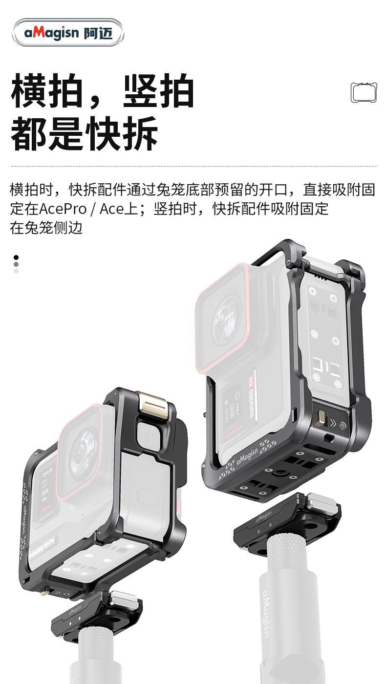 AMagisn Amai Sombra Aplicable Piedra Insta360 AcePro2/Pro Jaula Metálica de Conejo Marco de Protección de Liberación Rápida