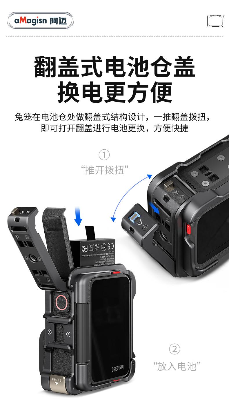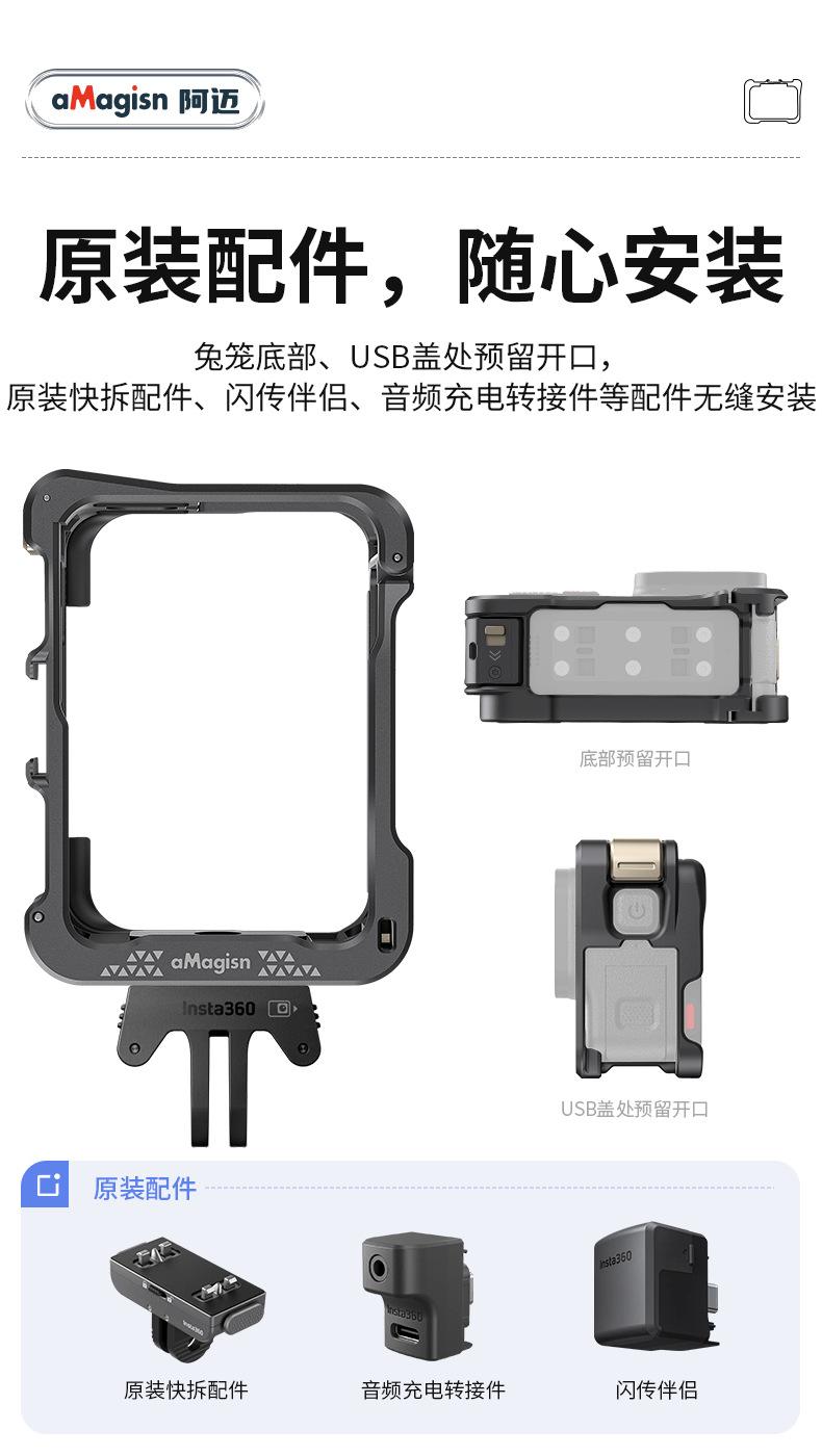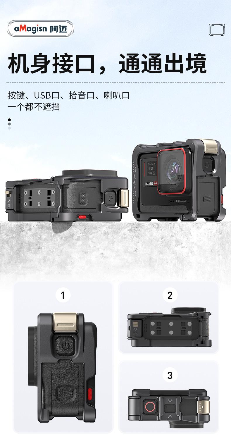 AMagisn Amai Sombra Aplicable Piedra Insta360 AcePro2/Pro Jaula Metálica de Conejo Marco de Protección de Liberación Rápida