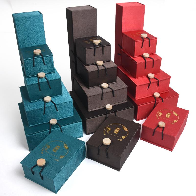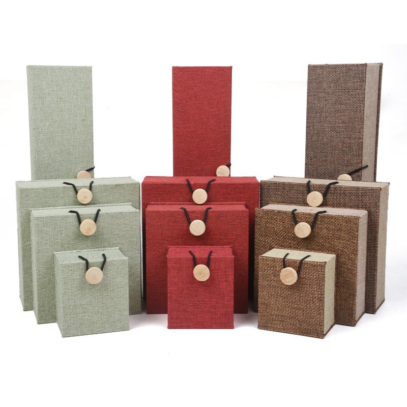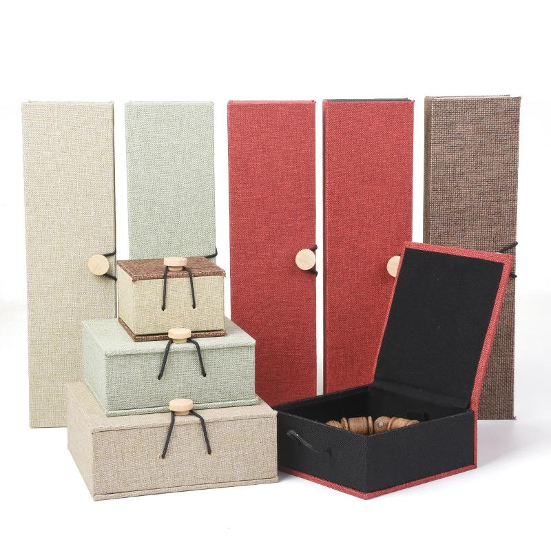 Red hemp-wooden buckle; 6x7 ring box, Red hemp-wooden buckle; 7.5x10 large pendant box, Red hemp-wooden buckle...