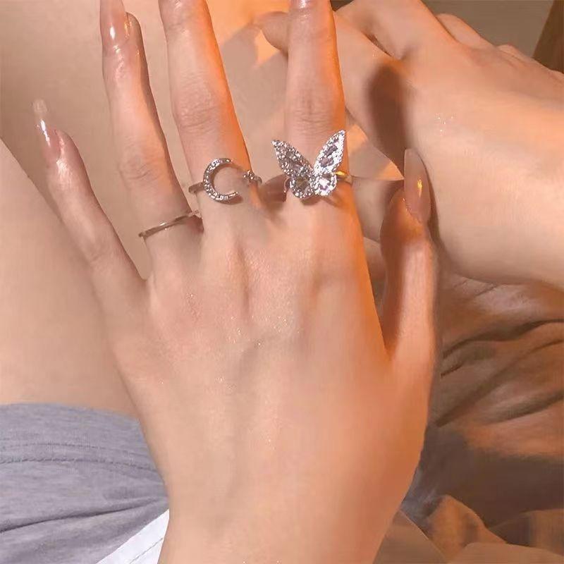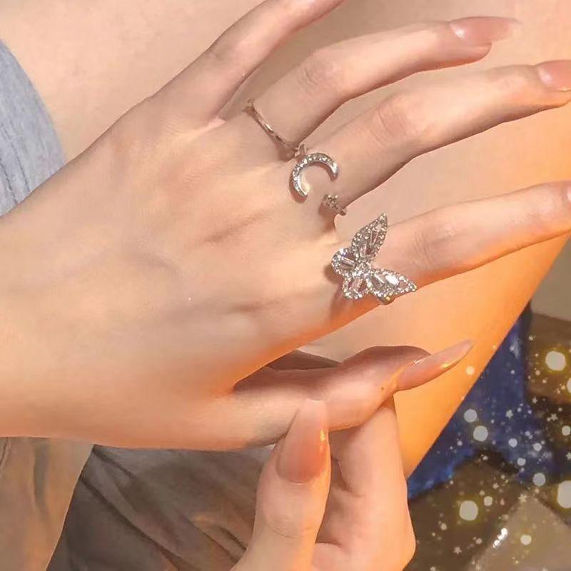 Librito Rojo con Anillo de Mariposa de Diamante Plateado Diseño Original de Nicho Femenino Super Flash Viento Frío Suave Anillo Abierto