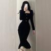 [black dress] [days autumn and early winter/dresses/halloween clothing/miu li-fashioned/slimming look outfits for loose-fit girls/elegant for formal occasions/rich