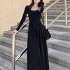 Vestido Negro de Manga Larga Estilo Hepburn Francés con Cintura Entallada para Mujer Otoño e Invierno 2025 Nuevo Persona Pequeña Otoño Falda Larga
