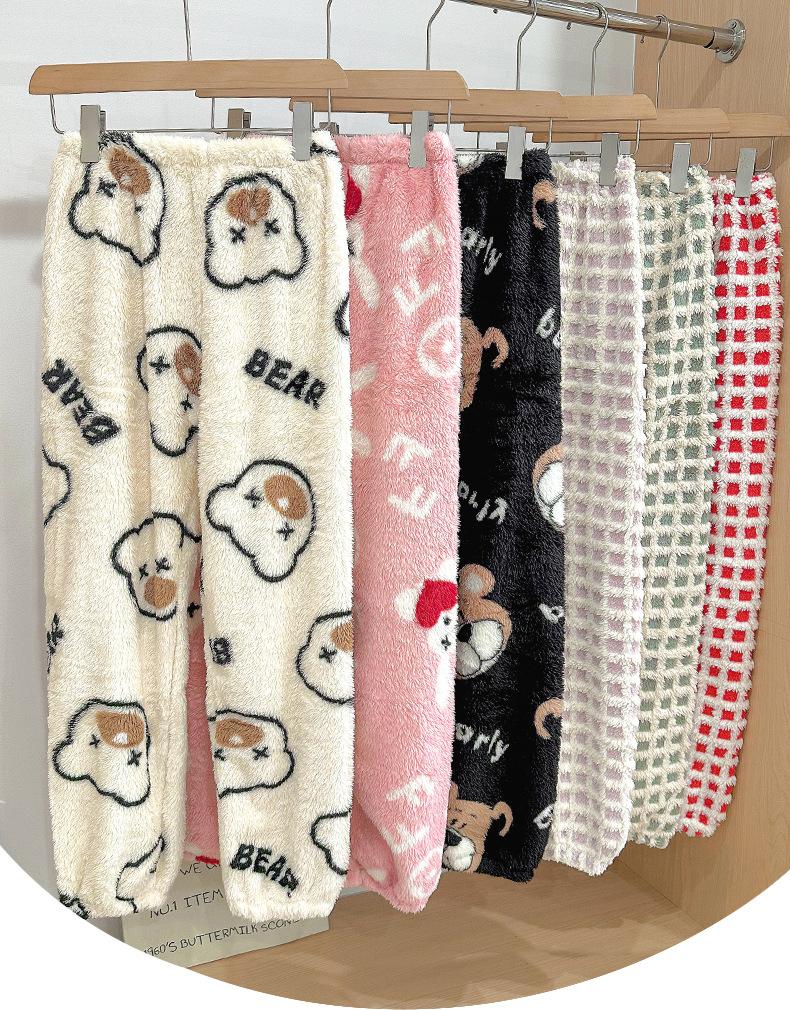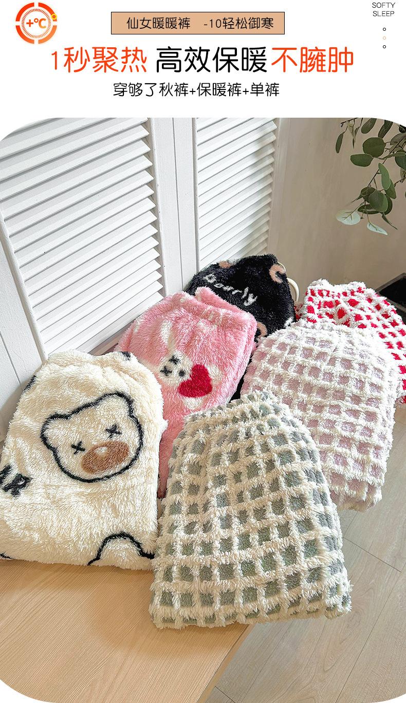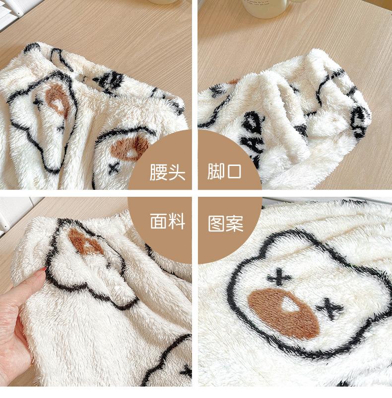 Pantalones de pijama para mujer, otoño e invierno, forrados con vellón, gruesos, de terciopelo coral, cálidos, de franela, para el hogar, para uso exterior, de talla grande.