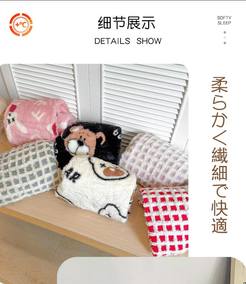 Rice apricot bear, Pink bunny, Black dog, Red plaid, Blue plaid, Light purple plaid