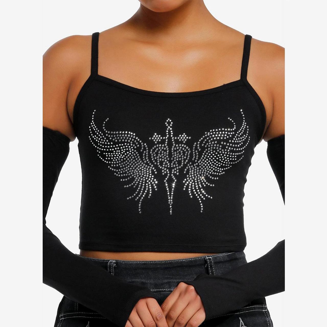 Verano y Otoño 2025 Mariposa Diamante Caliente Tirantes para Mujer Ombligo Expuesto Adelgazante Sexy Estilo Club Nocturno Top Chaleco