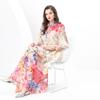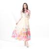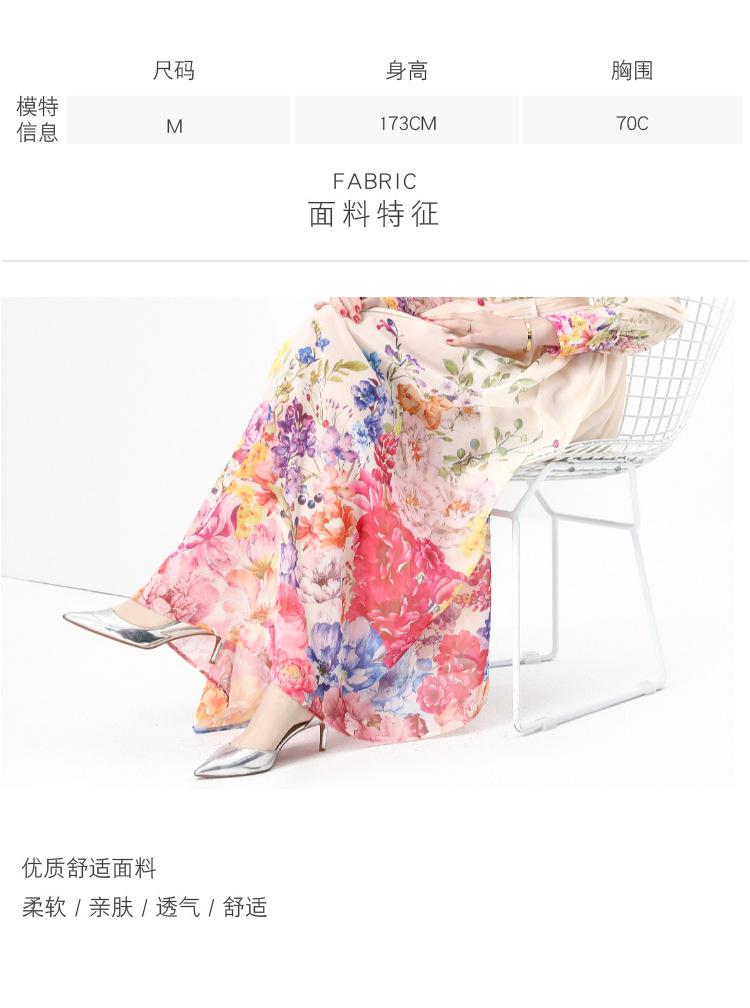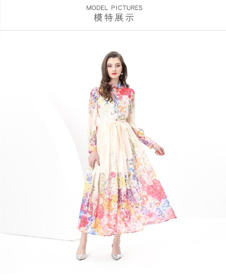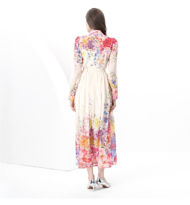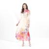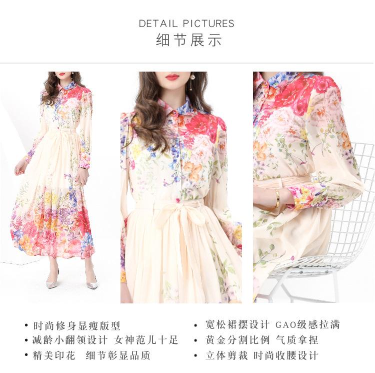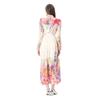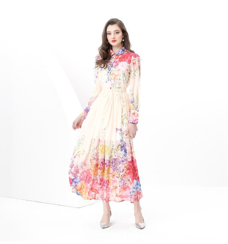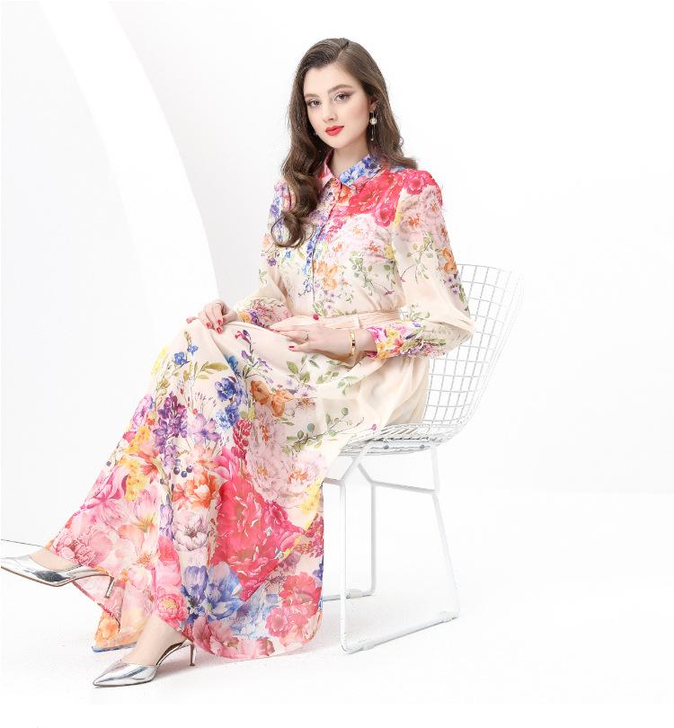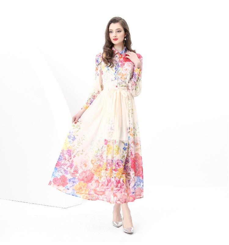 Moda Primavera/Verano 2025 Estilo Retro Cuello Vuelto Manga Linterna Borde Ondulado Vestido Largo Estampado Fluido