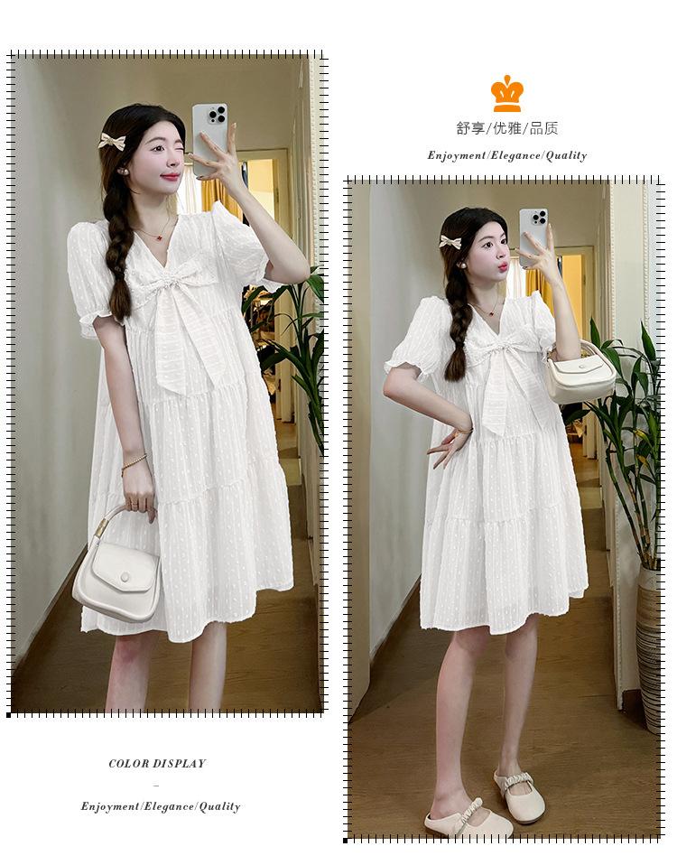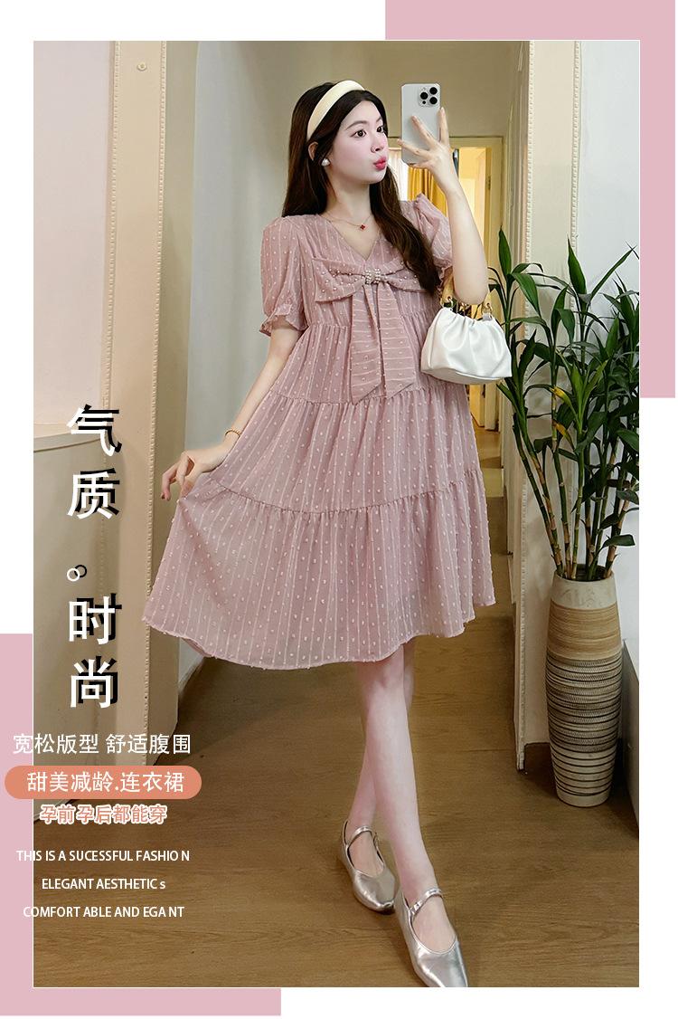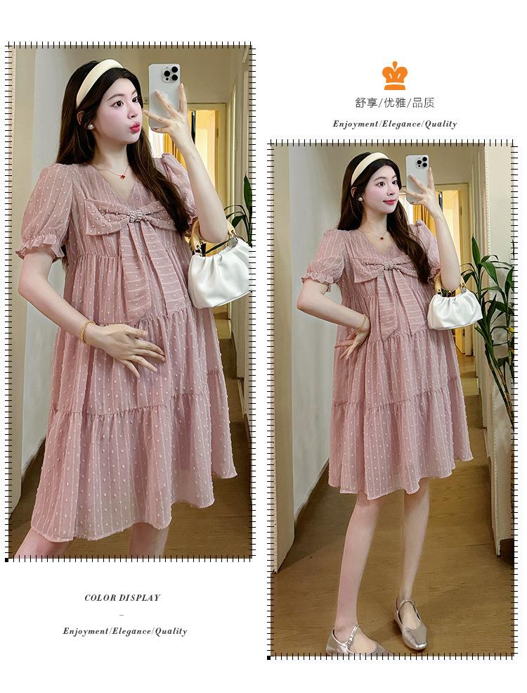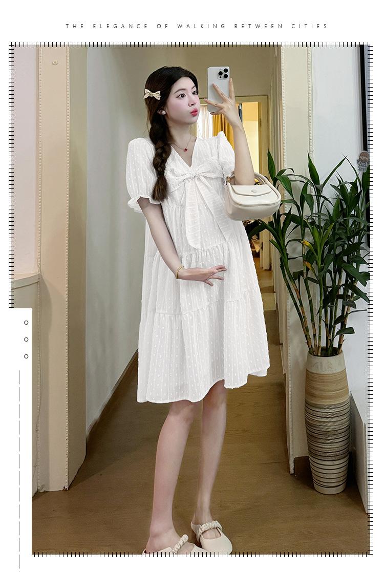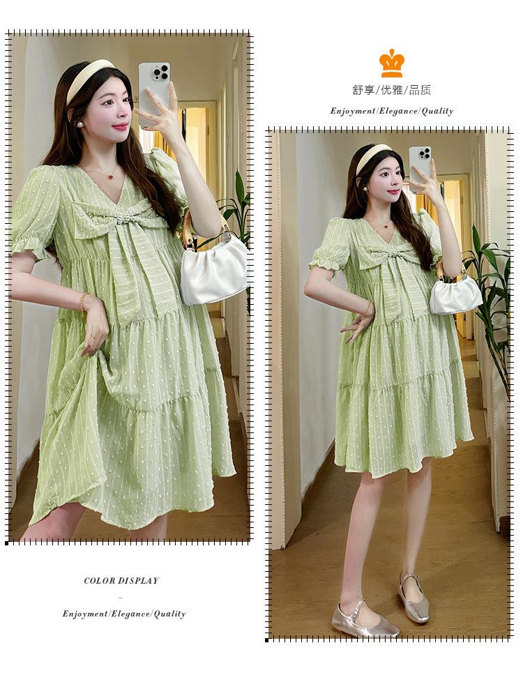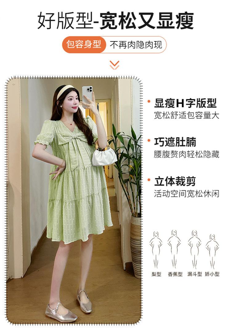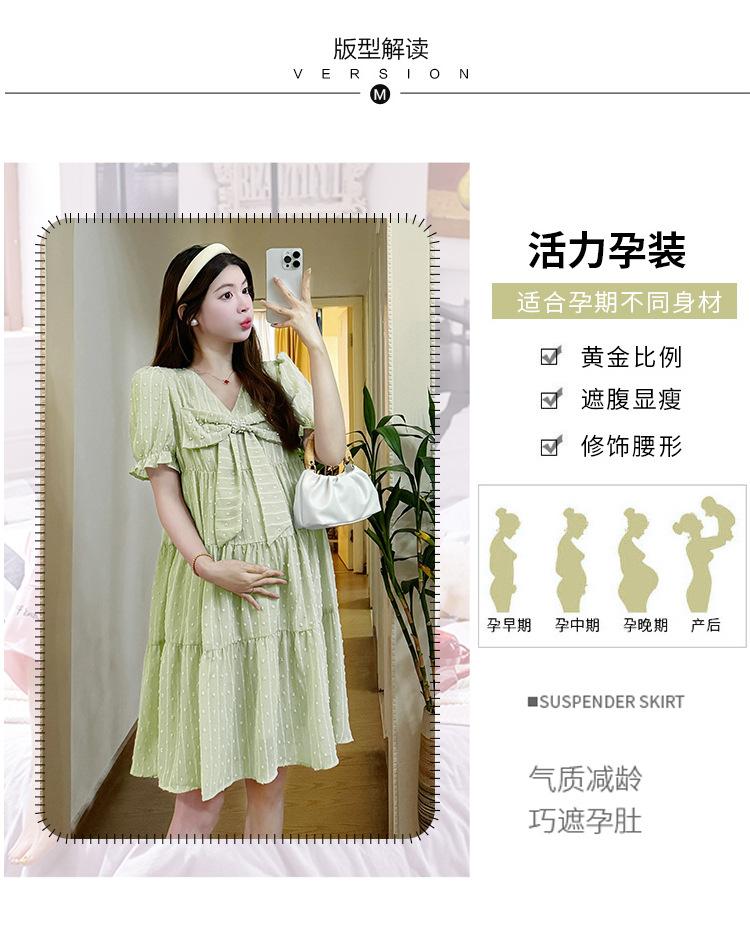 Ropa de Maternidad 2025 Verano Nuevo Dulce Reductor de Edad Fresco Lazo Suelto Talla Grande Vestido de Maternidad