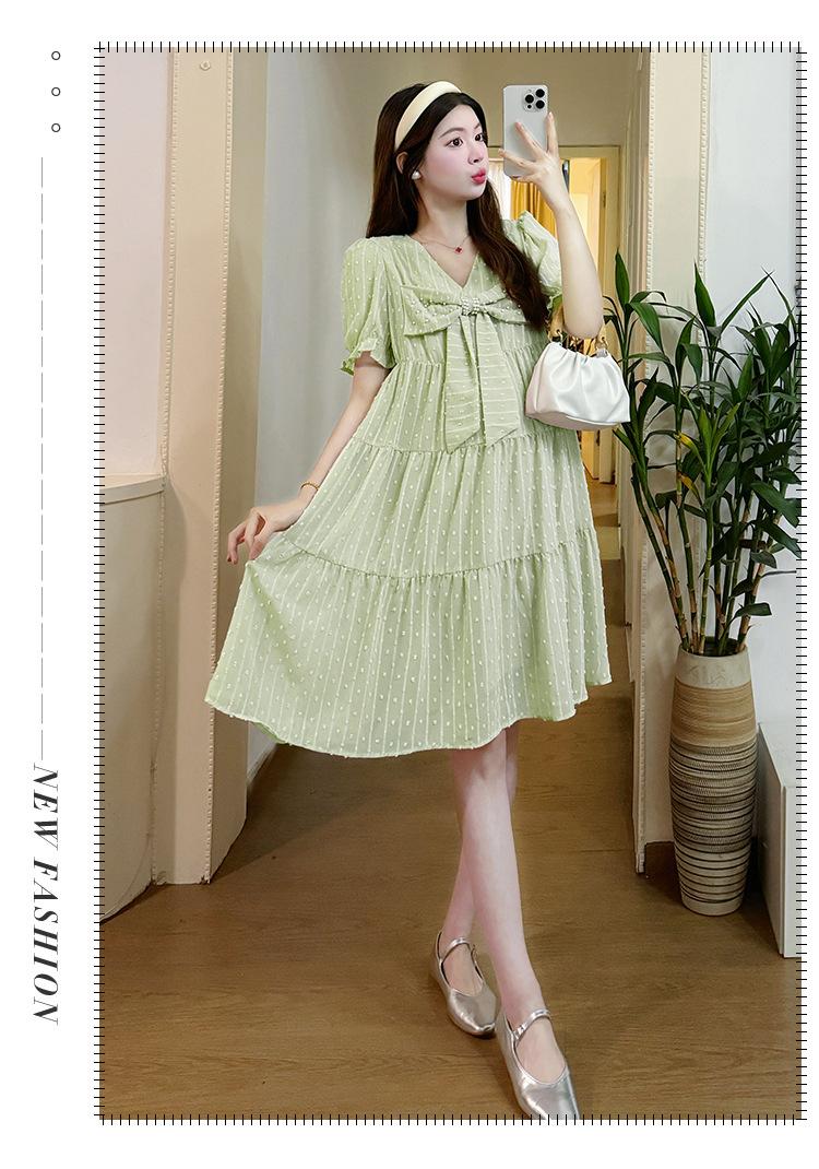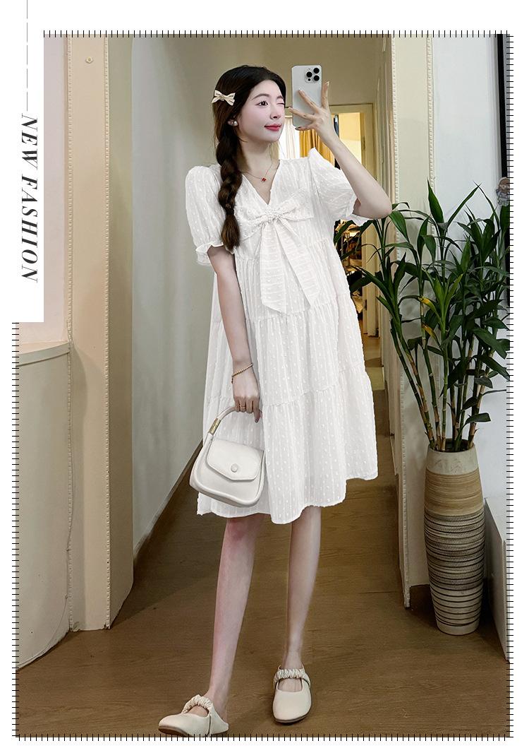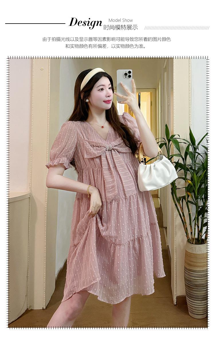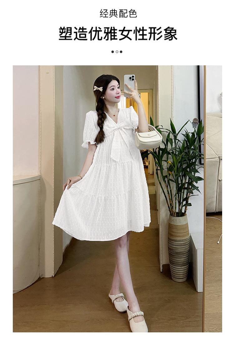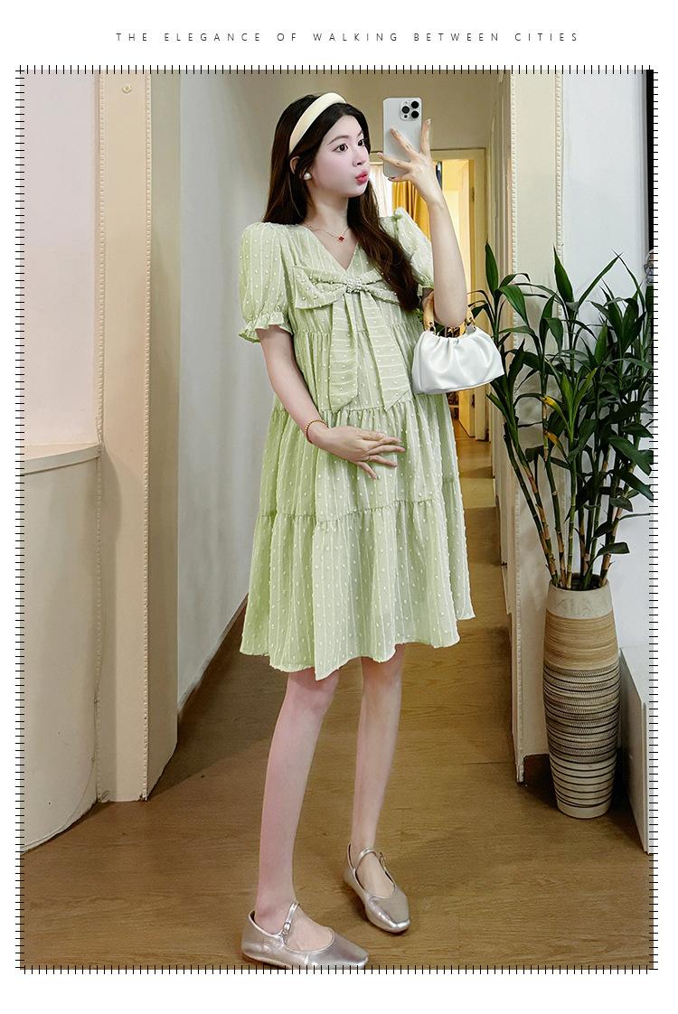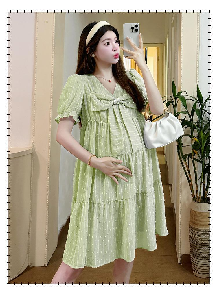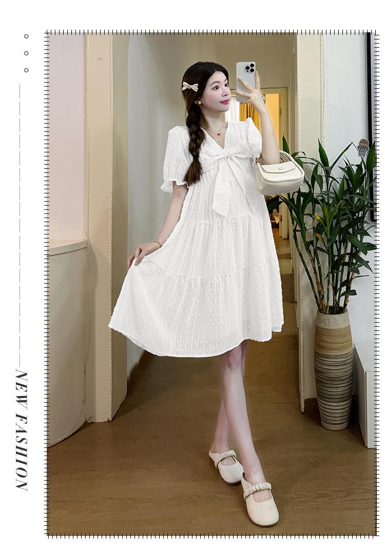 Ropa de Maternidad 2025 Verano Nuevo Dulce Reductor de Edad Fresco Lazo Suelto Talla Grande Vestido de Maternidad