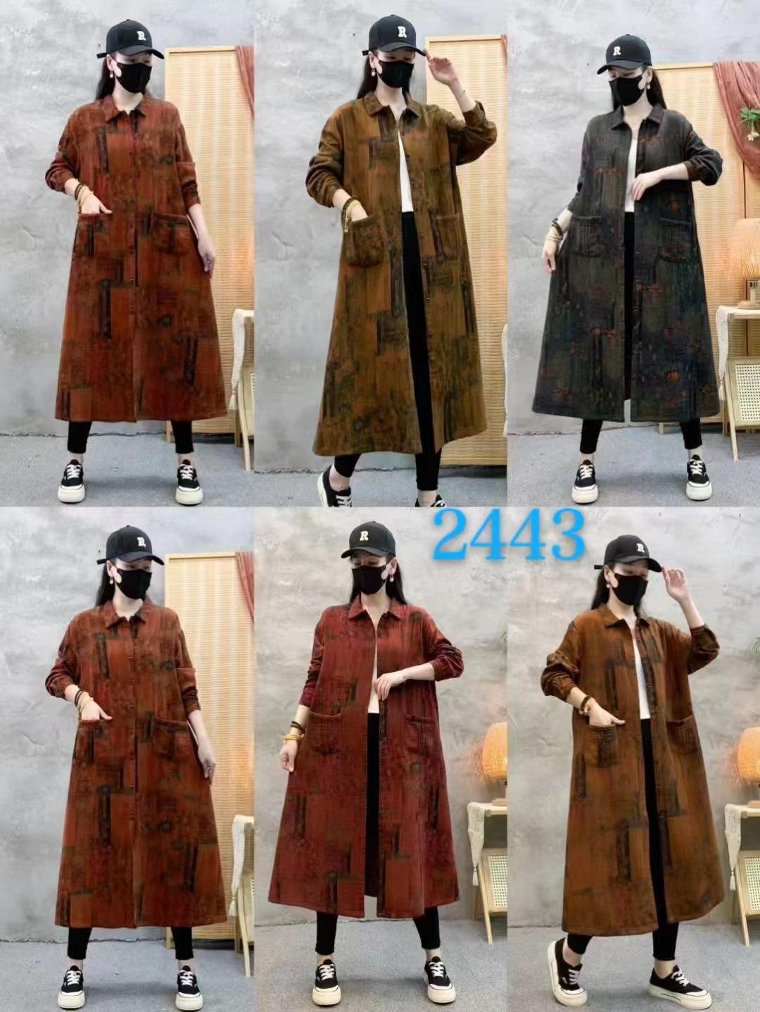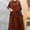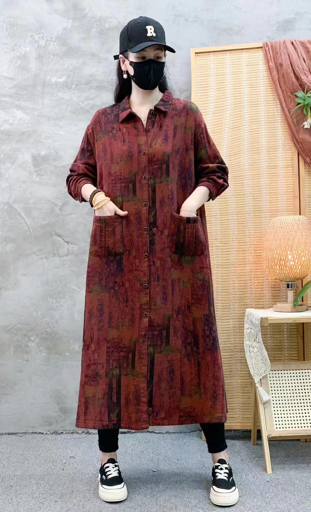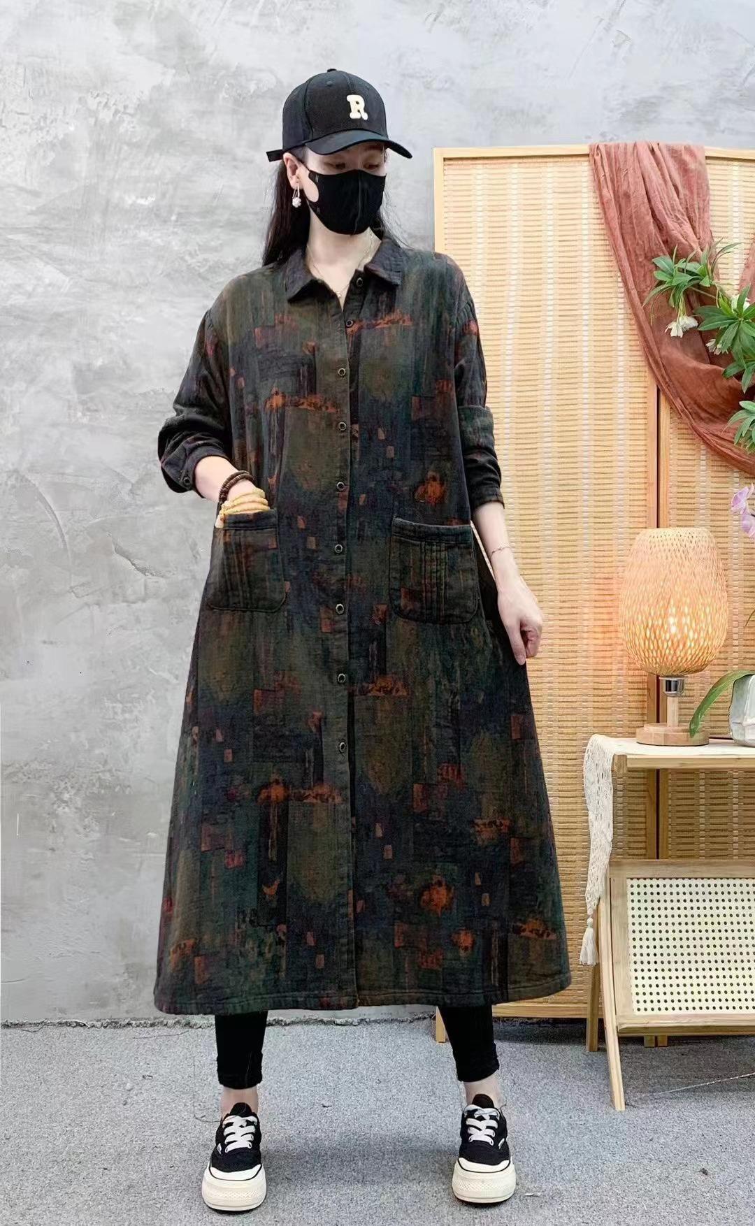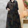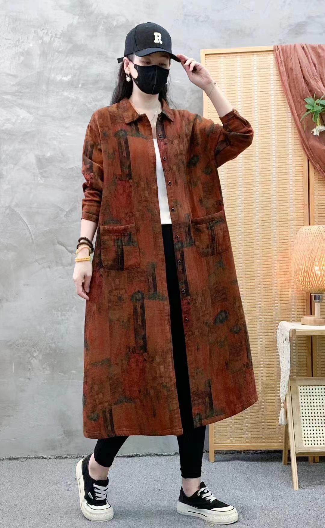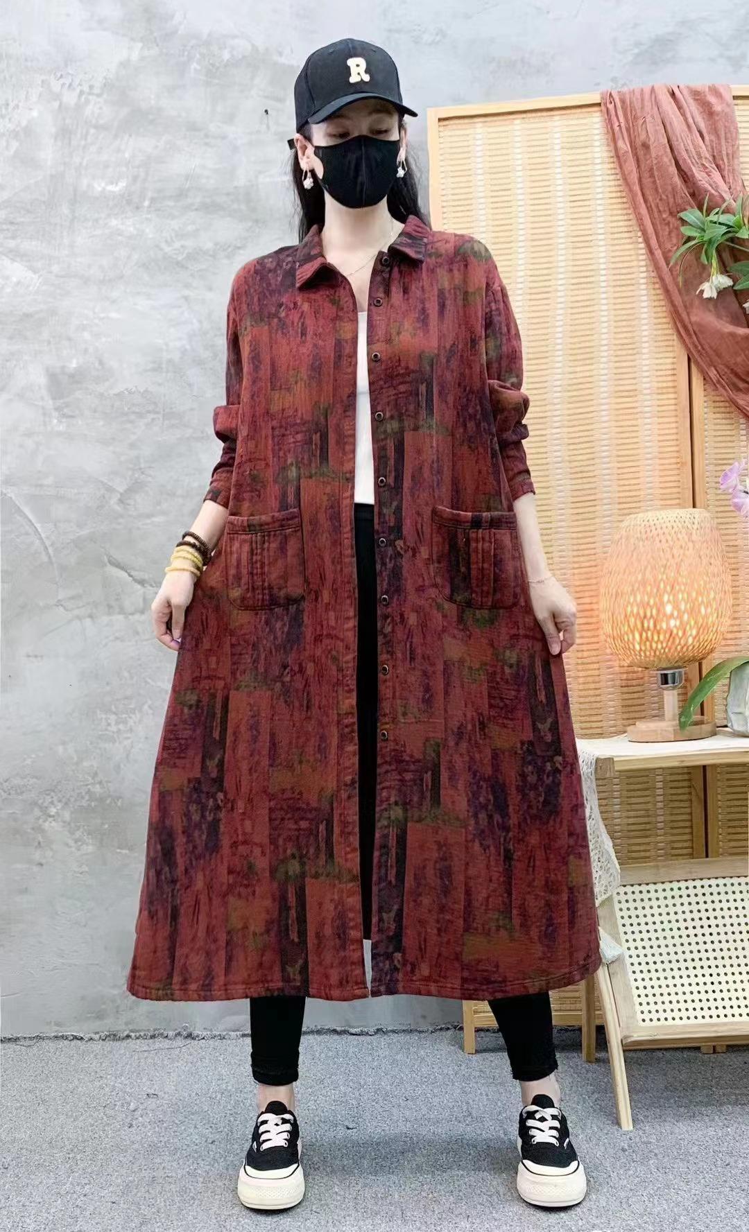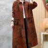 Otoño 2024 Nuevo Abrigo Estilo Étnico Estampado Vintage Abrigo para Mujer Suelto Casual Versátil Largo Medio Top
