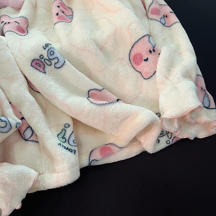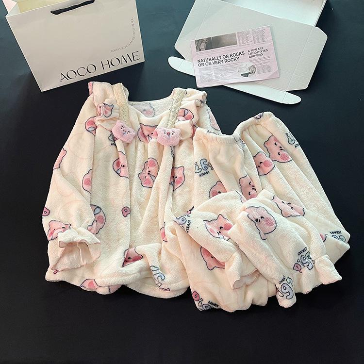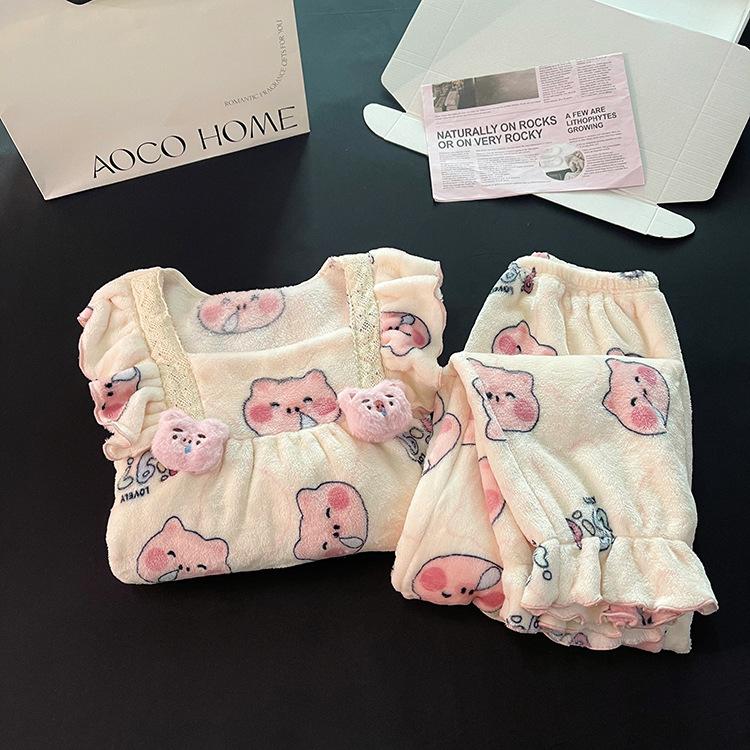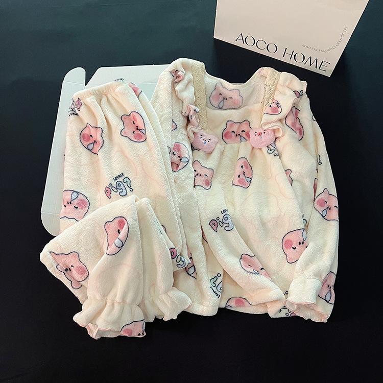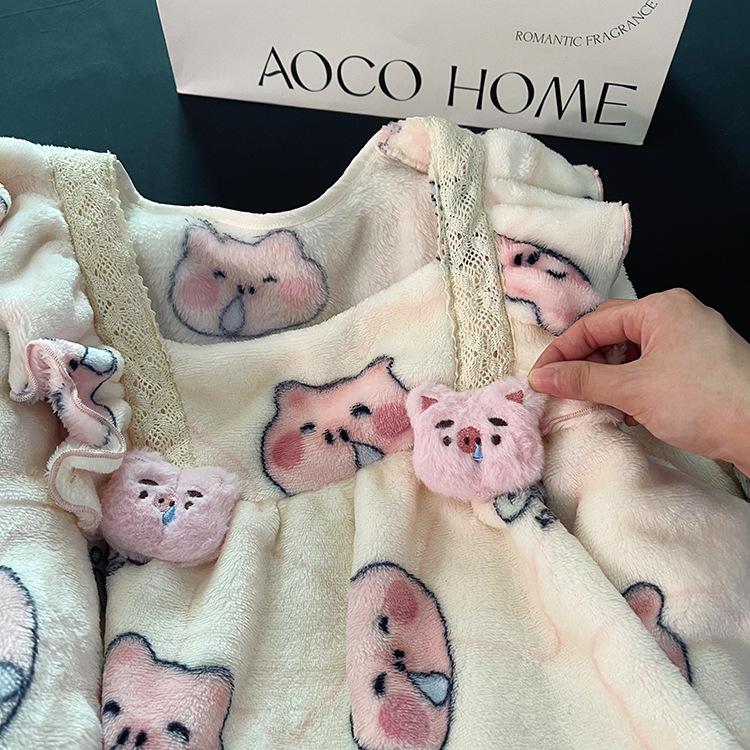 Pijama de Forro Polar Coral para Mujer Otoño e Invierno Lindo Estilo Princesa Franela Gruesa y Cálida Ropa para el Hogar Invierno Cubierta de Forro Polar