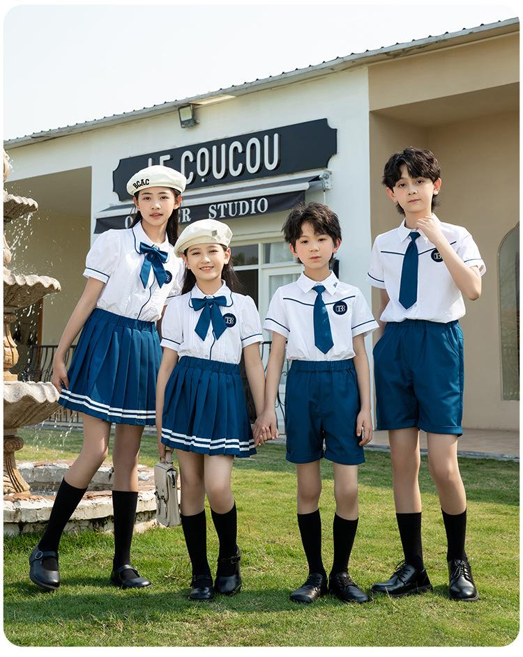 Uniforme escolar de jardín de niños uniforme de verano traje uniforme de talla para niños de primaria uniforme de clase estilo JK manga corta uniforme de graduación profesor