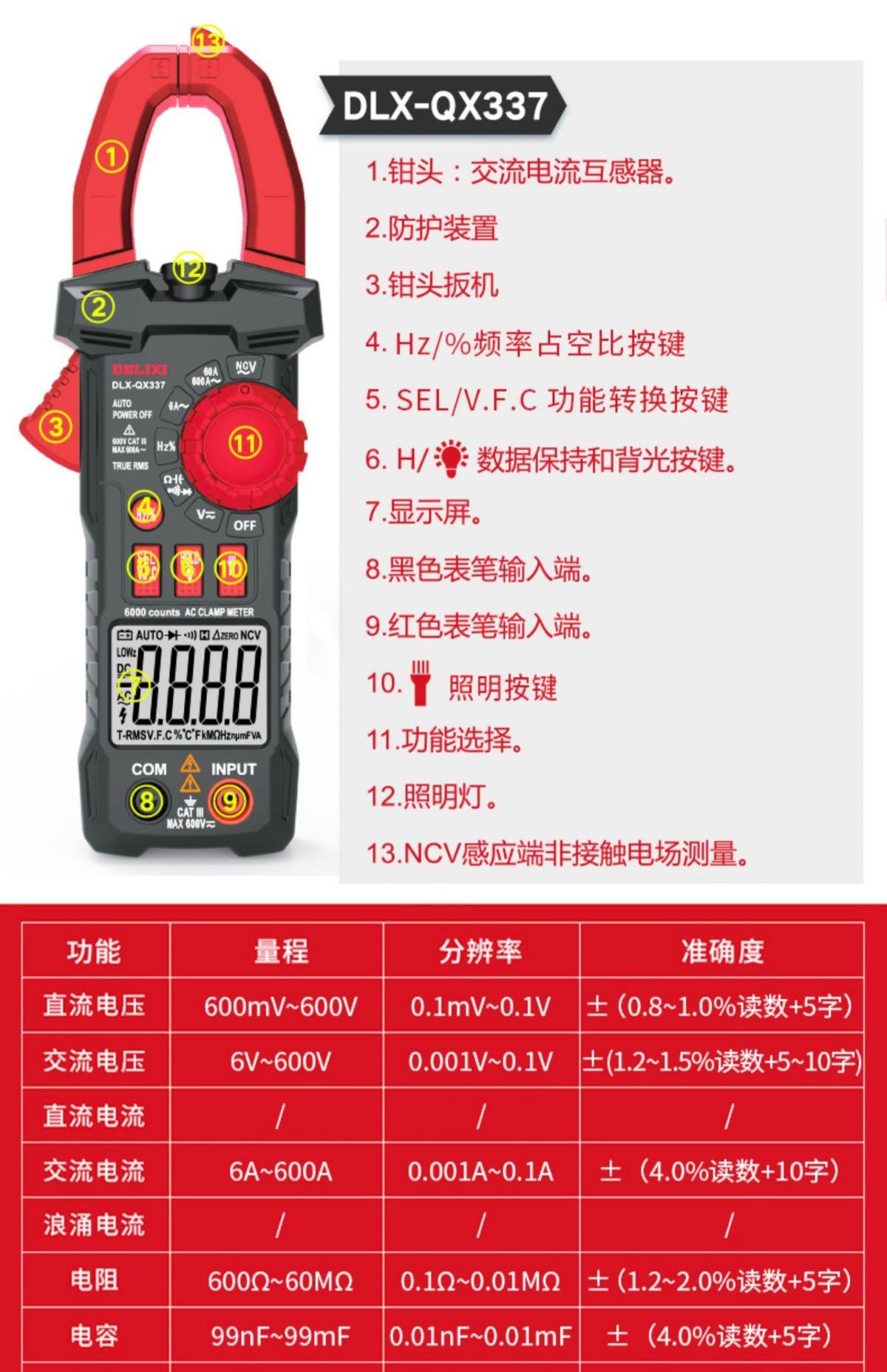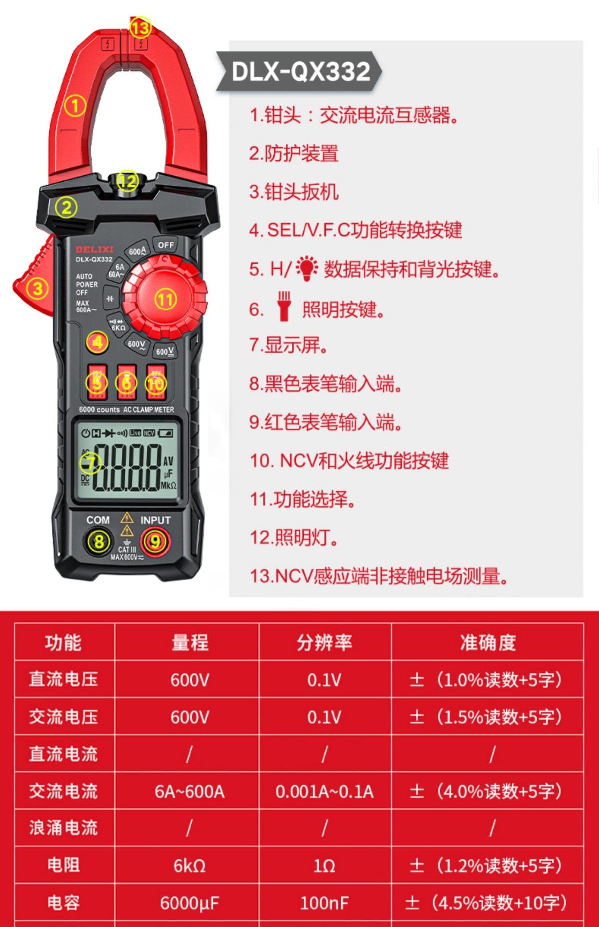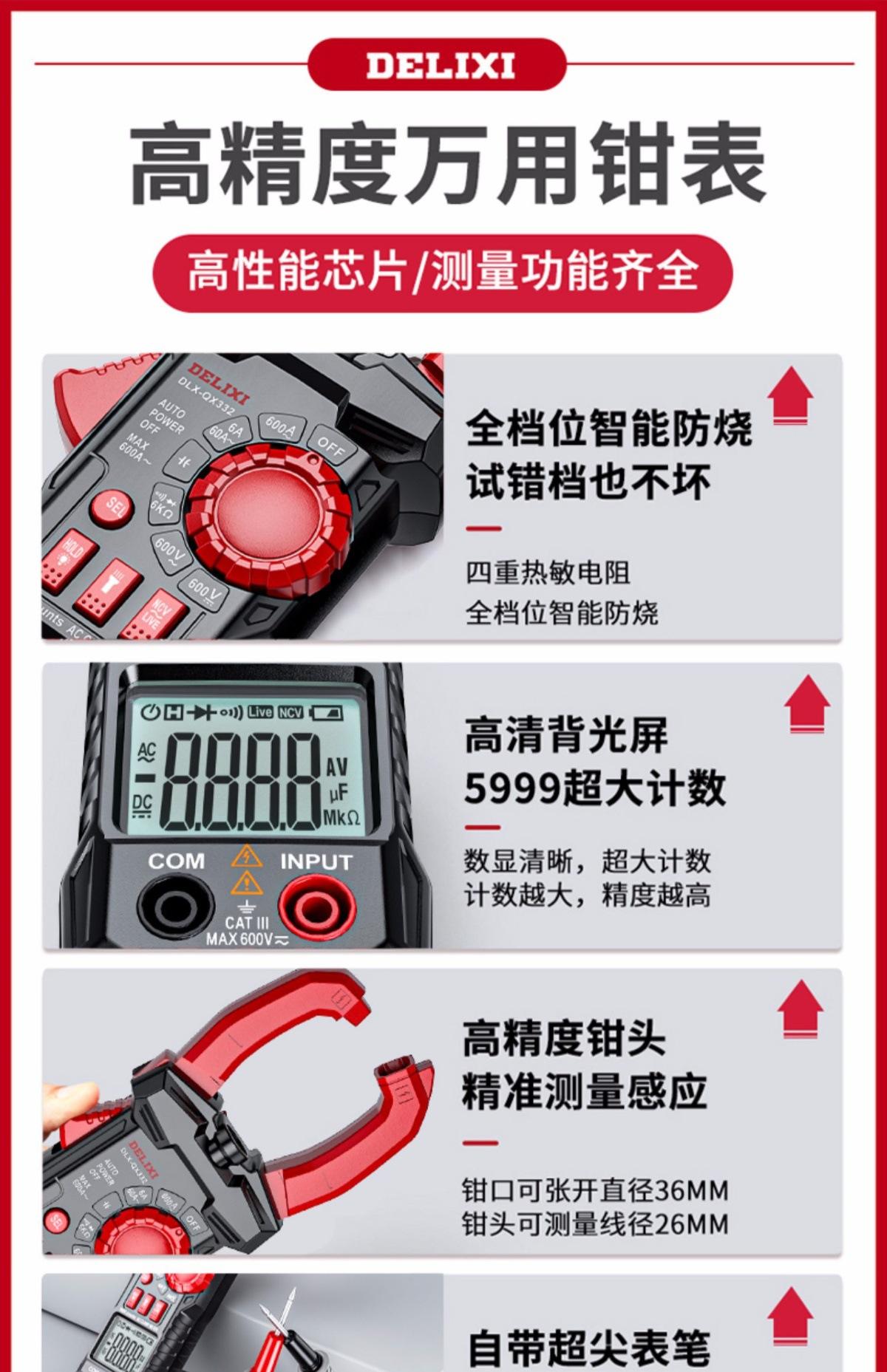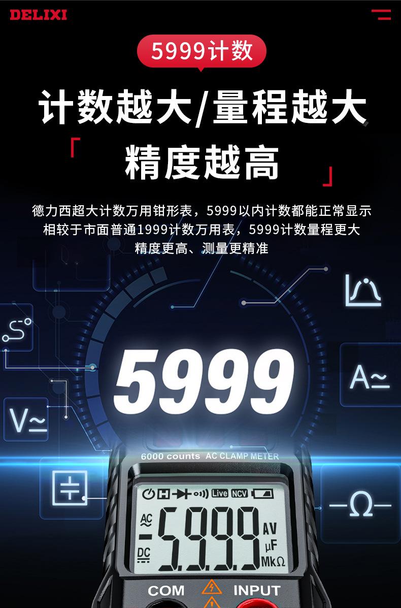 Multímetro de Pinza de Alta Precisión Delixi Electricista Especial Medidor de Pinza Inteligente Medidor Universal Amperímetro Medidor de Pinza de CC