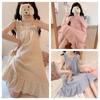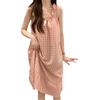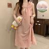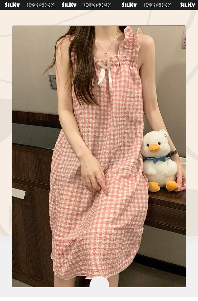 Verano estilo coreano dulce algodón burbuja con tirantes y almohadilla en el pecho camisón de mujer sin mangas suelto a cuadros linda chica largo medio