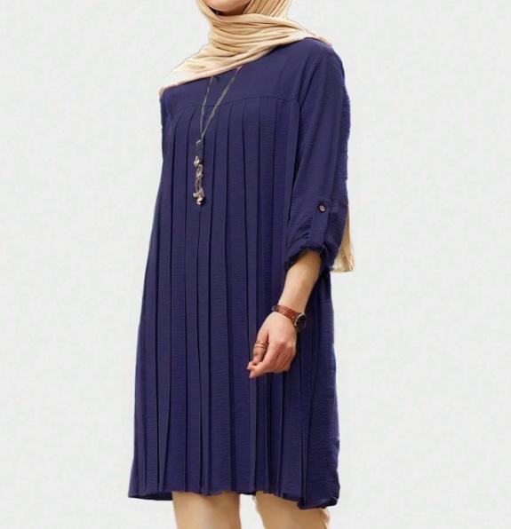 Estilo Nuevo de Oriente Medio para Mujer Musulmana Casual Plisado Suelto Manga Larga Cuello Redondo Jersey Camiseta Top Versátil en el Sudeste Asiático