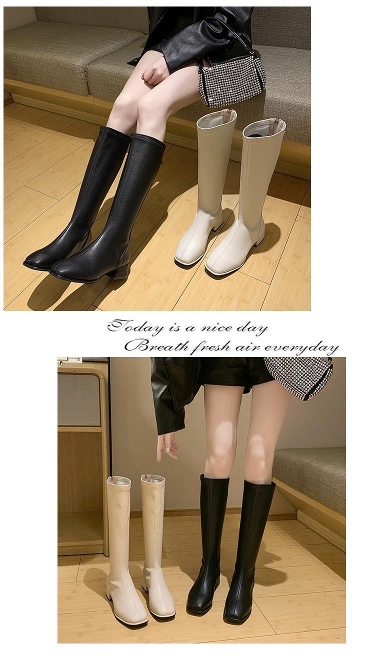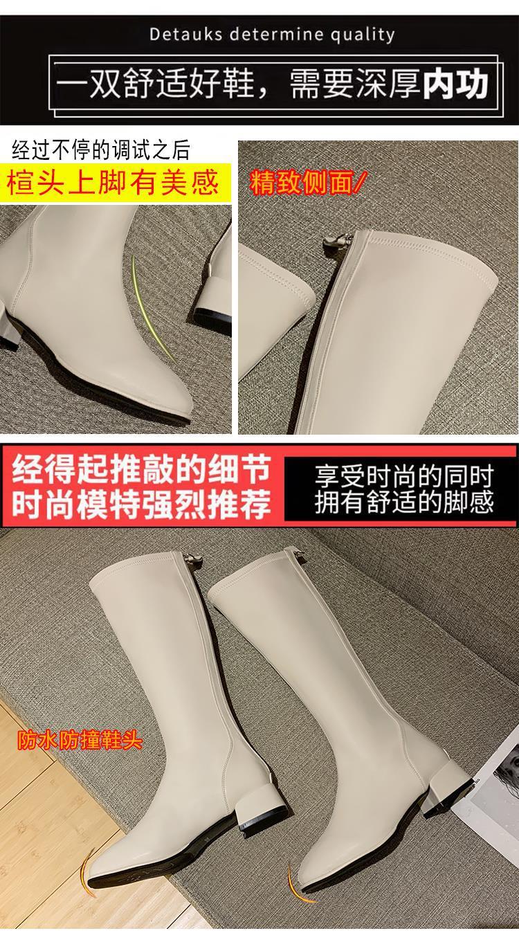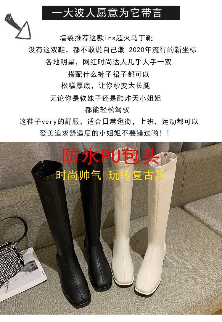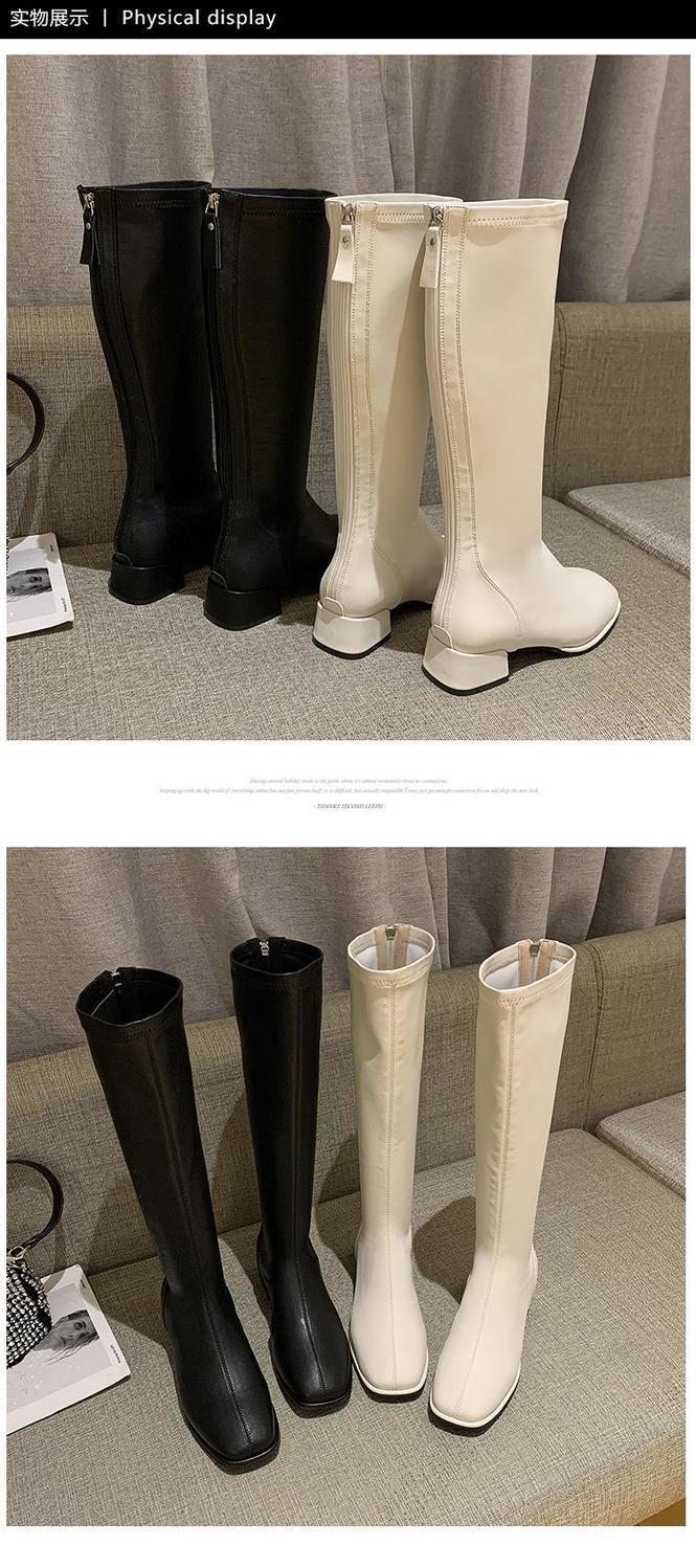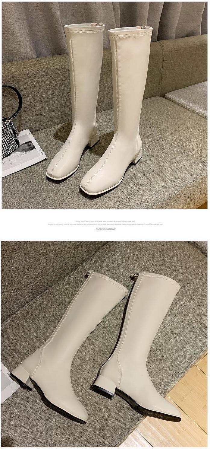 Botas Largas Pequeñas para Mujer, Botas de Caballero que no llegan más arriba de la rodilla, Botas de Cuero de Tacón Grueso 2021 Otoño e Invierno Nuevo Estilo Tubo Largo Más Han Fangsu