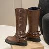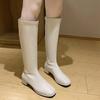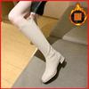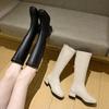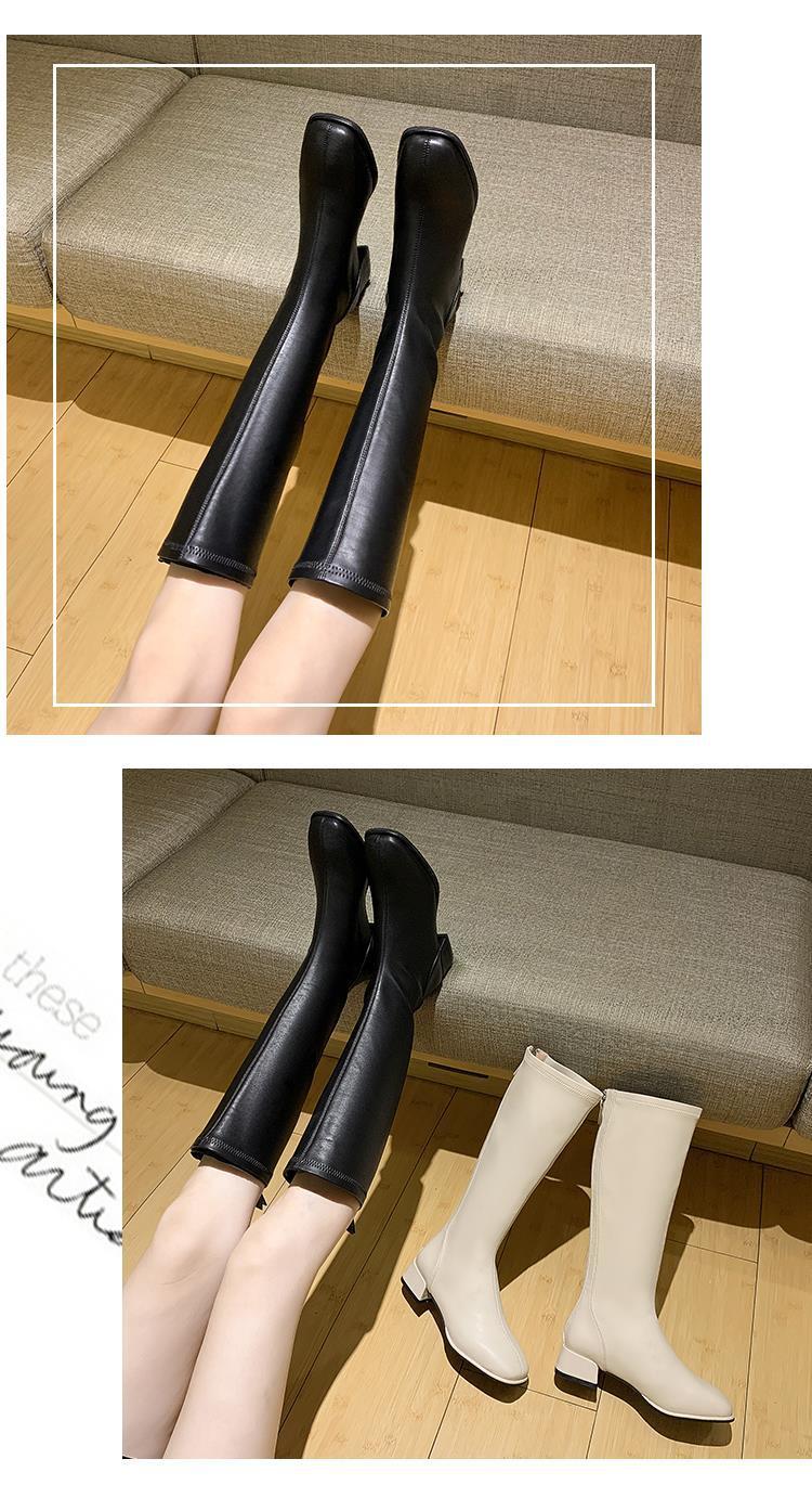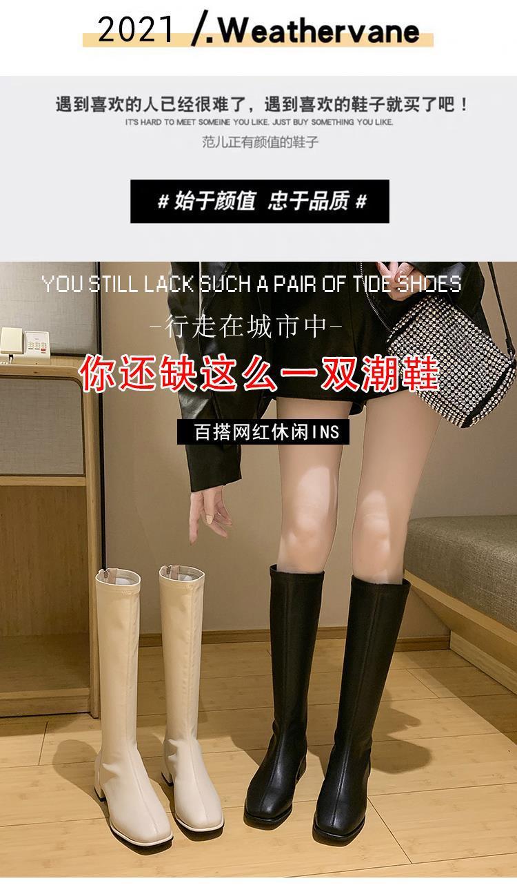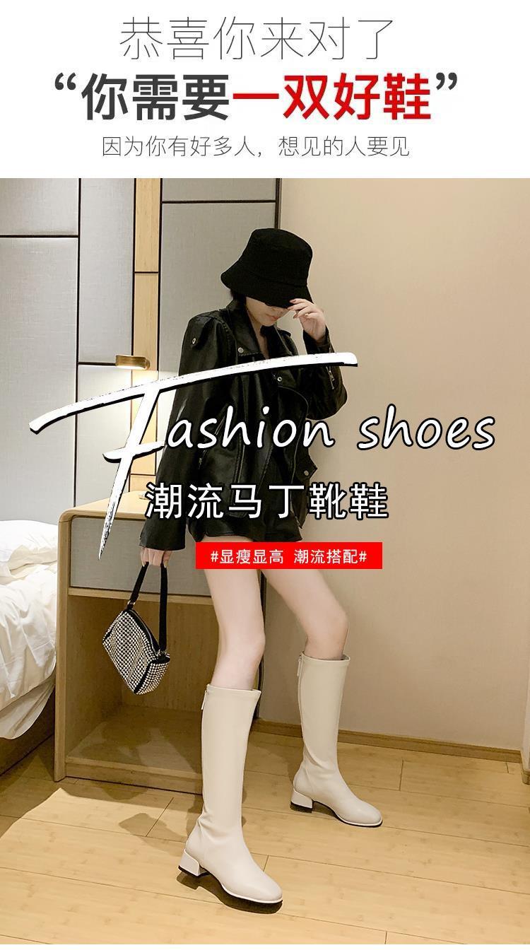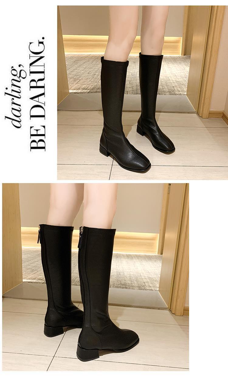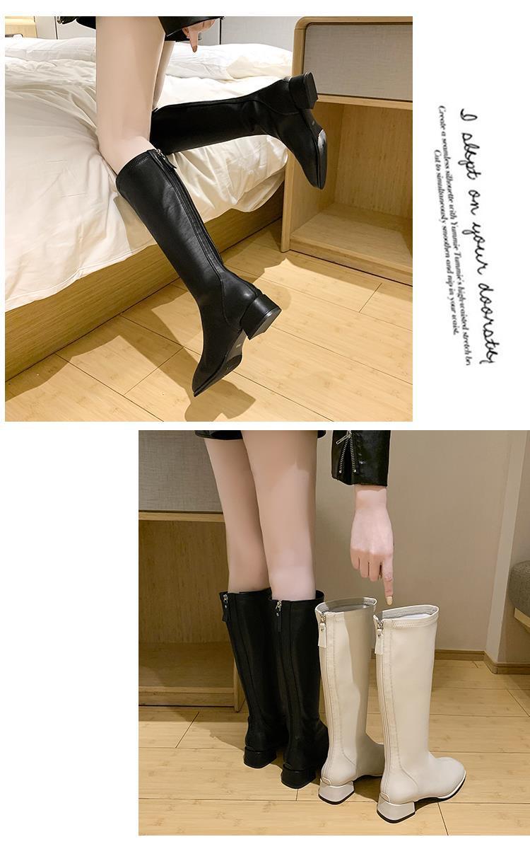 Botas Largas Pequeñas para Mujer, Botas de Caballero que no llegan más arriba de la rodilla, Botas de Cuero de Tacón Grueso 2021 Otoño e Invierno Nuevo Estilo Tubo Largo Más Han Fangsu