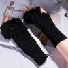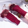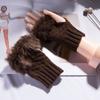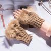 Guantes de lana de invierno para mujer estilo coreano, cálidos, de medio dedo, lindos, con dedos descubiertos, peludos en la boca, tejidos, largos, para estudiante, para escribir