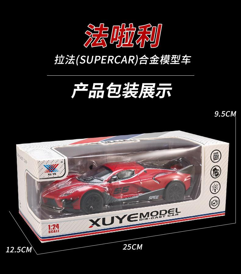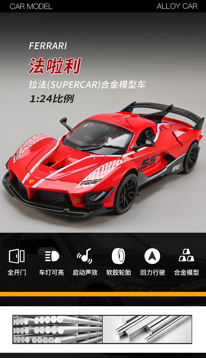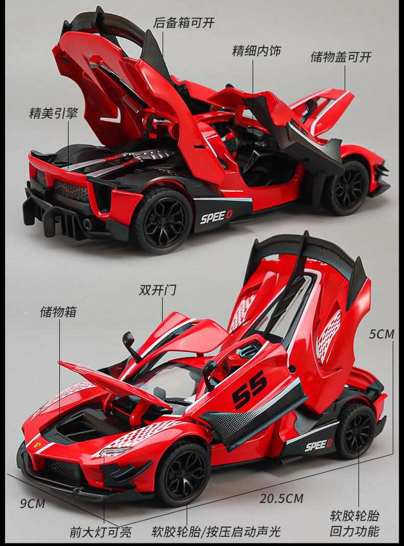 En caja 1:Modelo de coche de aleación FXXK 24 con sonido y luz de regreso al juguete para niño al por mayor una generación de cabello