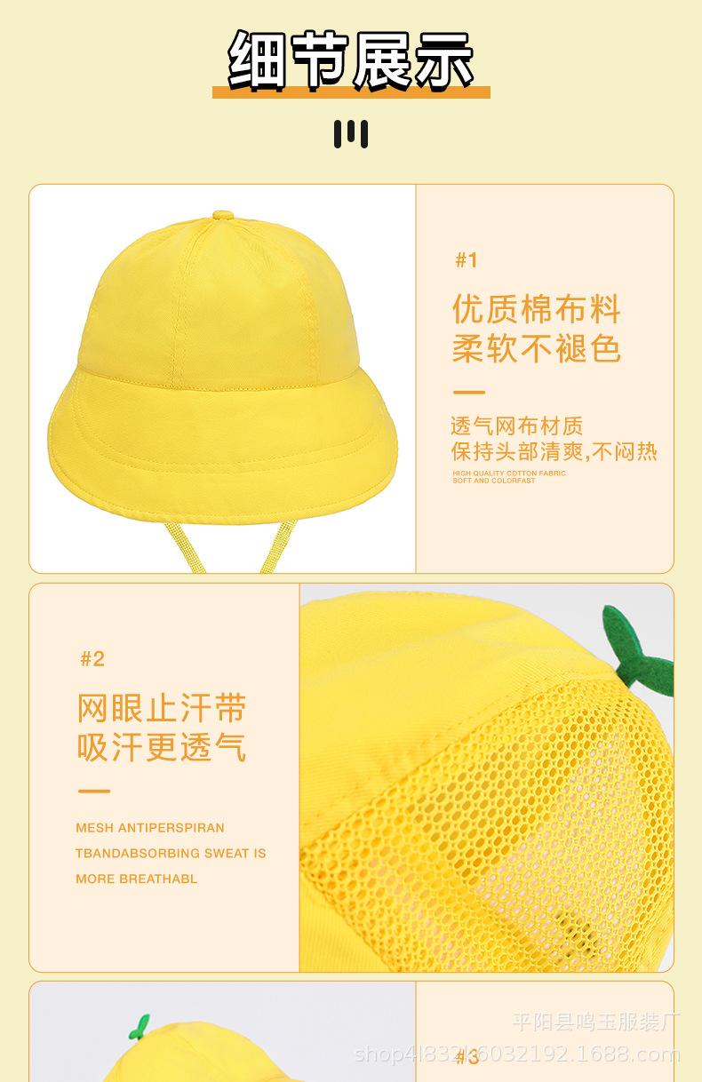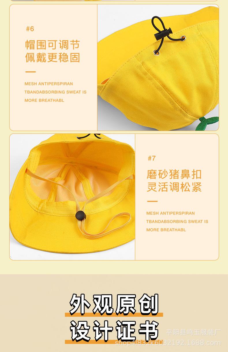 Sombrero amarillo de jardín de niños al por mayor con logo estampado algodón puro estudiantes de primaria sombrero de pescador para niños sombrero lindo estampado para protección solar