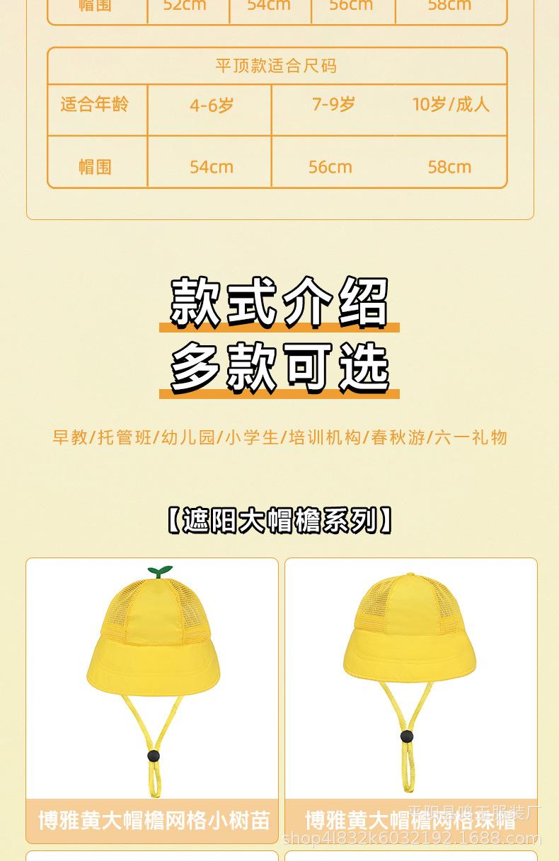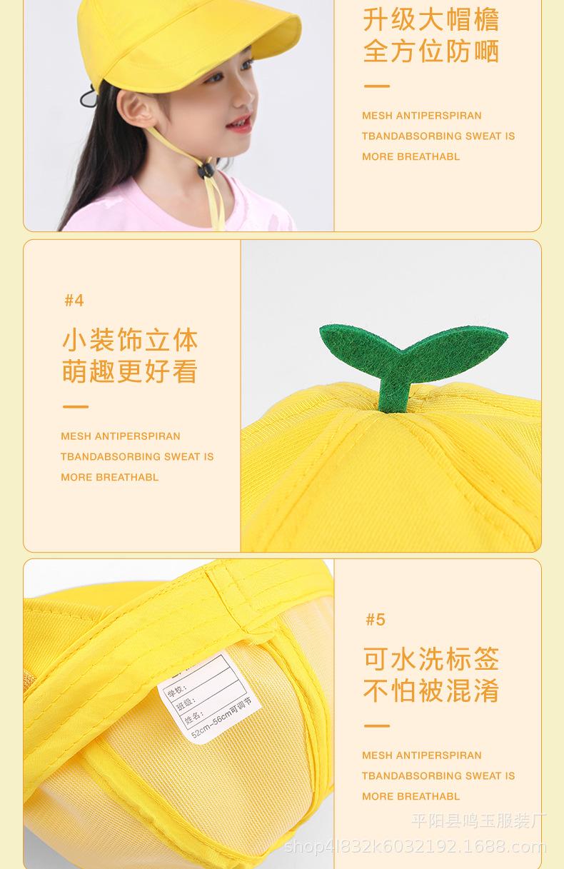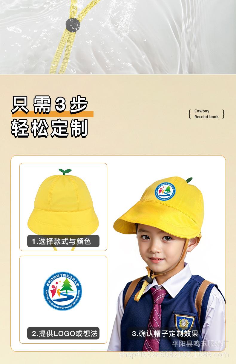 Sombrero amarillo pequeño de ala ancha sombrero de jardín de infantes con impresión de logotipo sombrero de protección solar para niños sombrero de pescador de pico de pato para estudiantes