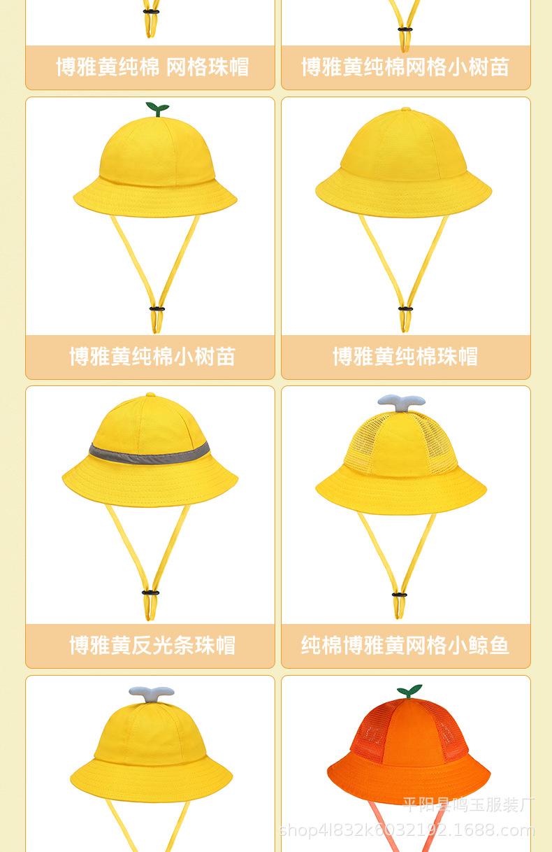 Sombrero amarillo pequeño sombrero de jardín de infantes impresión de logotipo personalizado niños sombrero a prueba de sol anti-DDoS sombrero de pescador con visera para estudiante personalizado