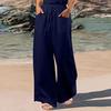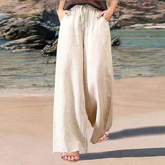 2023 Ropa de verano nueva europea y americana de Amazon para mujer color sólido casual suelta algodón y lino pantalones con banda elástica pantalones de pierna ancha