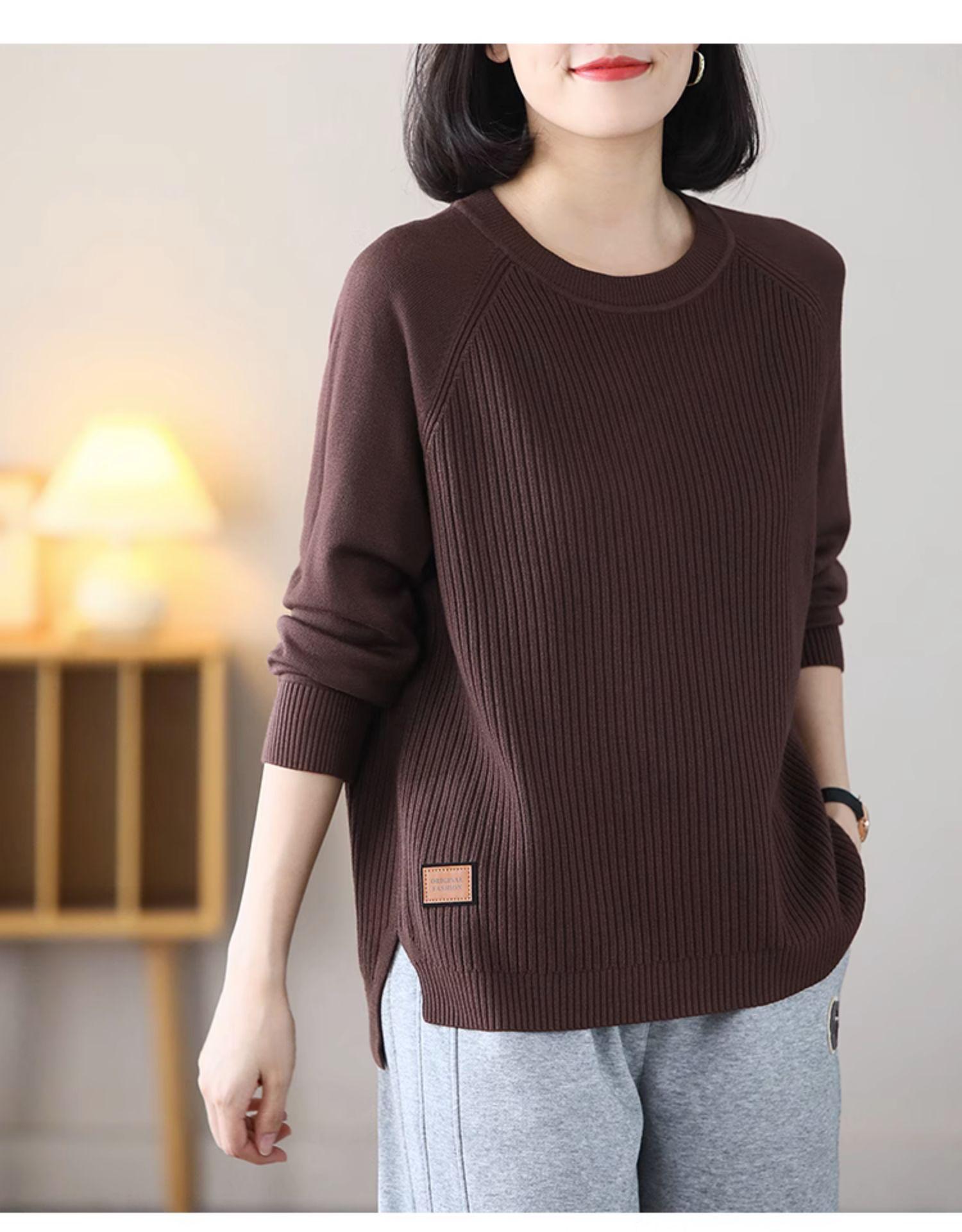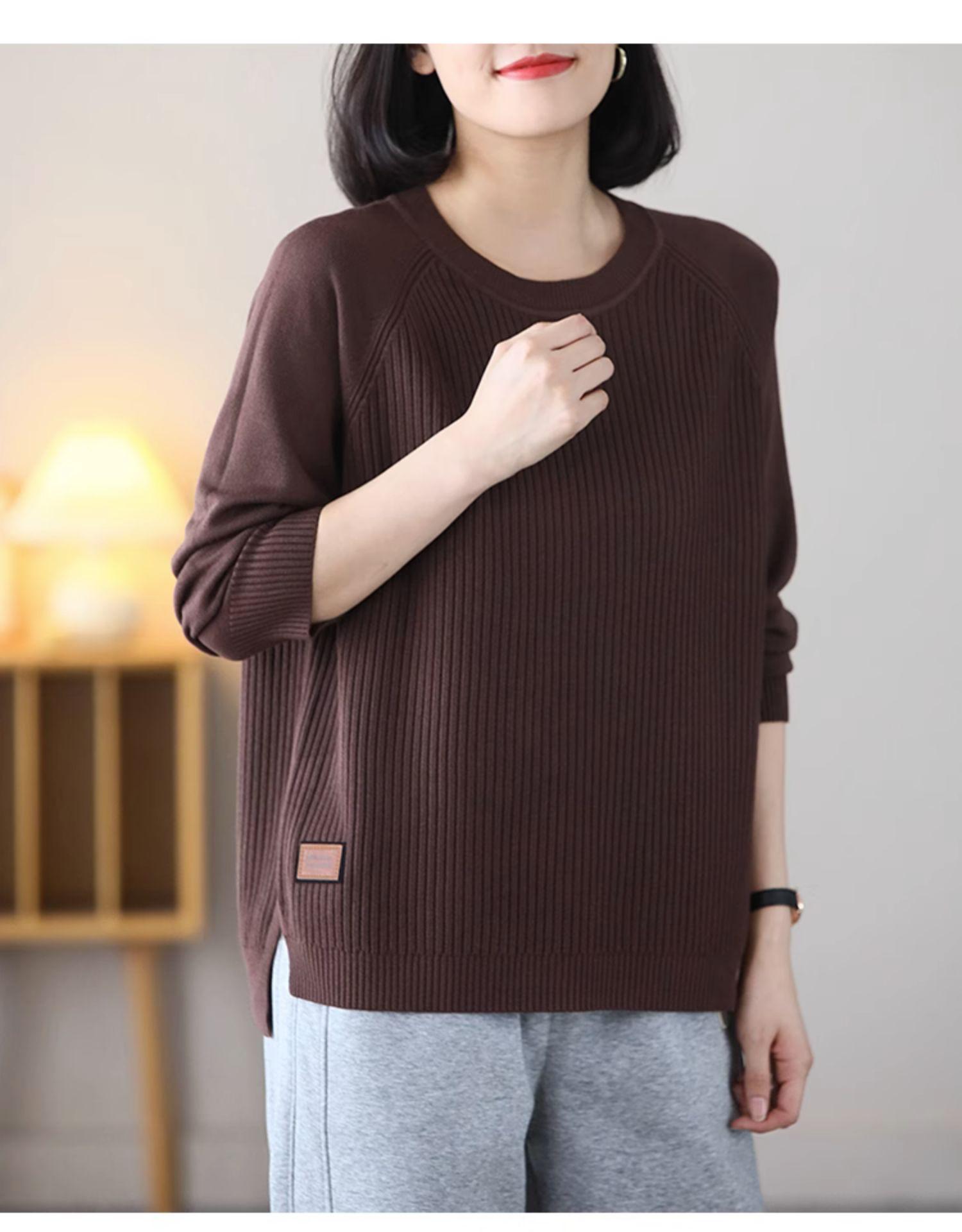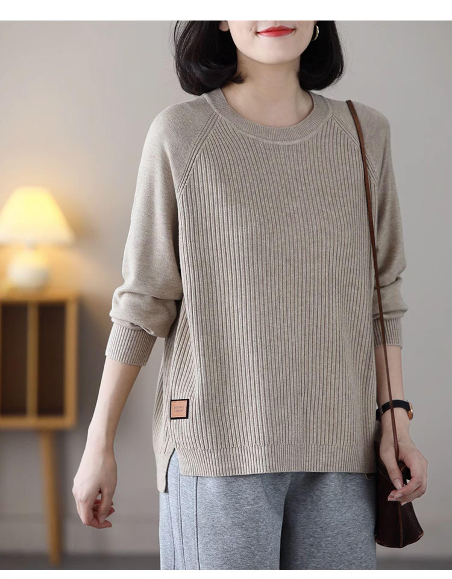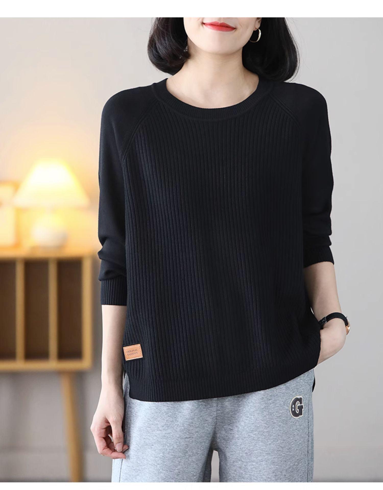 Suéter de Punto para Mujer 2025 Nuevo Otoño e Invierno Camiseta Básica de Mamá para Mujer Talla Grande Top Cubre Barriga Estilo Occidental Suéter Holgado