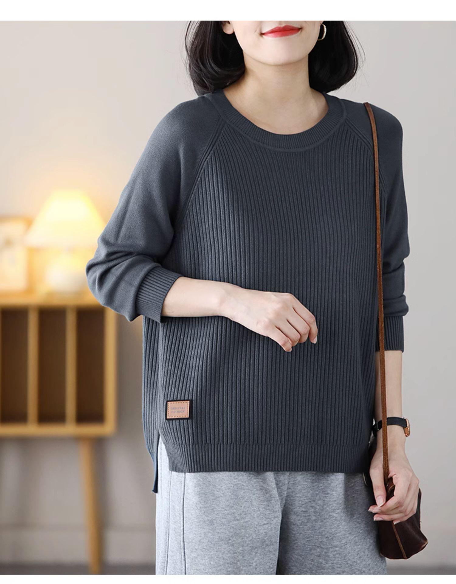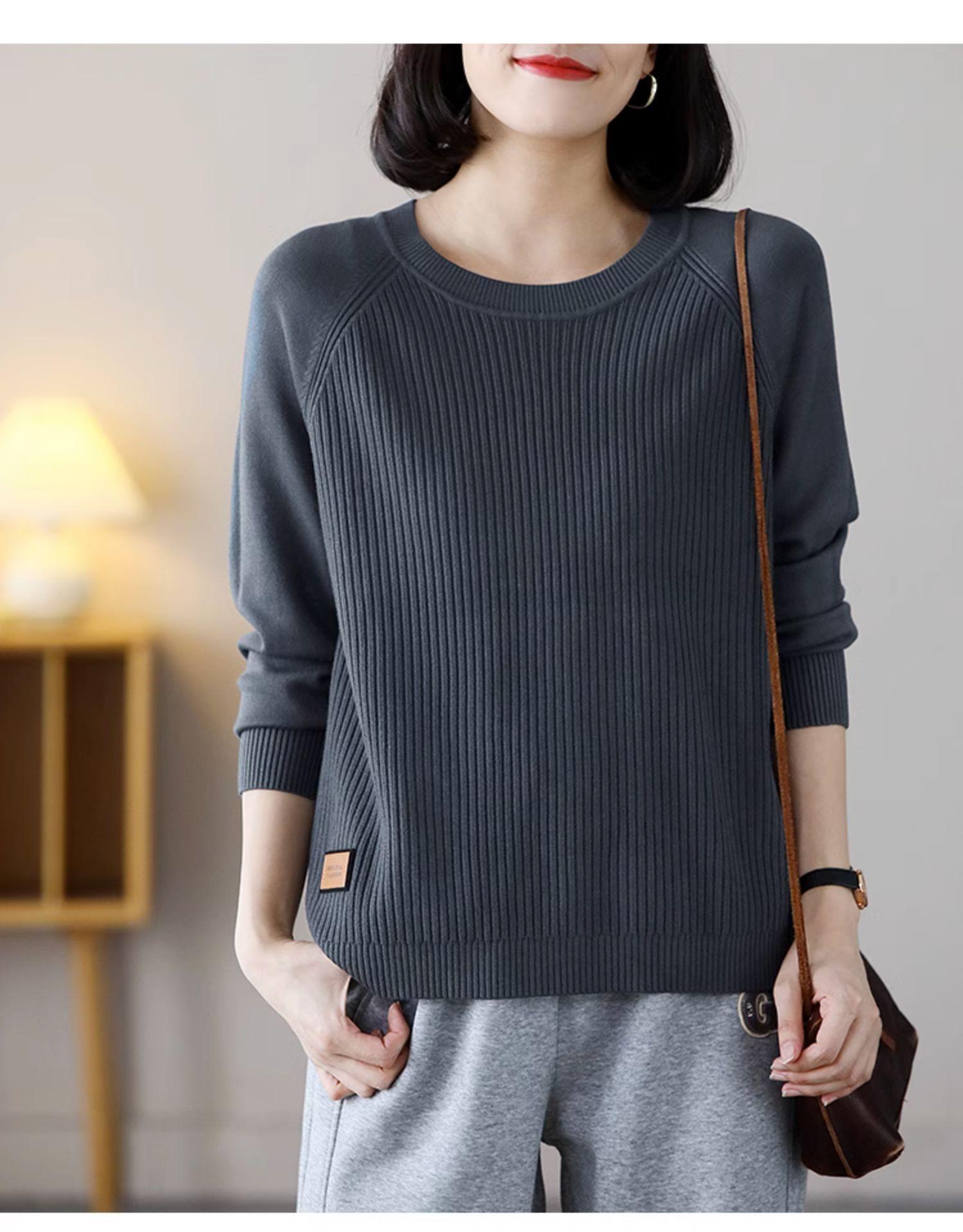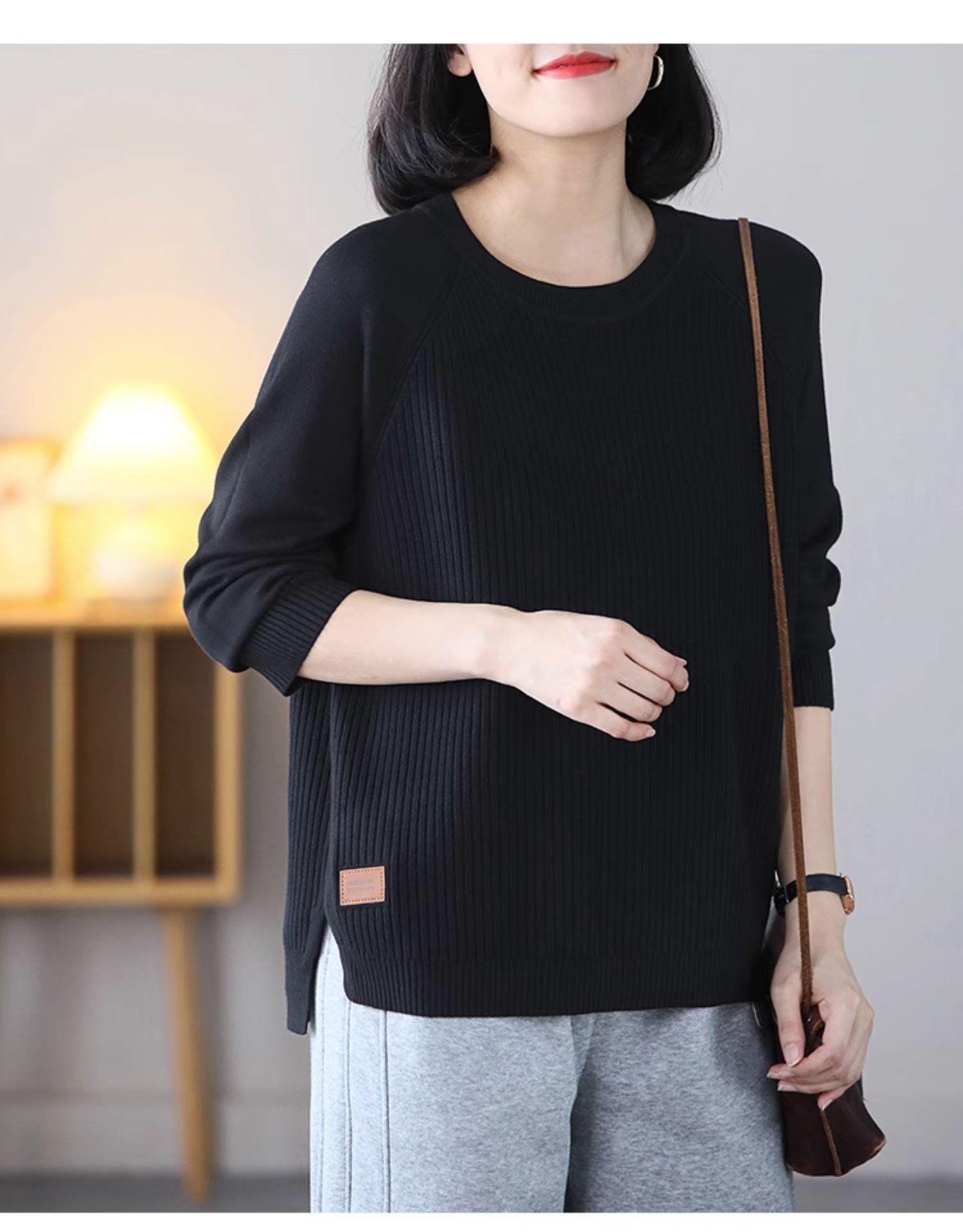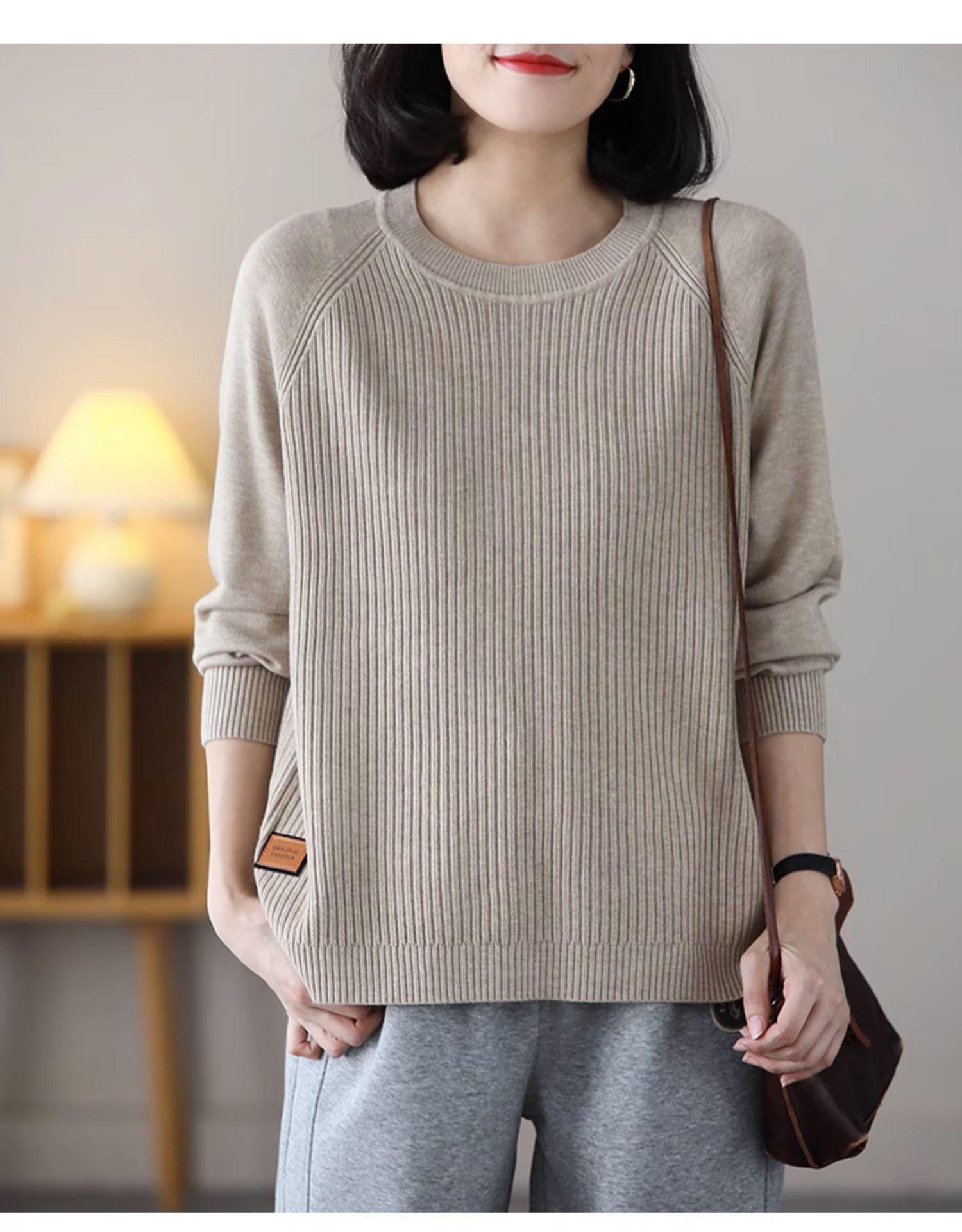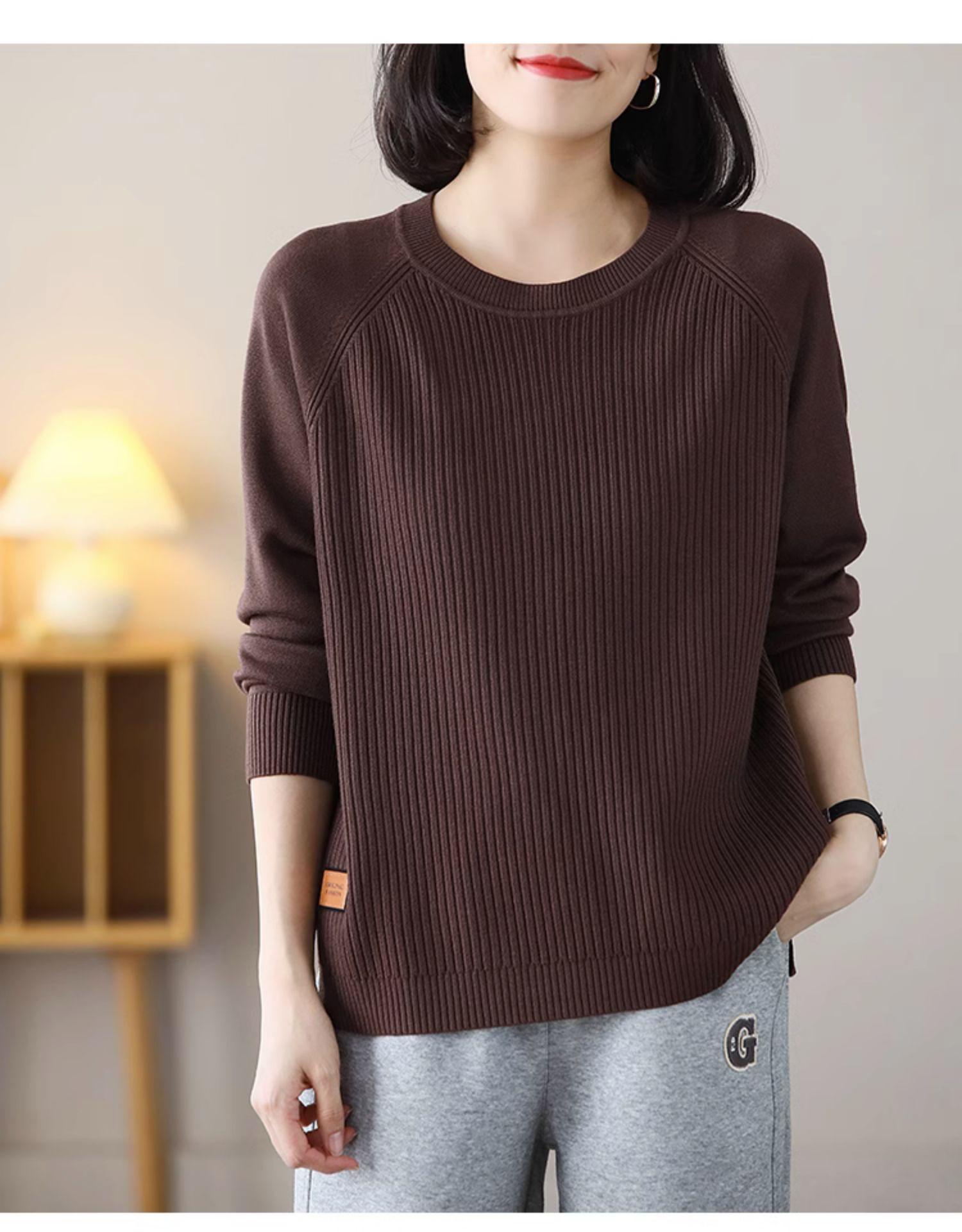 Suéter de Punto para Mujer 2025 Nuevo Otoño e Invierno Camiseta Básica de Mamá para Mujer Talla Grande Top Cubre Barriga Estilo Occidental Suéter Holgado