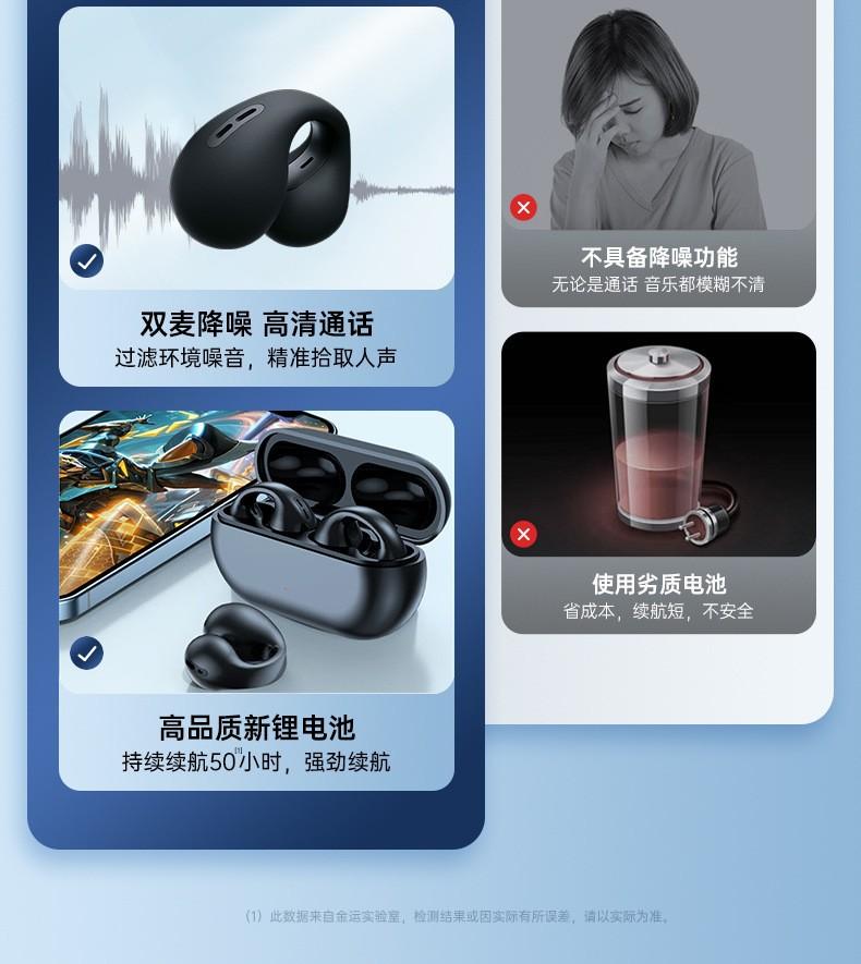 Explosiones Transfronterizas Audífonos Inalámbricos de Clip para la Oreja Air50 Audífono Bluetooth TWS Sin Oreja Clip Deportivo para la Oreja Inteligente Larga Duración