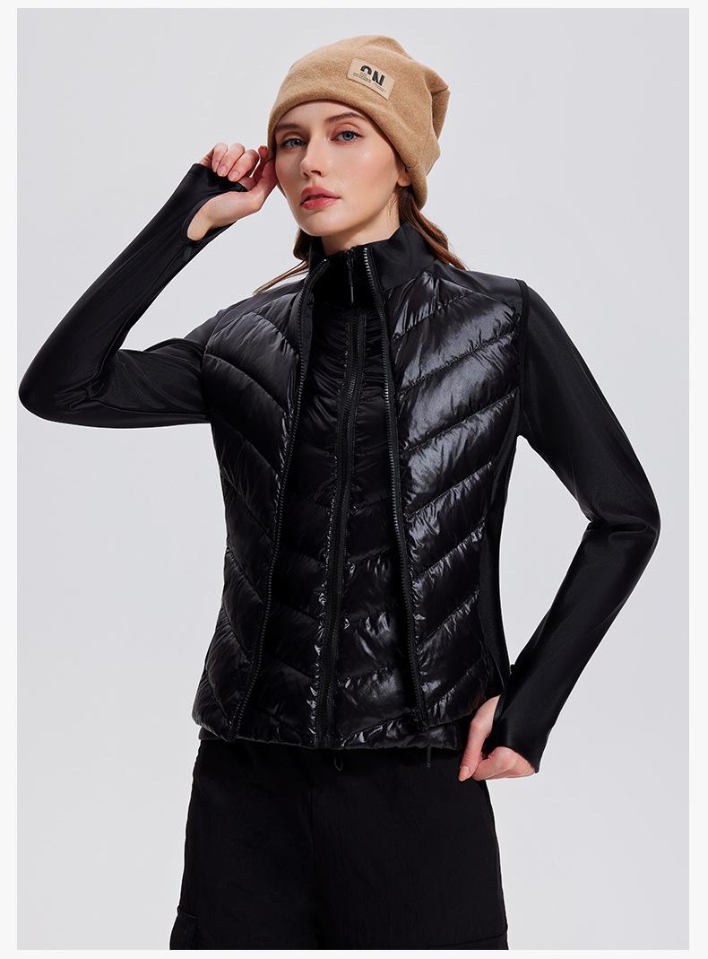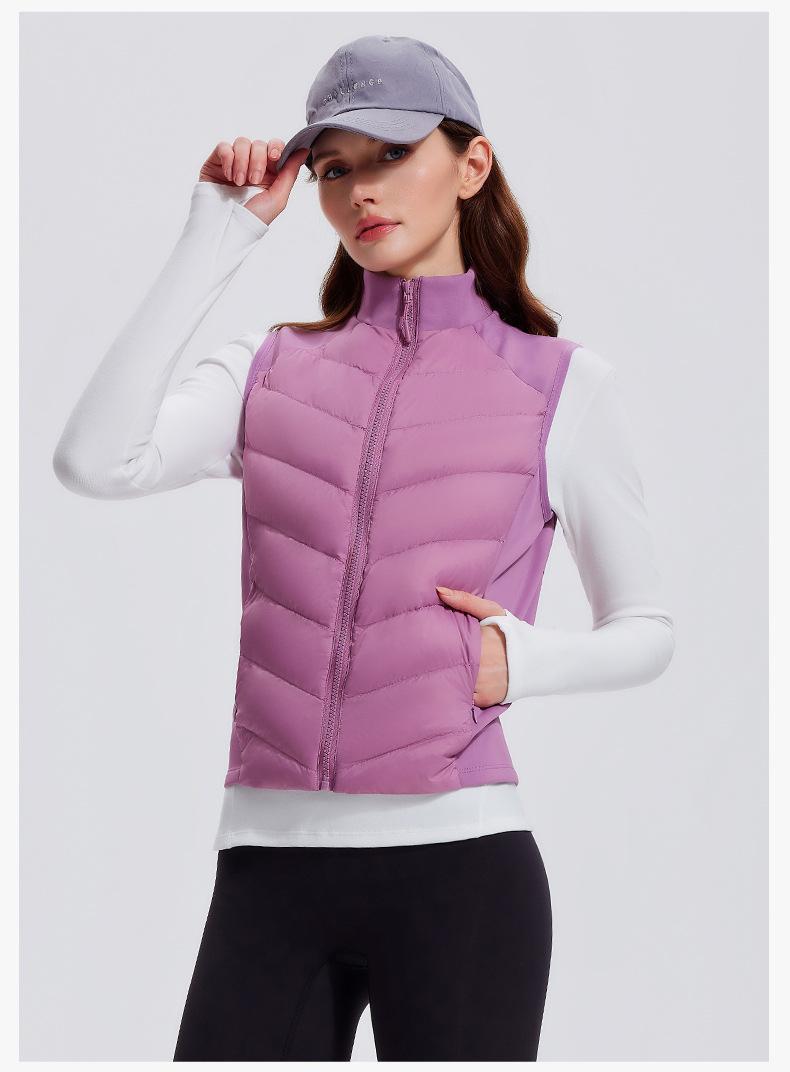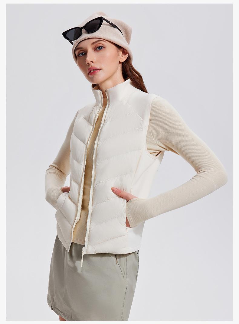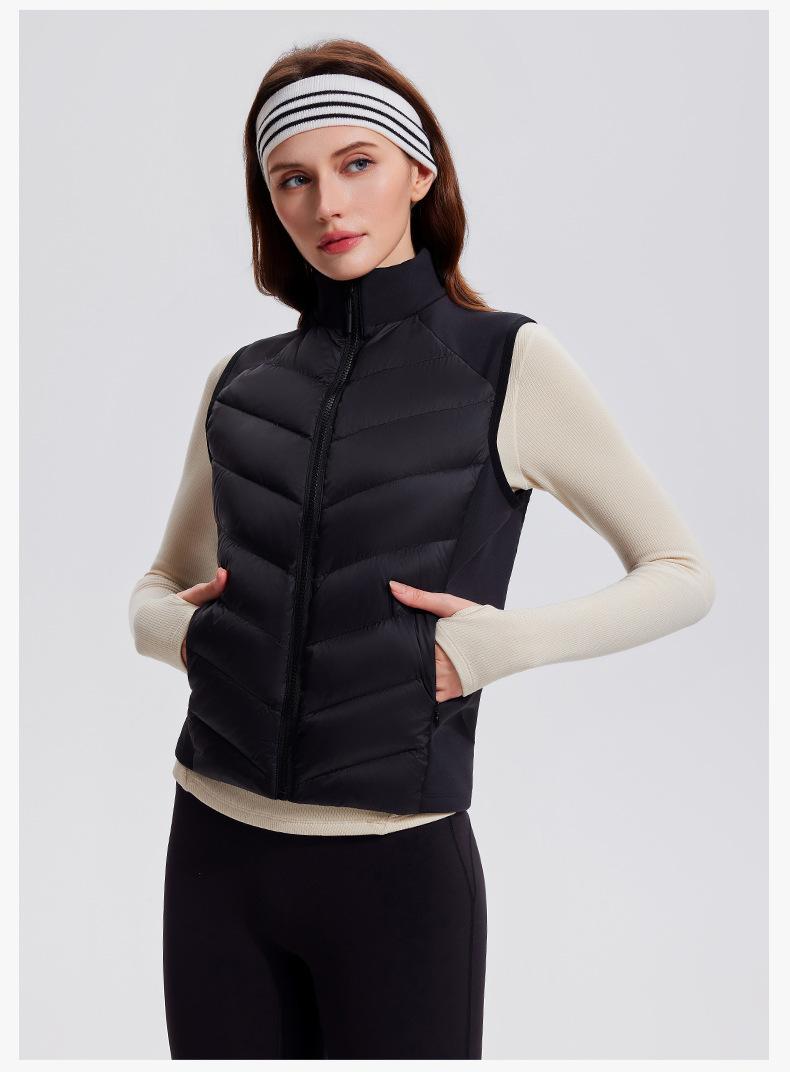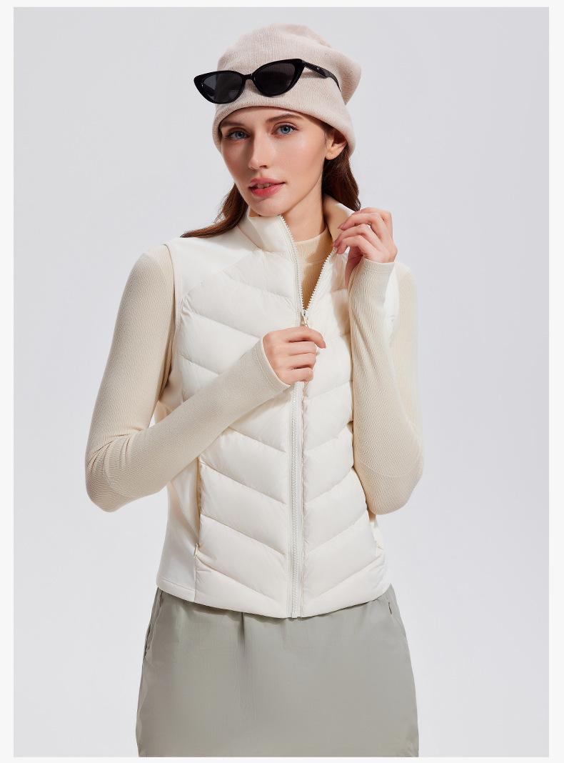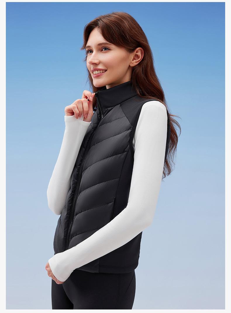 Chaqueta de plumón de tres capas para hombre y mujer, chaleco de cuello de otoño e invierno, cálida, ligera, para correr al aire libre, con cremallera, sin mangas