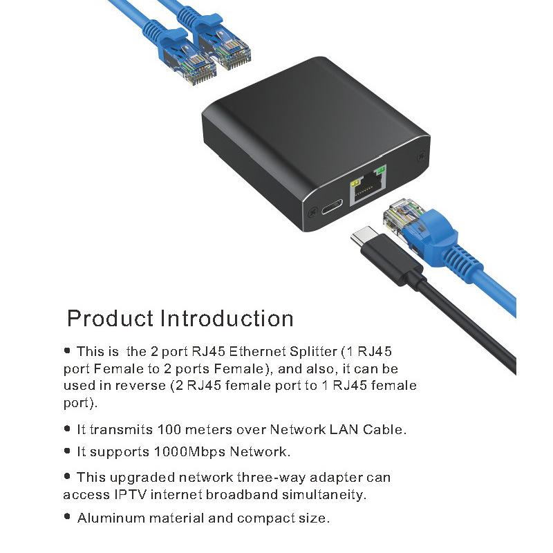 Distribuidor de red Gigabit un minuto dos conversión mutua divisor de red de banda ancha 1 minuto 2 adaptador RJ45