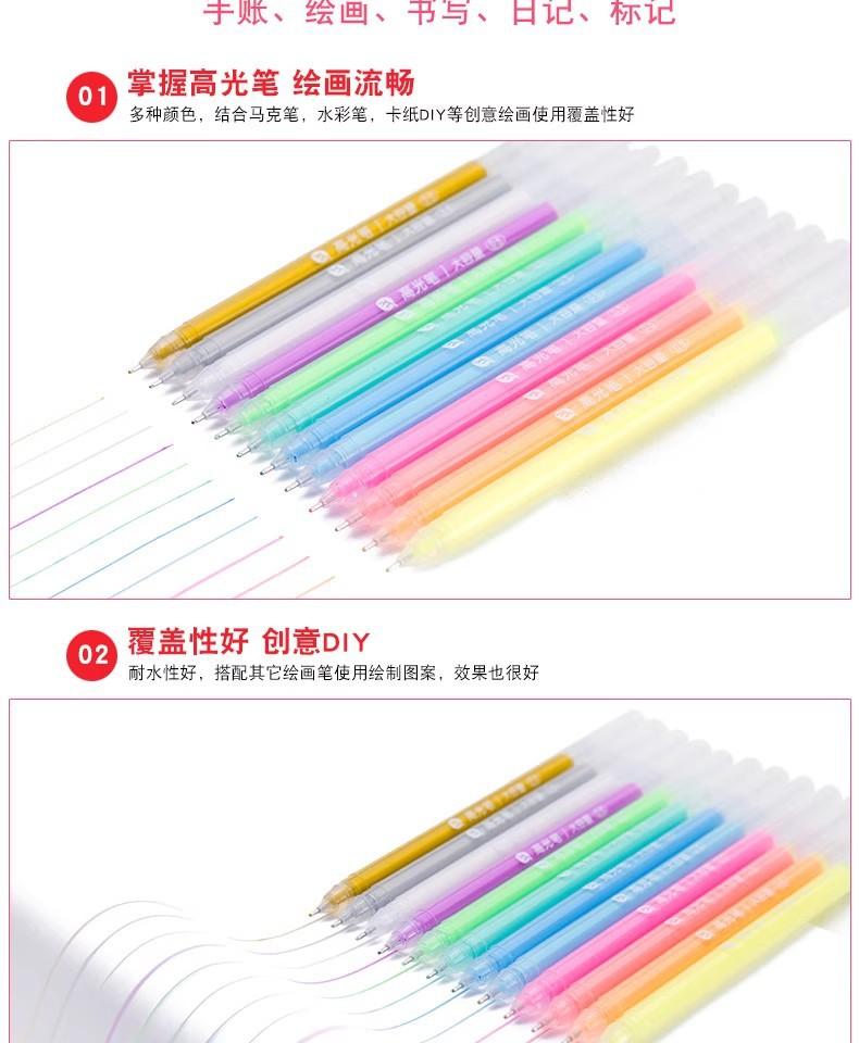 Dominando Pluma de Dibujo Resaltador Blanco plateado Marcador Pluma de Dibujo a Mano para Estudiantes Boceto Pluma para Escribir Pluma Gouhui