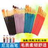 Venta al por Mayor Transfronteriza Nylon Agua Tiza Acuarela Pintura al Óleo Set de Pinceles 10 Piezas Varilla Roja Varilla Azul Pintura Acrílica Pincel Fila