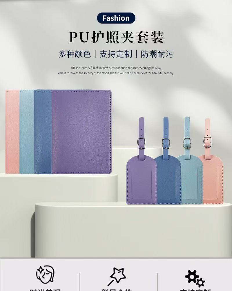 Moda Anti-Suciedad Grueso Cuero Pu Portátil Soporte para Pasaporte Cubierta para Pasaporte con Tarjeta de Papel Juego de Etiqueta de Equipaje