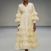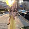 Vestido Halter de Cuello en V Francés a Cuadros Amarillos para Mujer Verano Nuevo Diseño Nicho Estilo Vacacional Sin Mangas Falda Larga