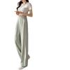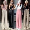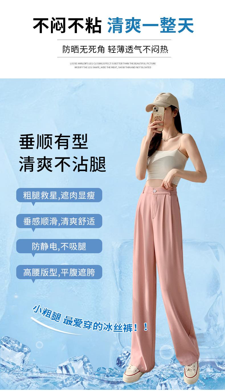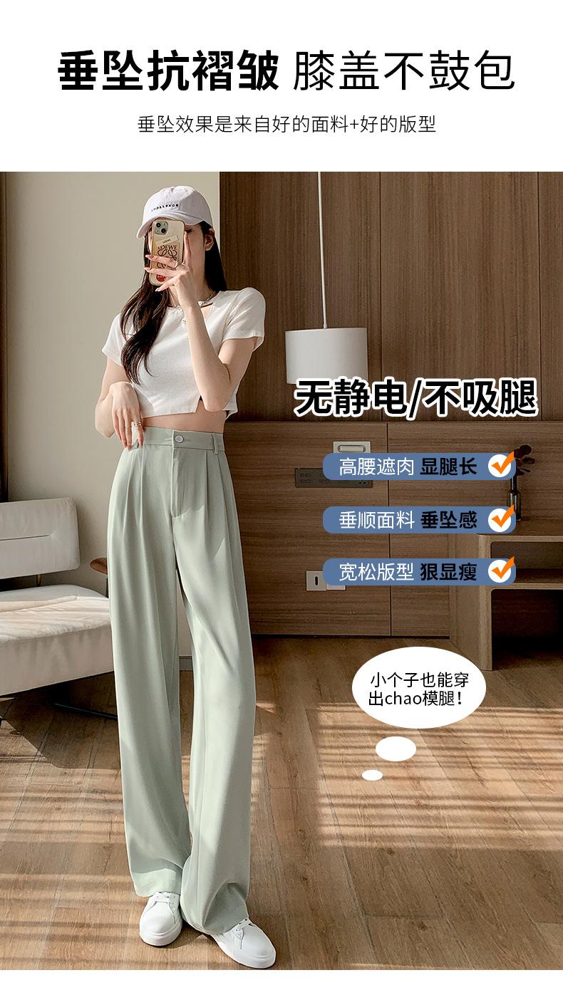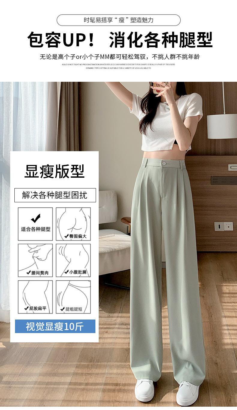 Pantalones de Pierna Ancha de Seda de Hielo para Mujer Verano 2025 Nuevo Pantalón de Traje Drapeado de Cintura Alta Recto Casual Hasta el Piso Nuevo Estilo