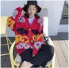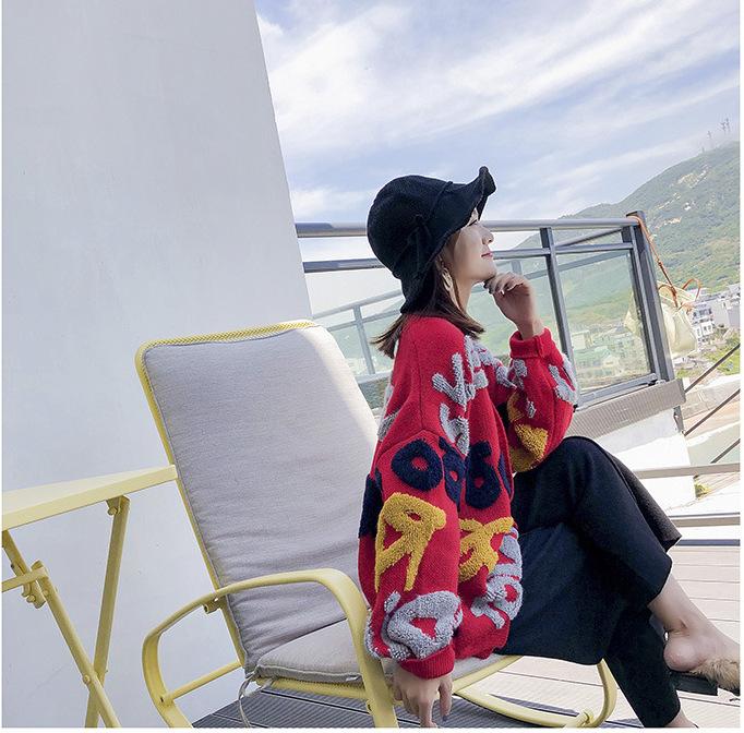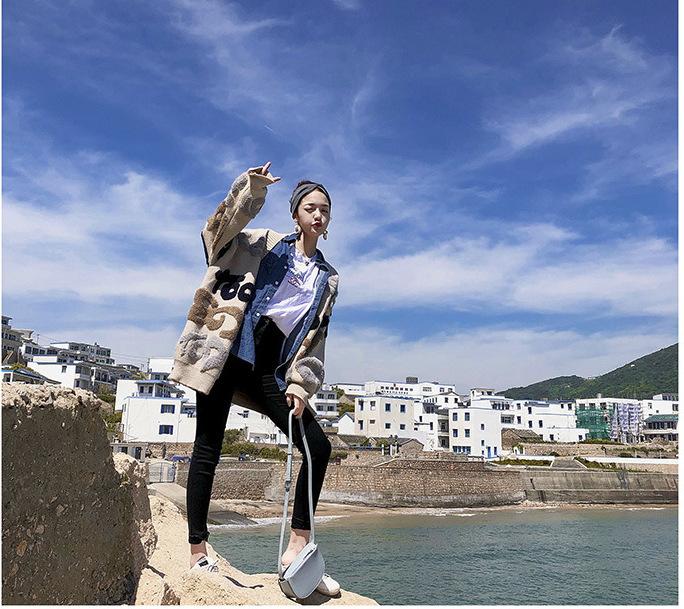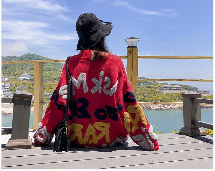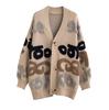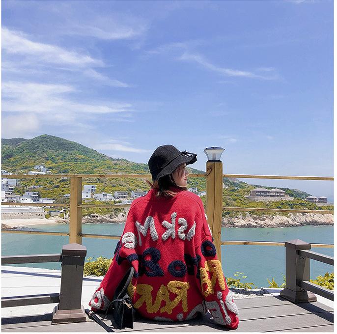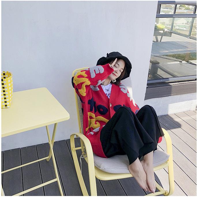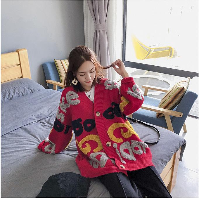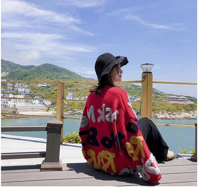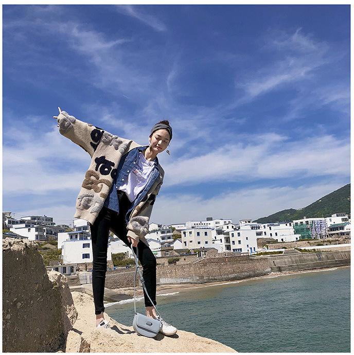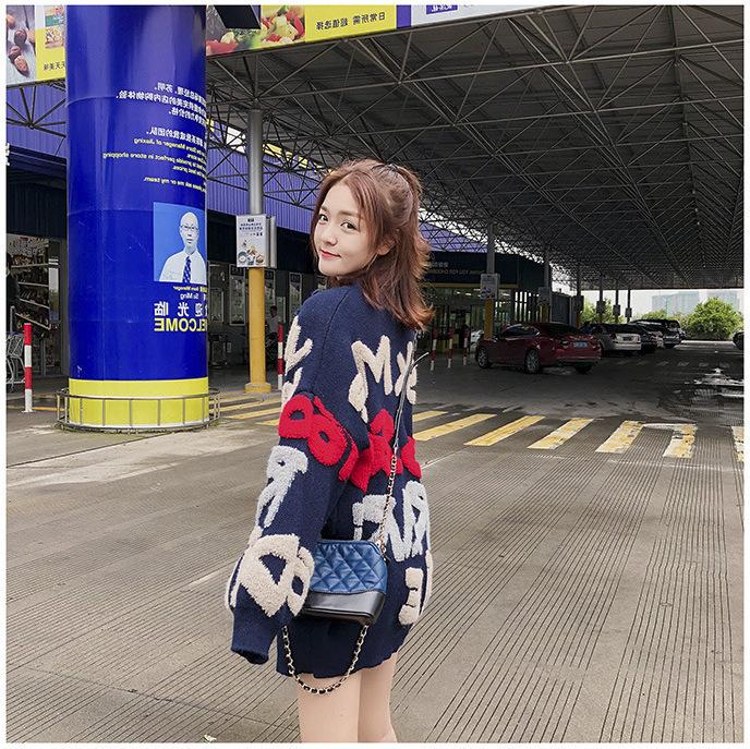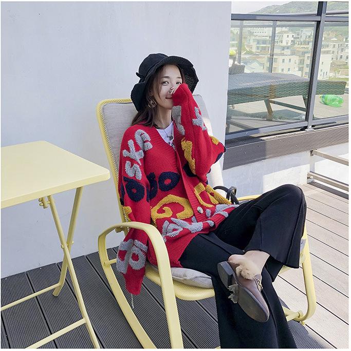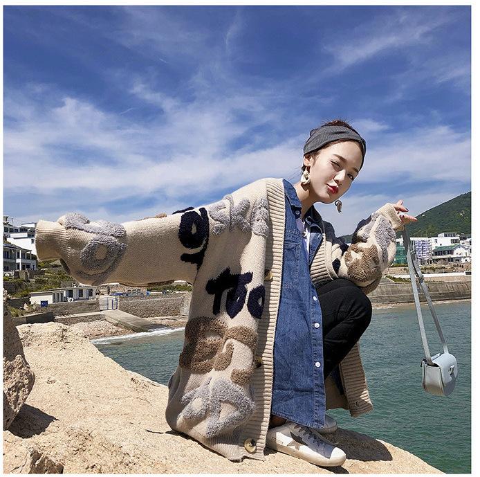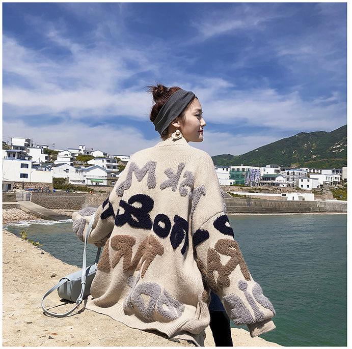 Primavera y otoño nuevo suéter holgado estilo perezoso chaqueta para mujer mediano y largo versión coreana de la letra cárdigan de punto grueso tendencia
