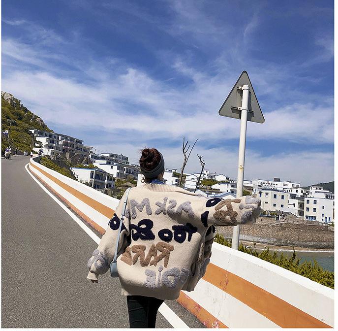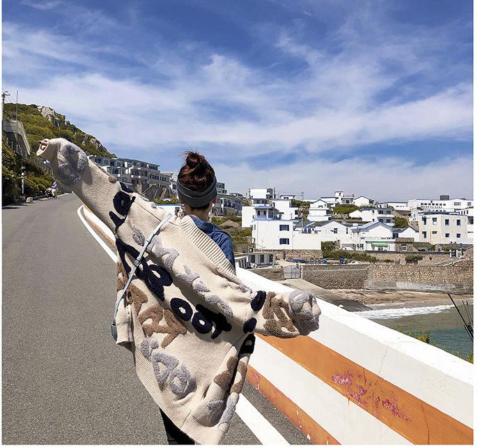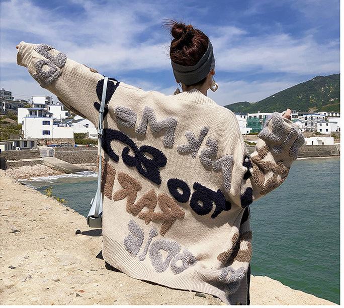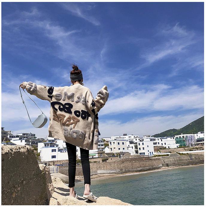 Suéter holgado de estilo perezoso para mujer, cárdigan de punto grueso con letras de estilo coreano de longitud media, nuevo, de primavera y otoño