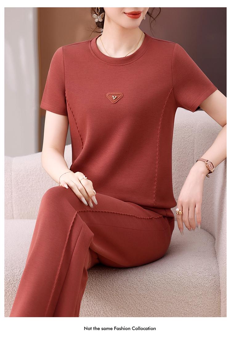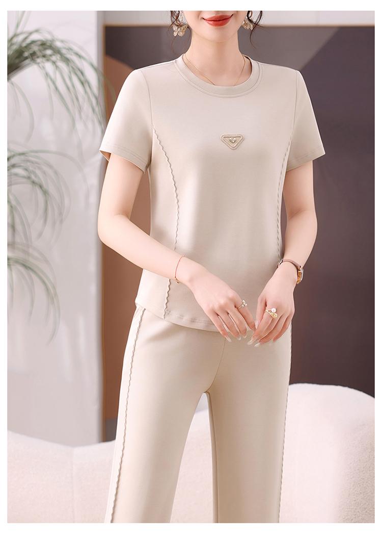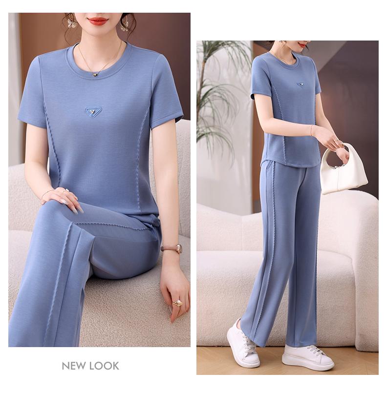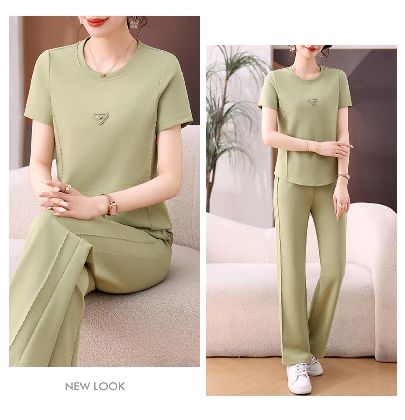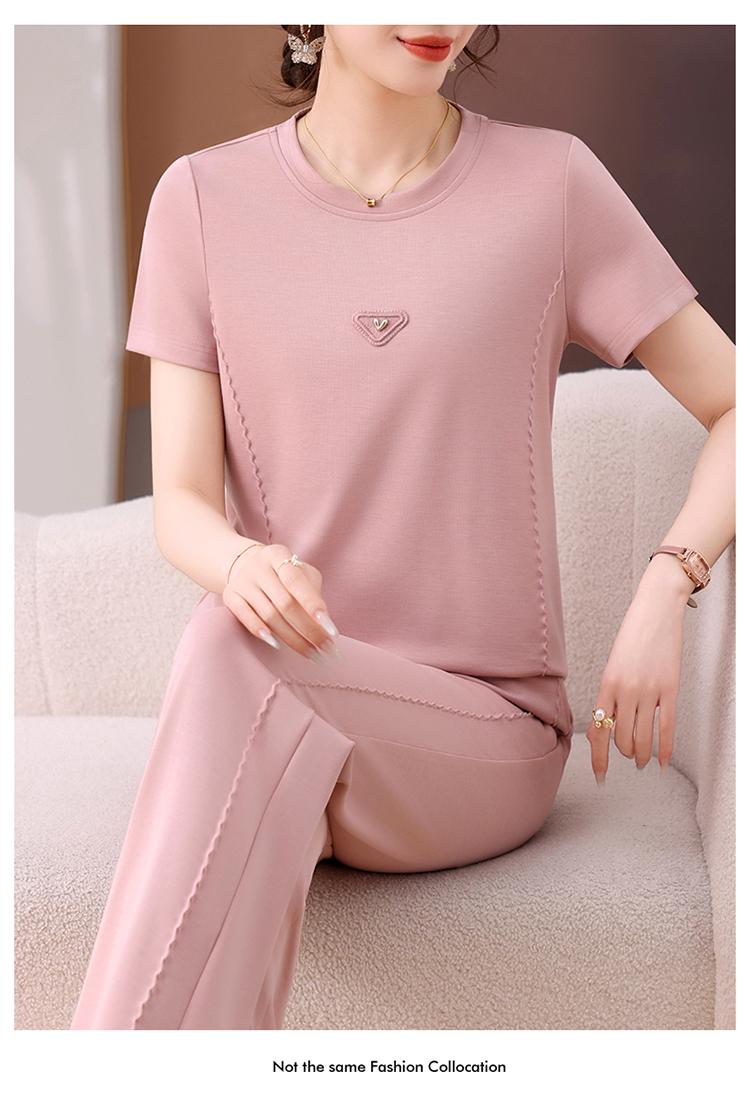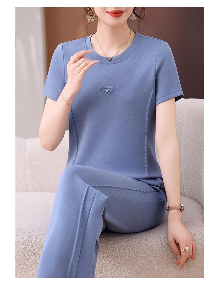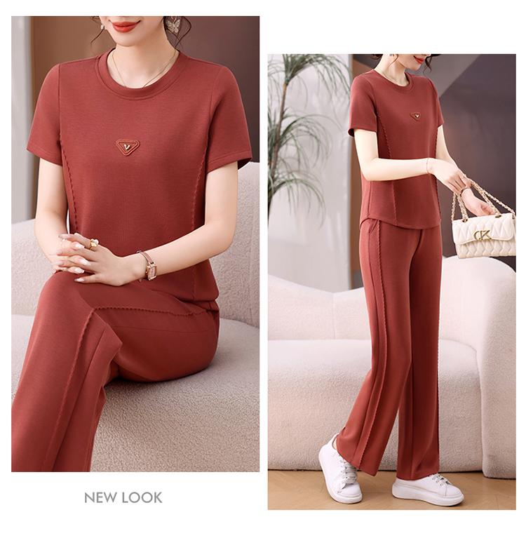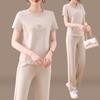 Traje Deportivo de Verano para Mujer 2025 Nuevo Estilo de Moda Marca de Alta Gama Reductor de Edad Casual de Manga Corta de Dos Piezas Conjunto Delgado
