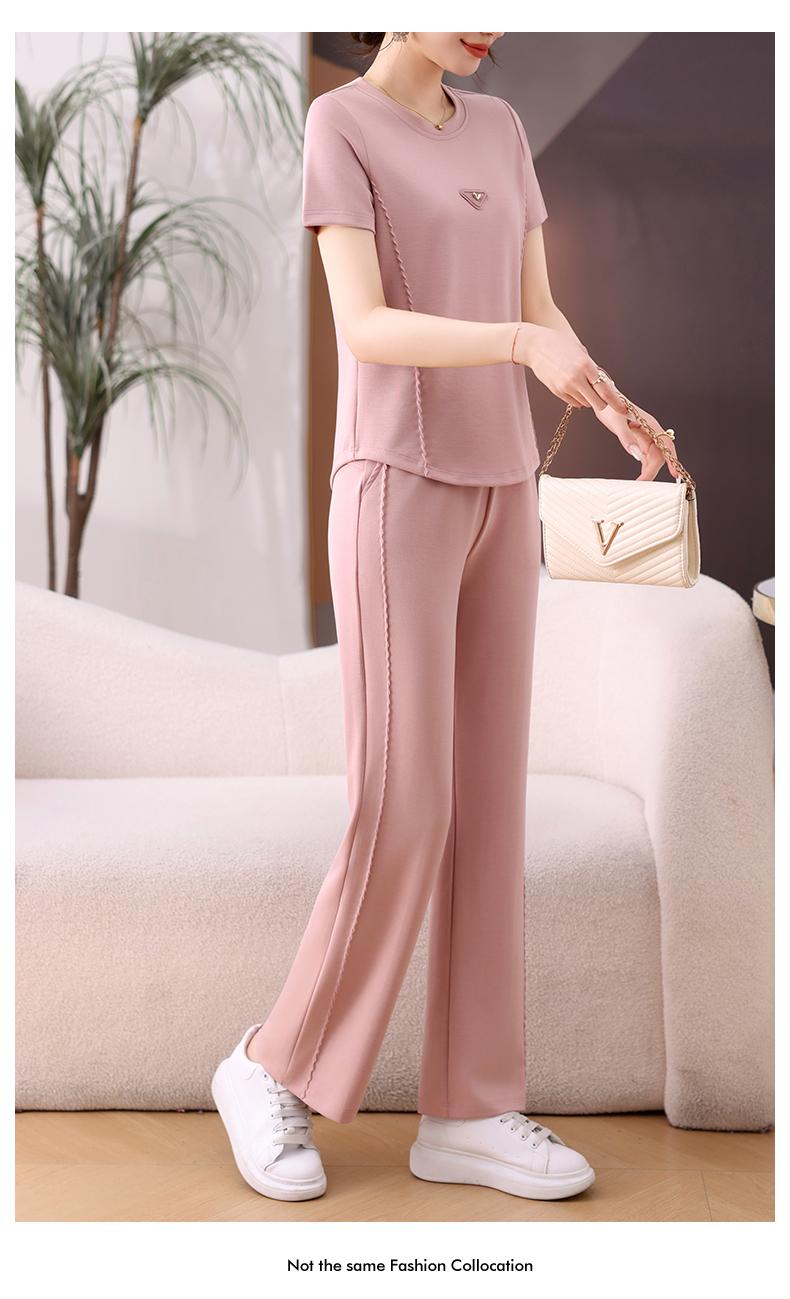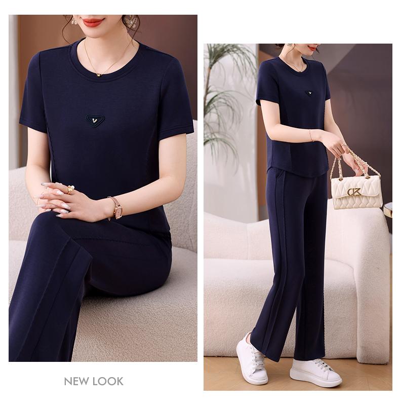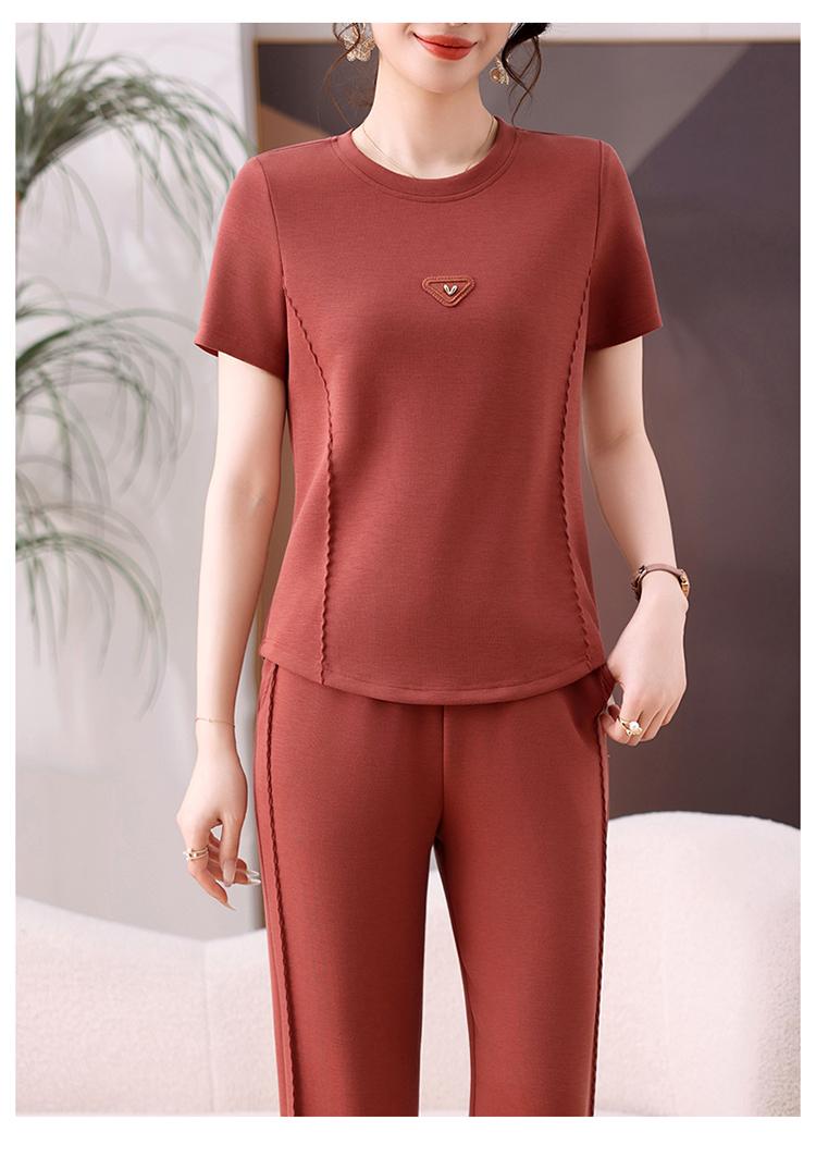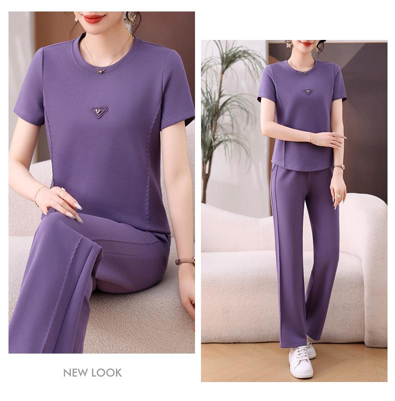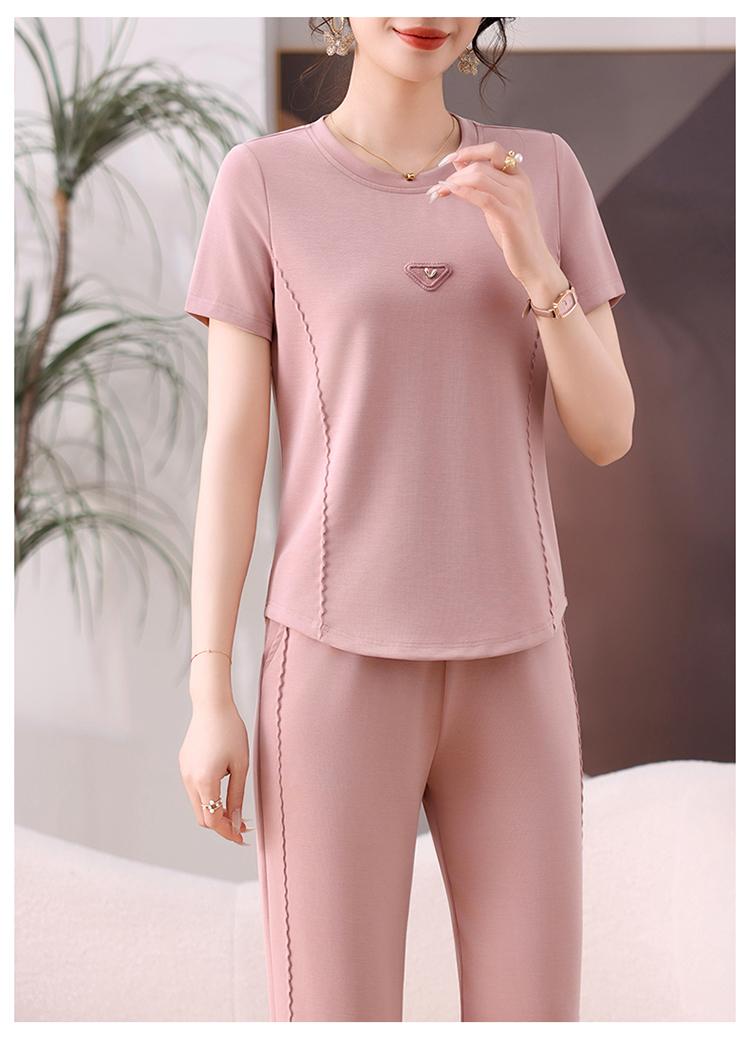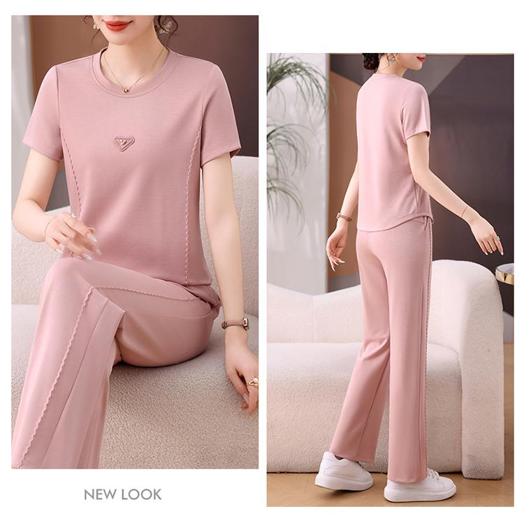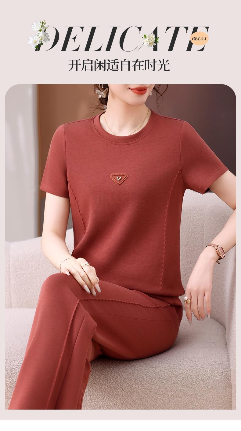 Traje Deportivo de Verano para Mujer 2025 Nuevo Estilo de Moda Marca de Alta Gama Reductor de Edad Casual de Manga Corta de Dos Piezas Conjunto Delgado
