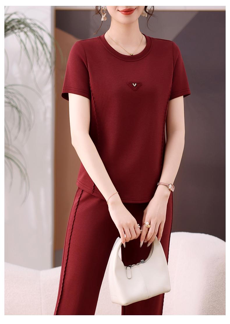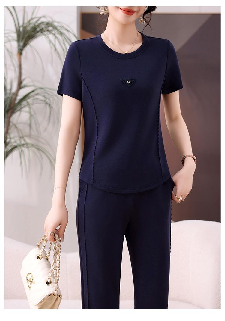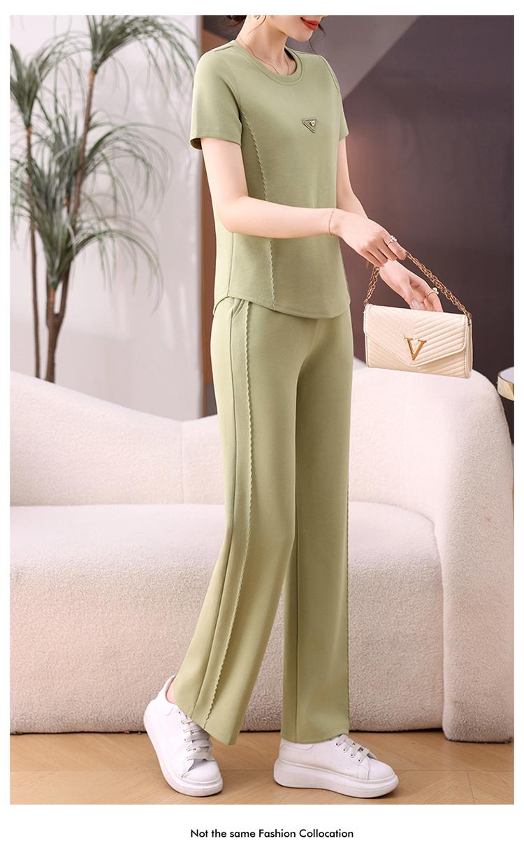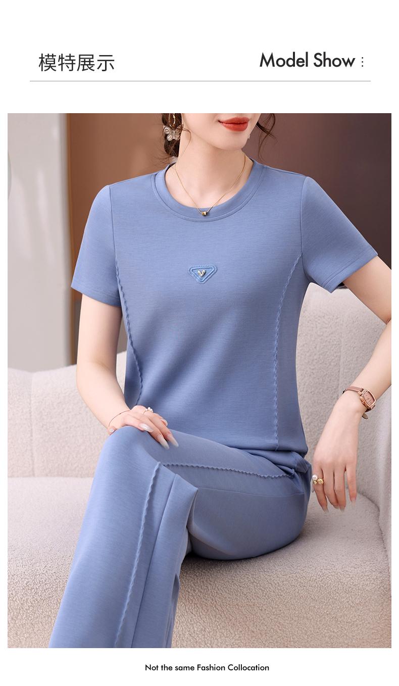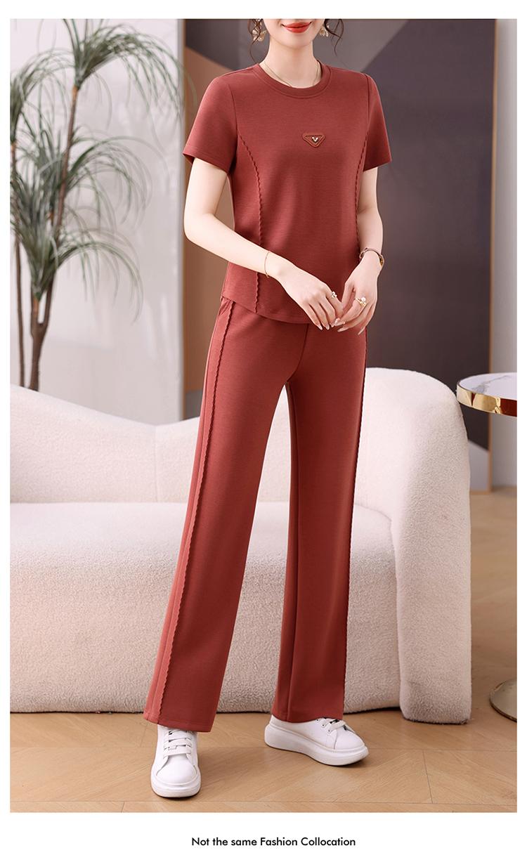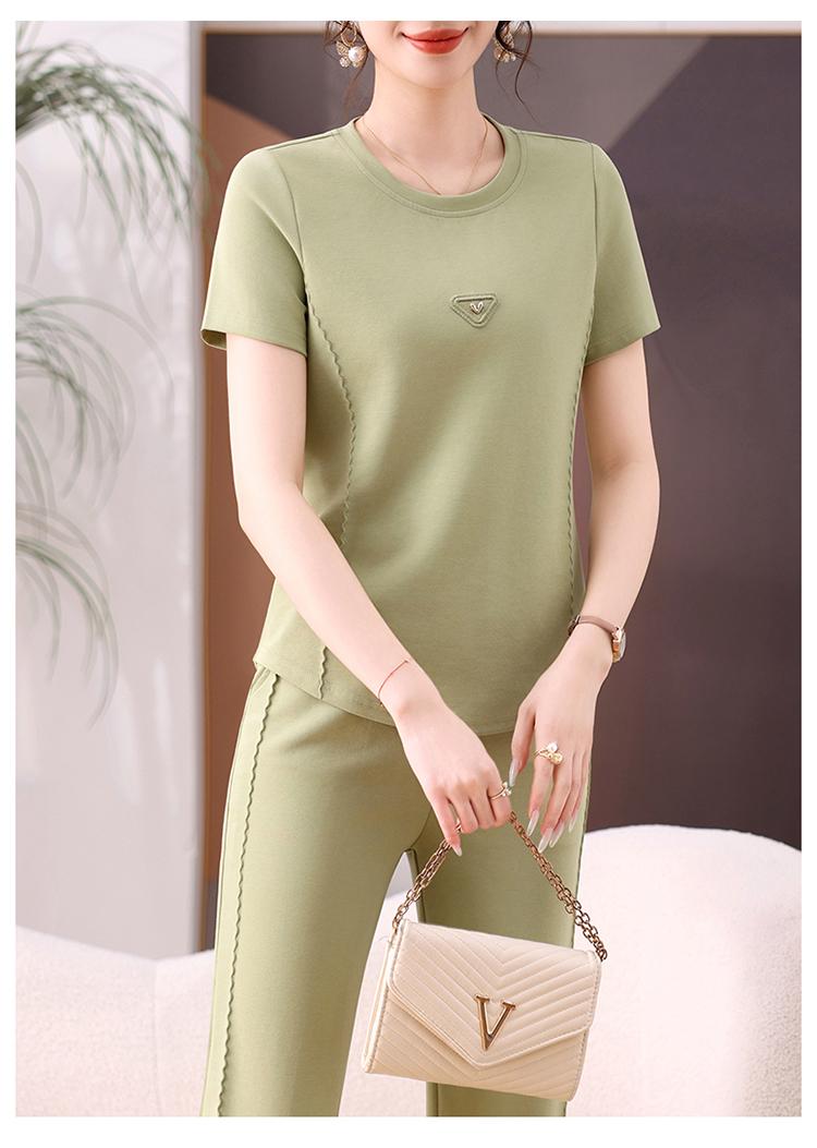 Traje Deportivo de Verano para Mujer 2025 Nuevo Estilo de Moda Marca de Alta Gama Reductor de Edad Casual de Manga Corta de Dos Piezas Conjunto Delgado