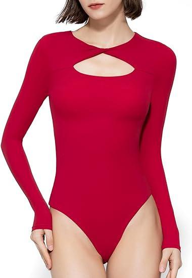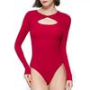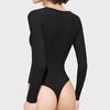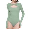 Body de corsé moldeador sexy con nudo retorcido, hueco en la clavícula, control de abdomen, levanta cadera, ajustado, de manga larga, para mujer, color sólido