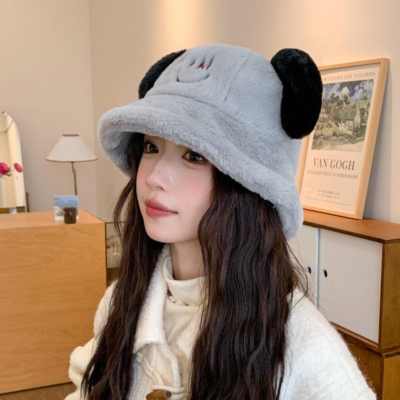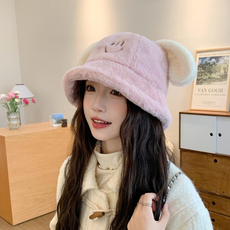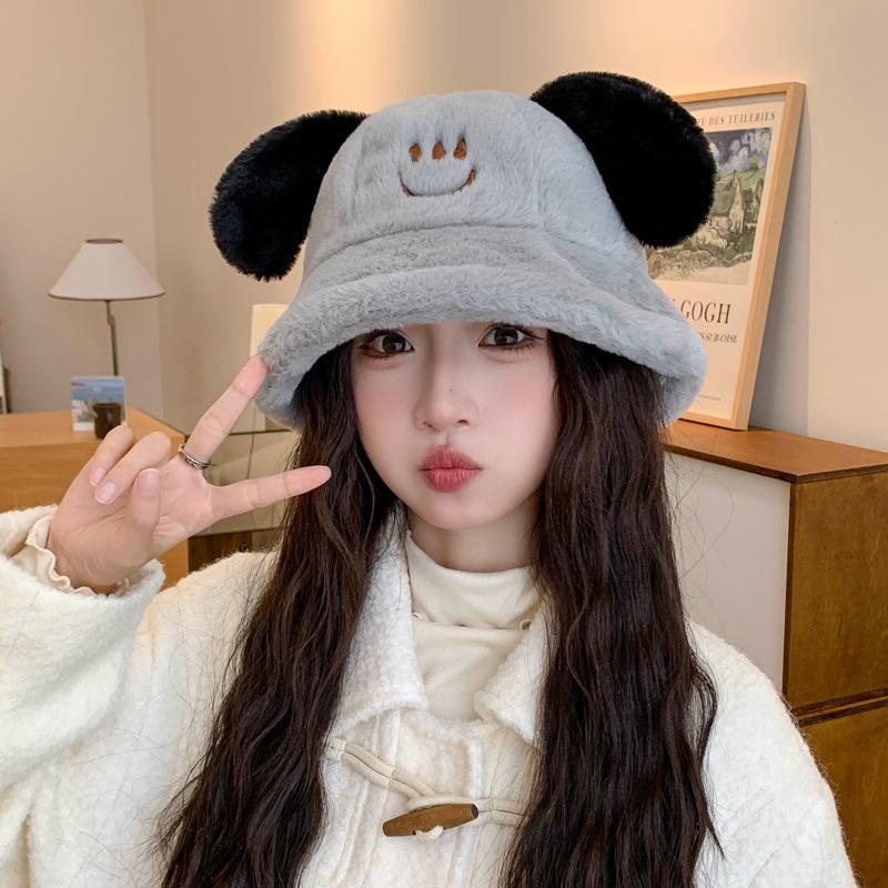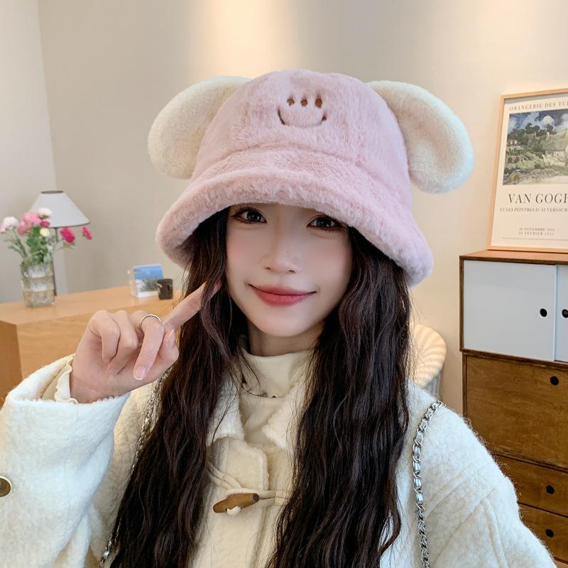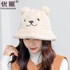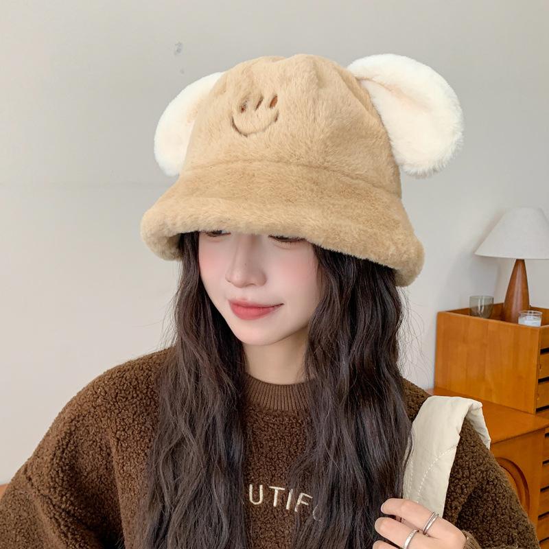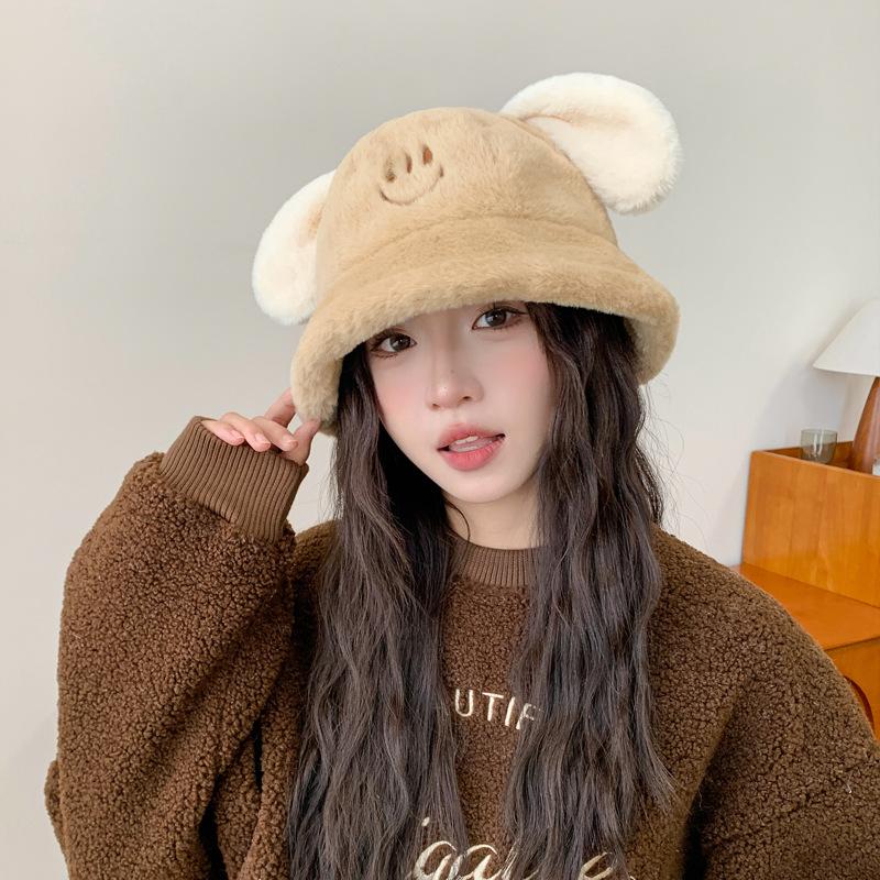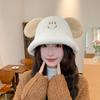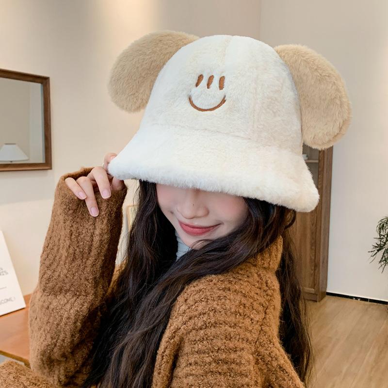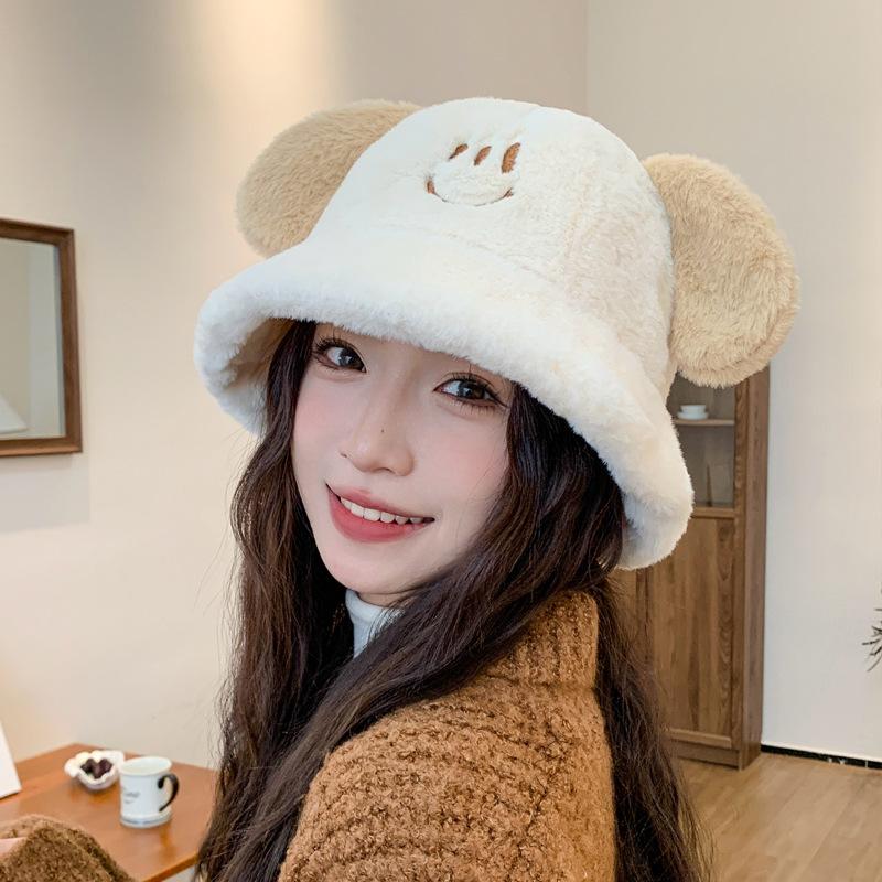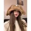 Nuevo sombrero de pescador con orejas de cachorro de otoño e invierno, sombrero de cubo coreano de felpa, lindo rostro, pequeño, grueso, cálido, tipo cubeta